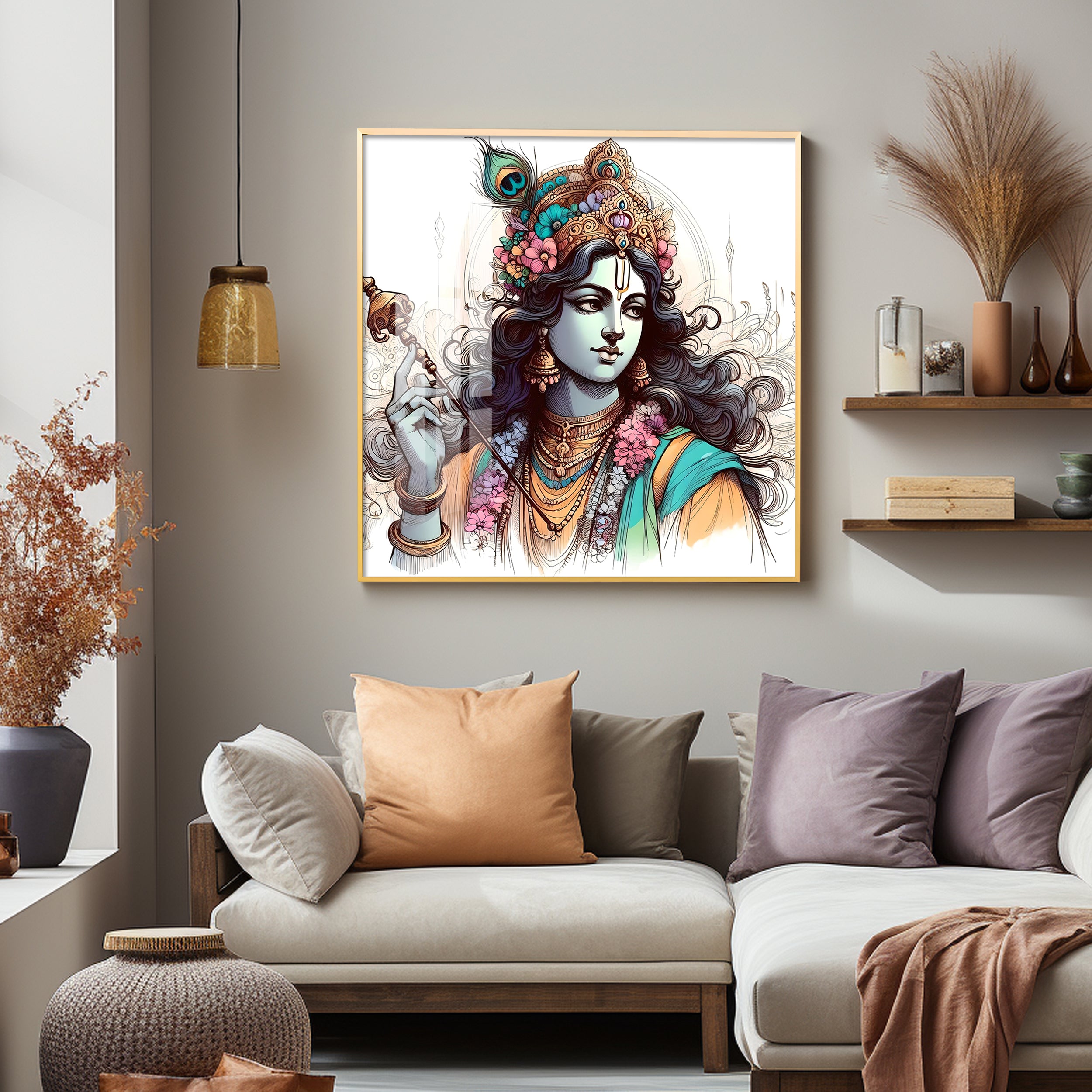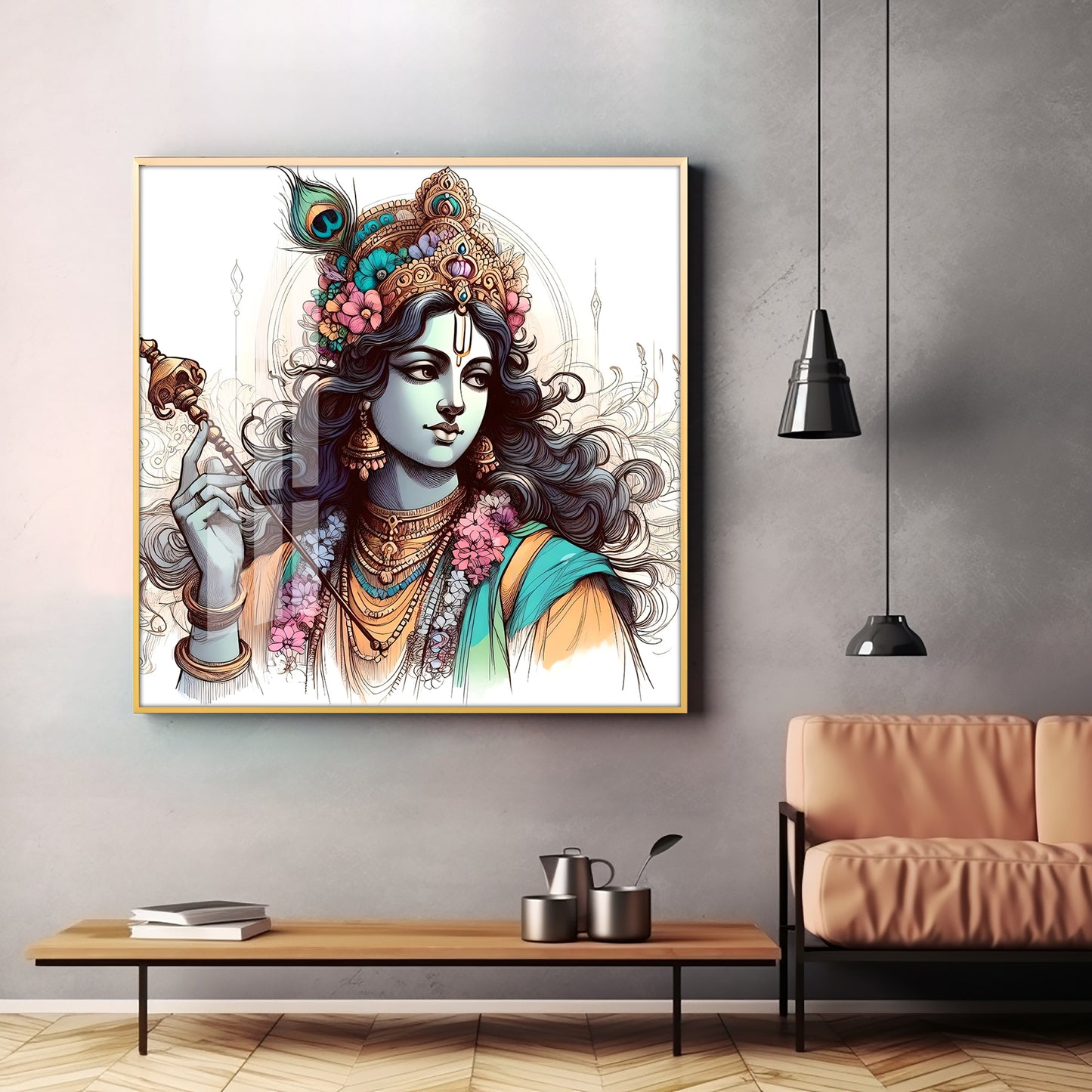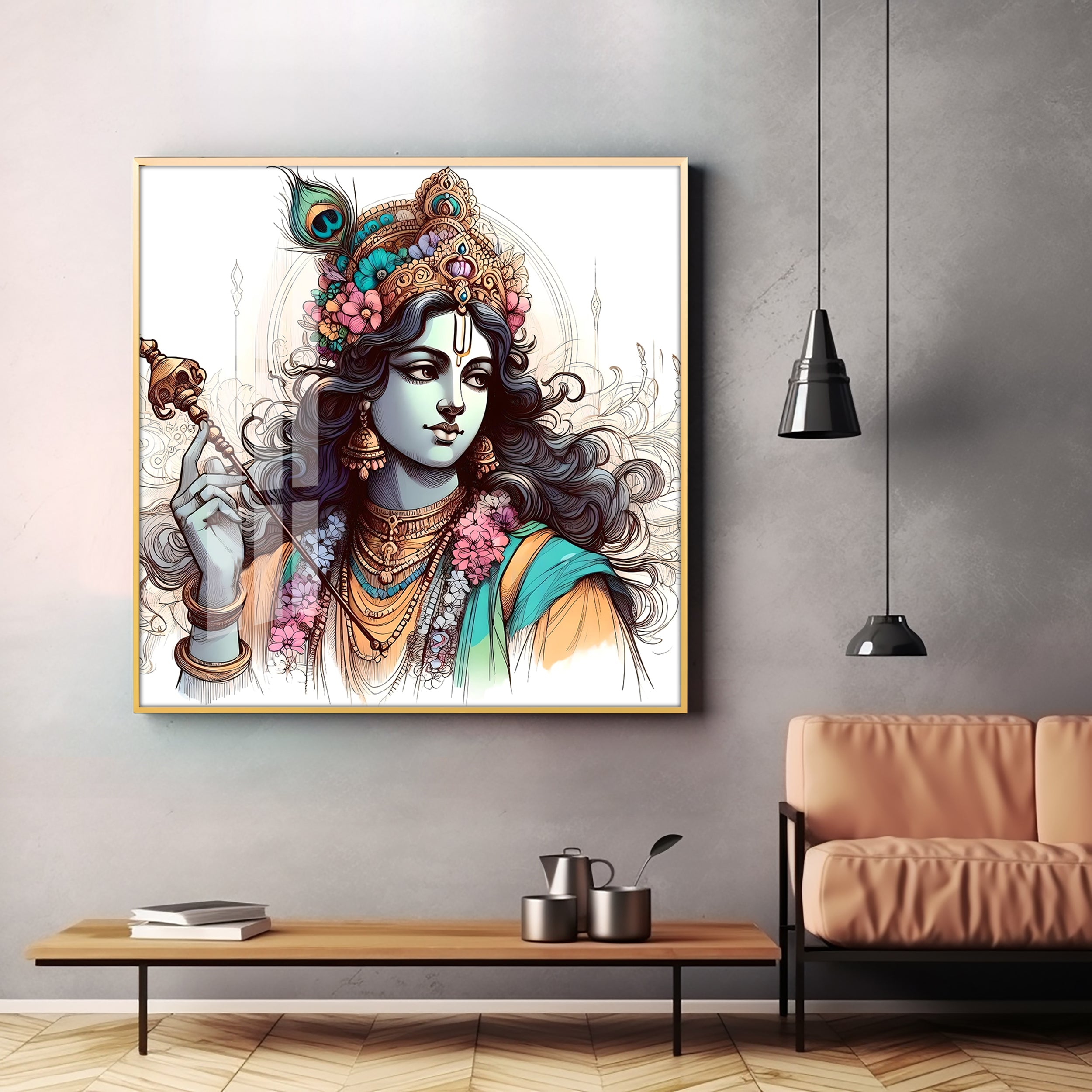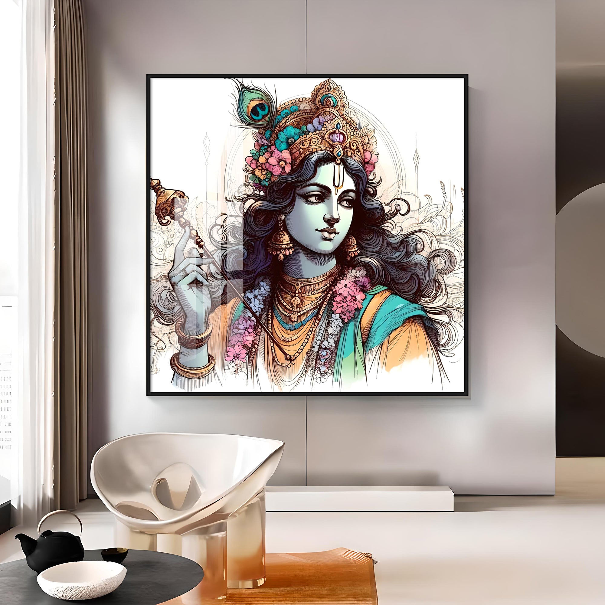Divine Krishna Premium Acrylic Square Wall Art