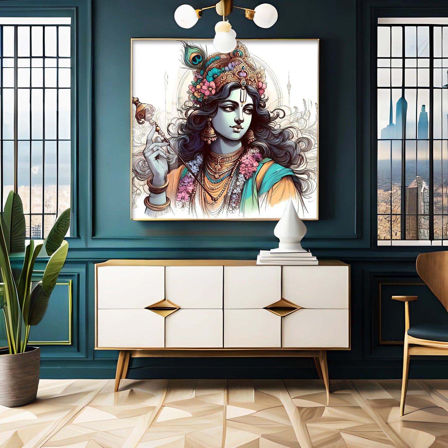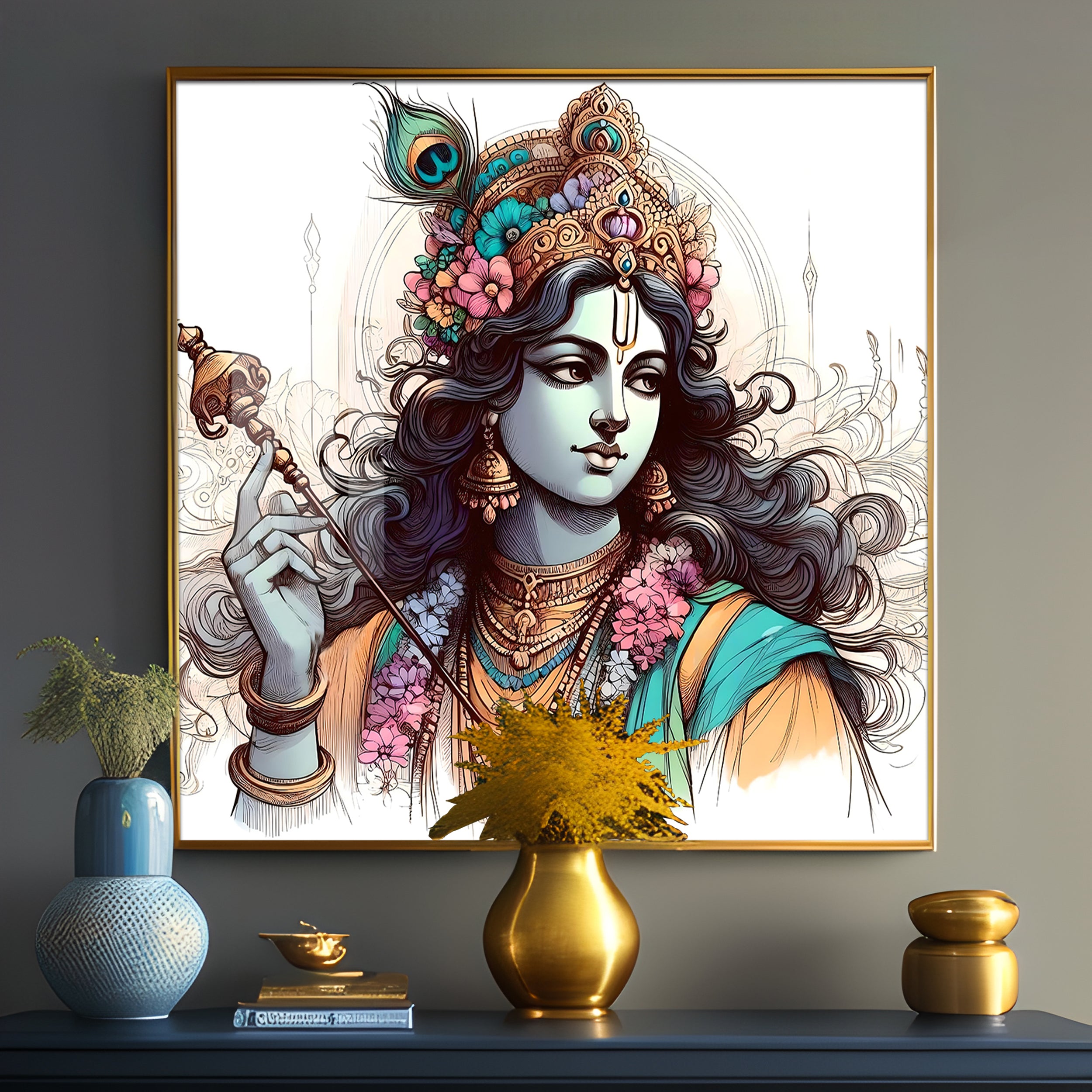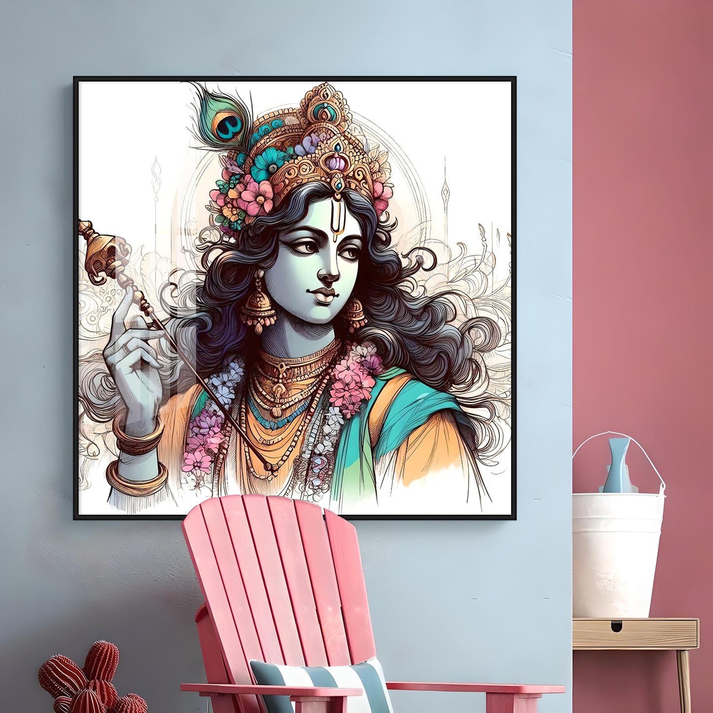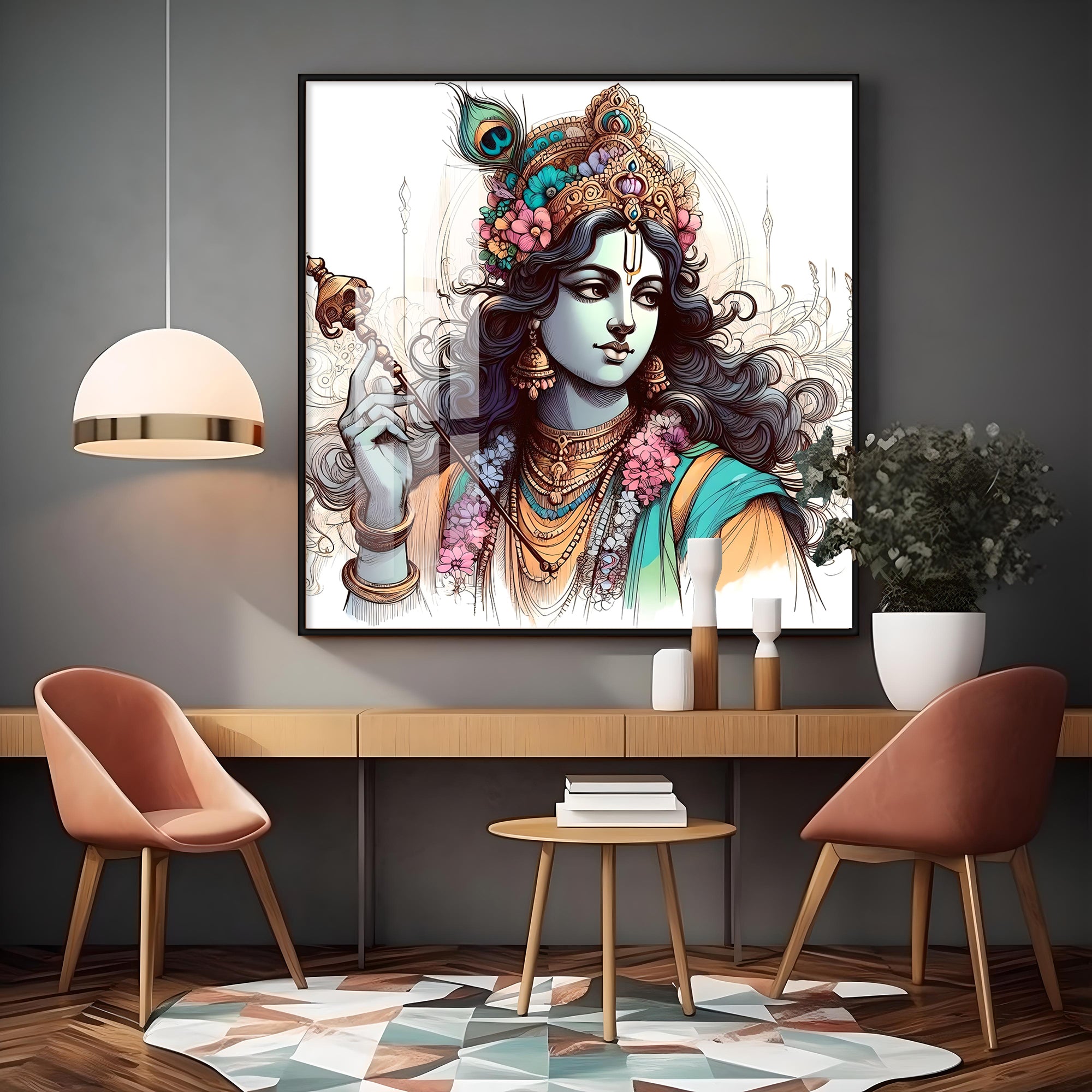 Divine Krishna Premium Acrylic Square Wall Art