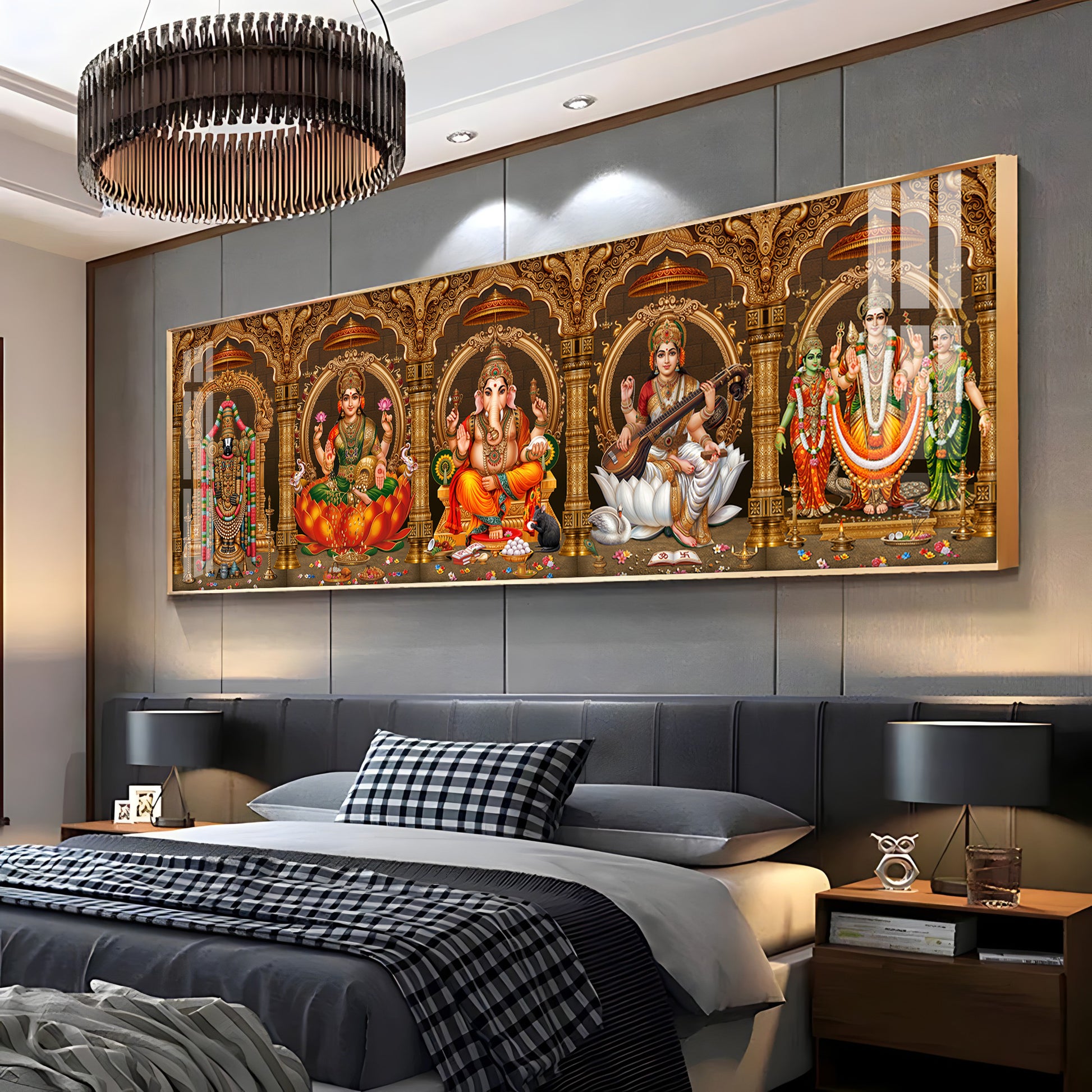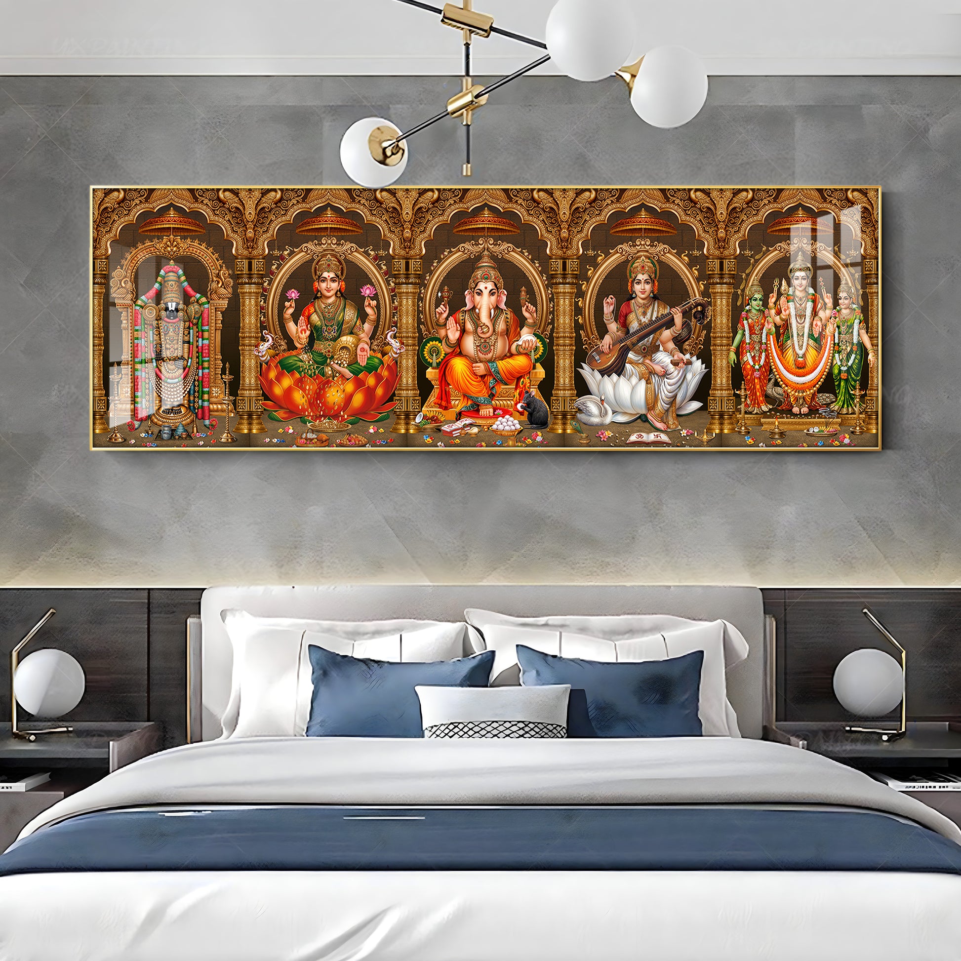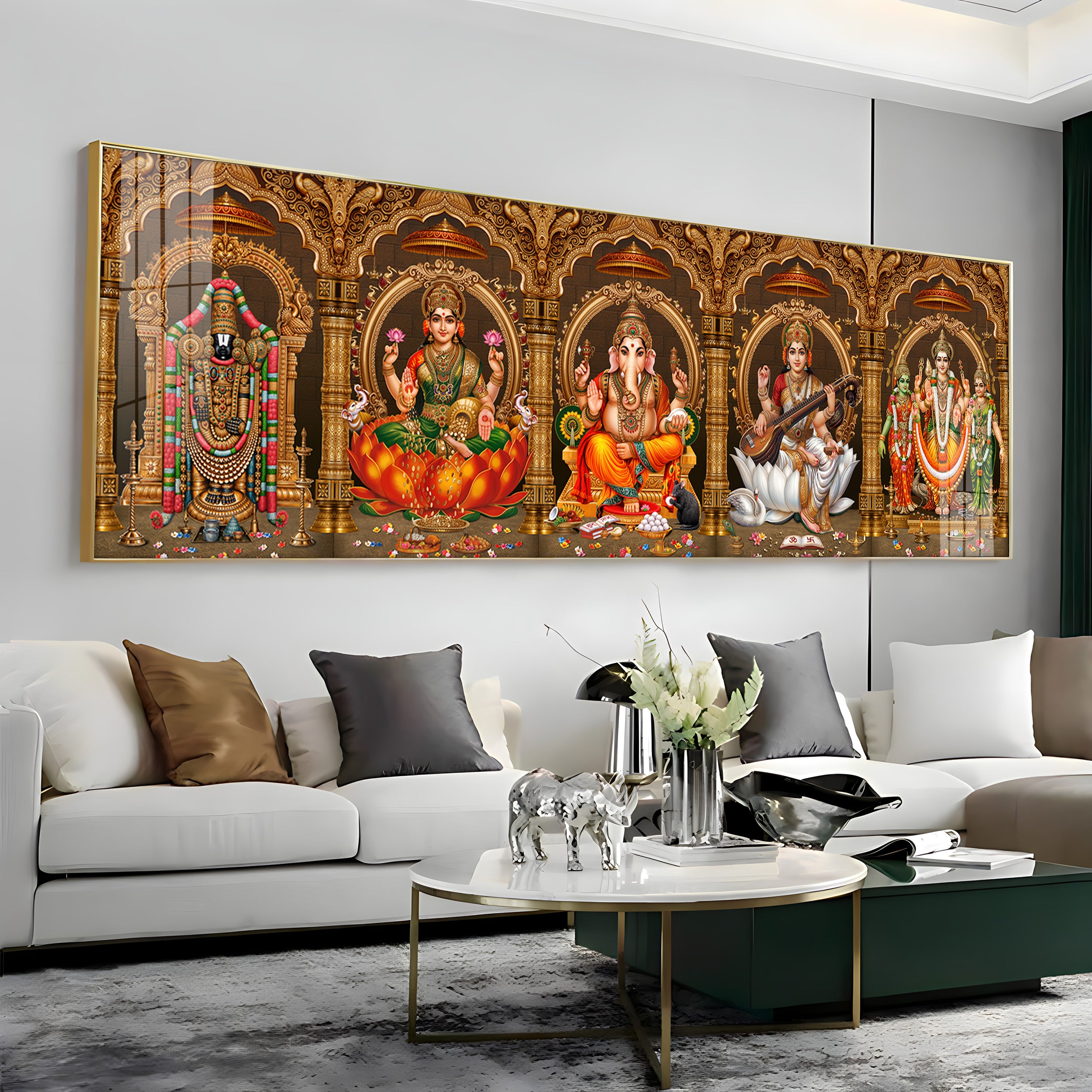 Divine Perumal, Lakshmi, Ganesha, Saraswati & Murugan Premium Acrylic Horizontal Wall Art