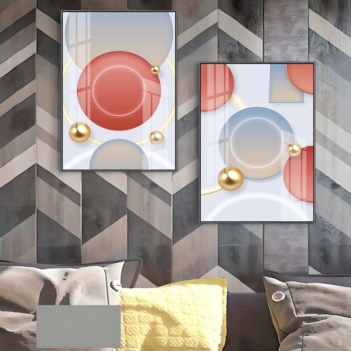 Our Framed Acrylic Wall Art is easy to hang. The metal hooks are included on the corners of your ordered wall art. You can simply mount it to your wall.