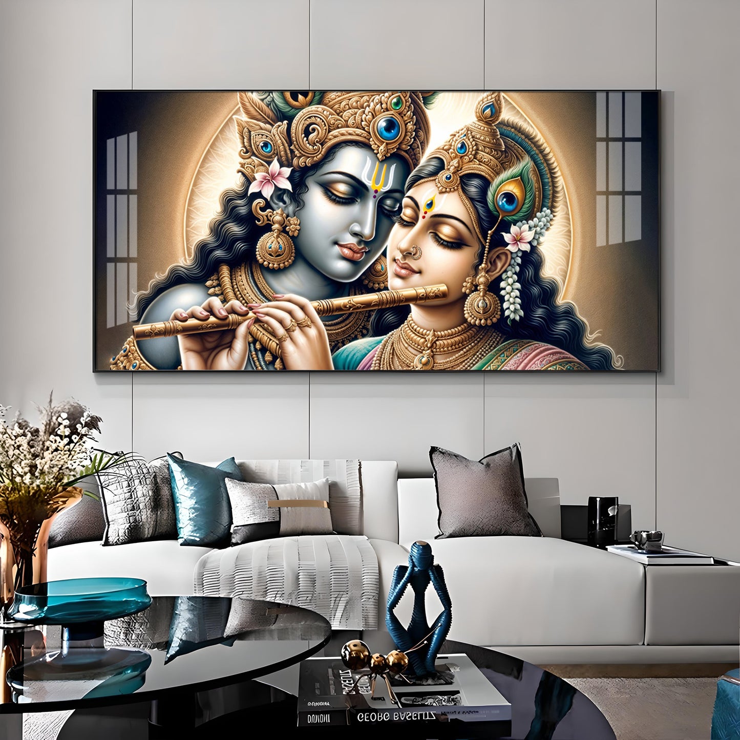 Enchanting Love Of Radha Krishna Premium Acrylic Horizontal Wall Art