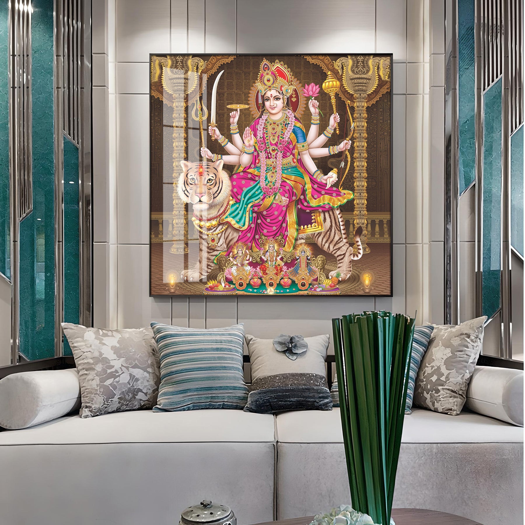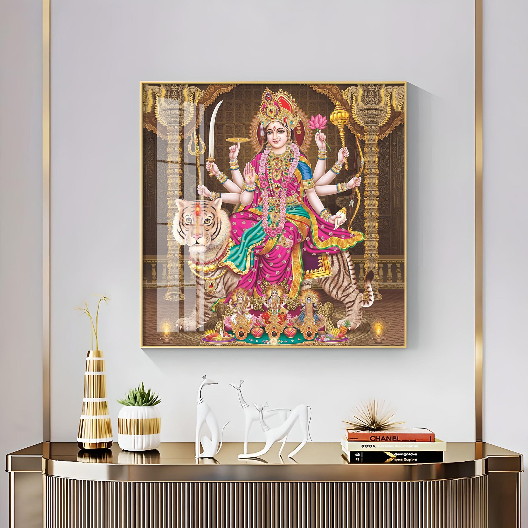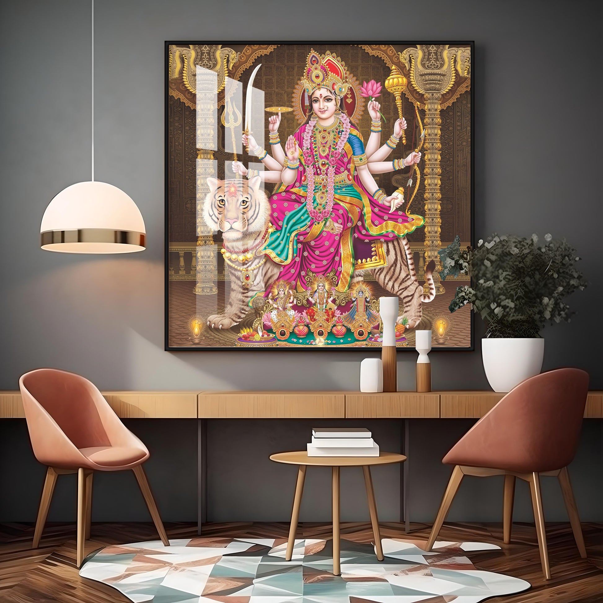 Eternal Devotion Of Durga Mata Premium Acrylic Square Wall Art