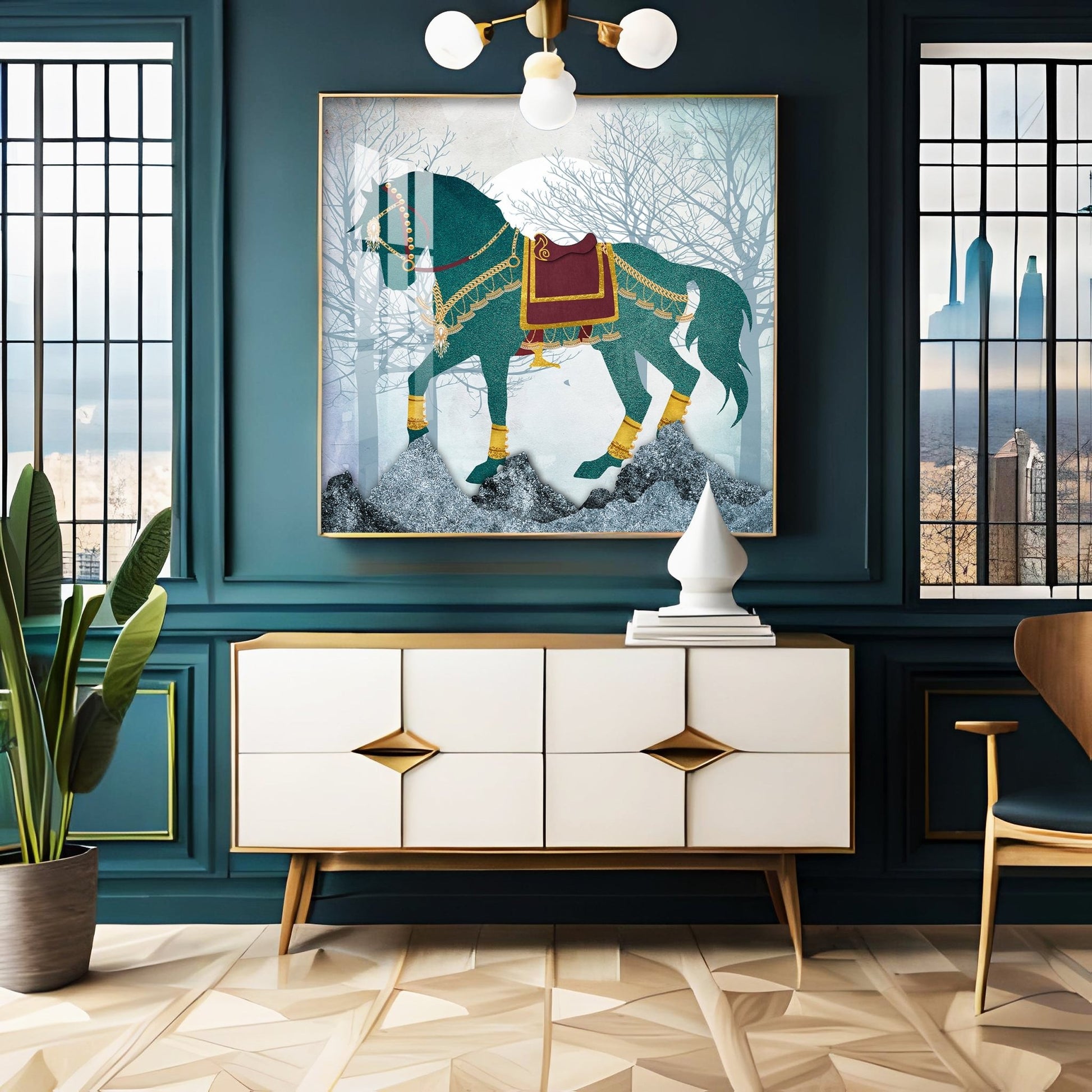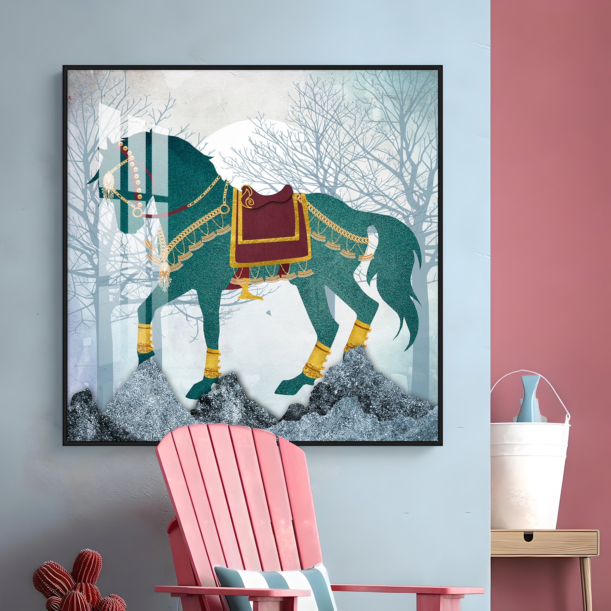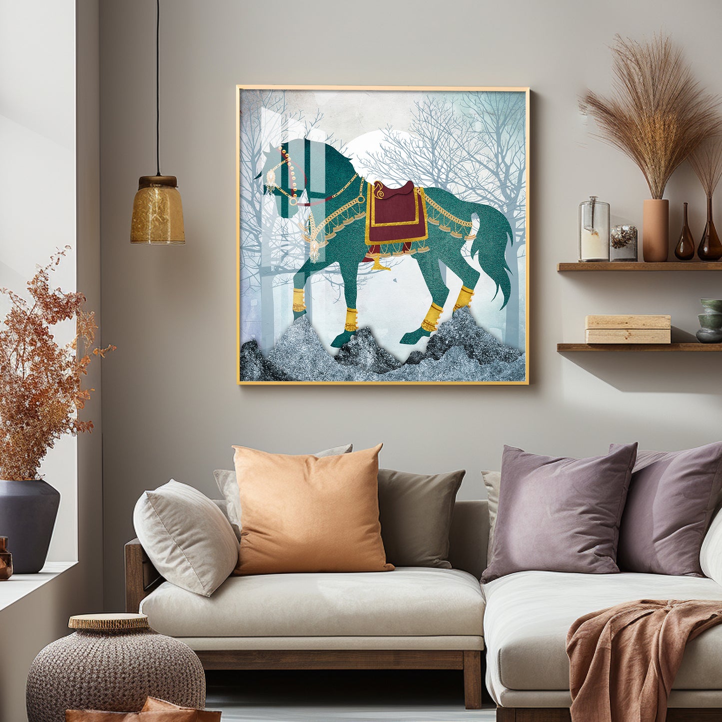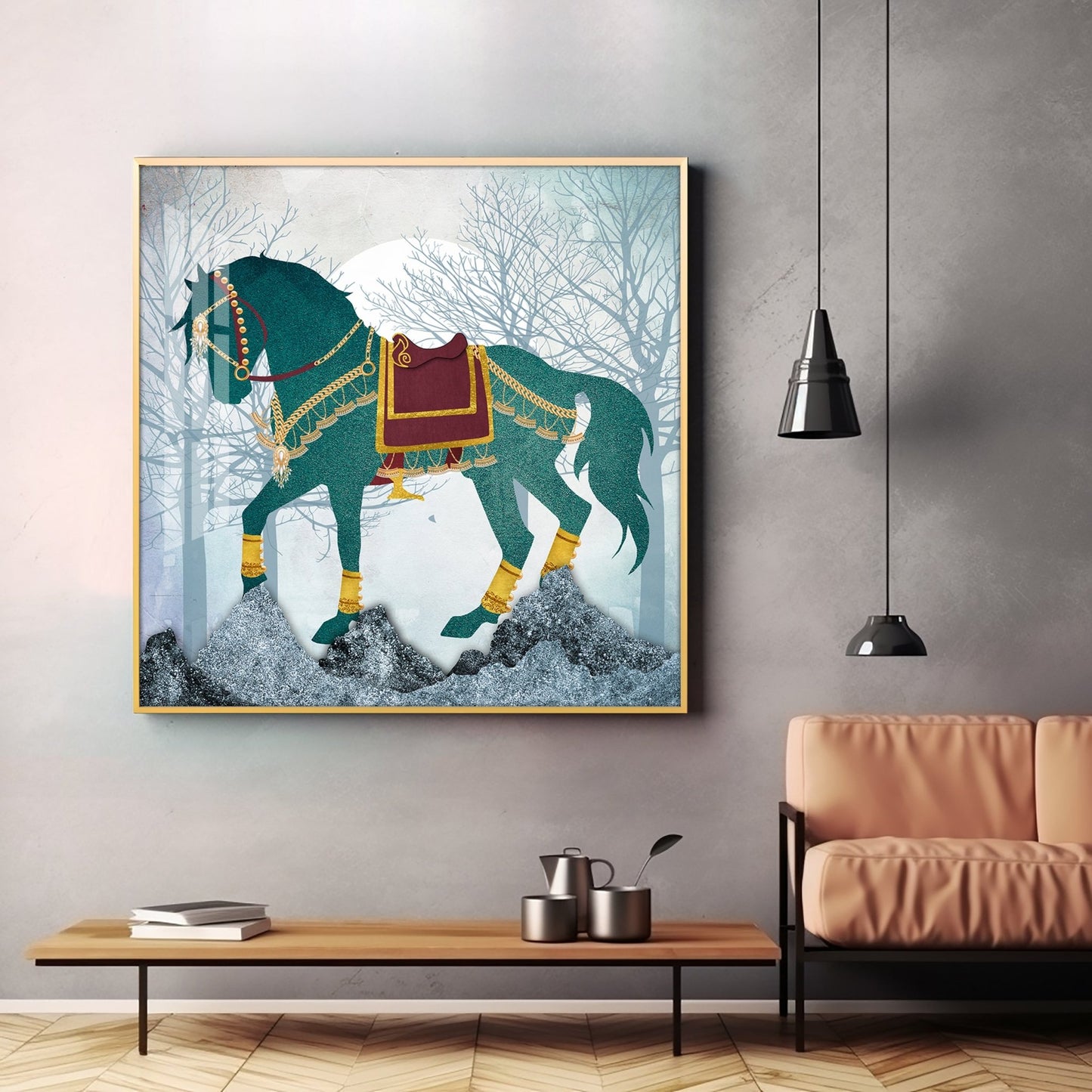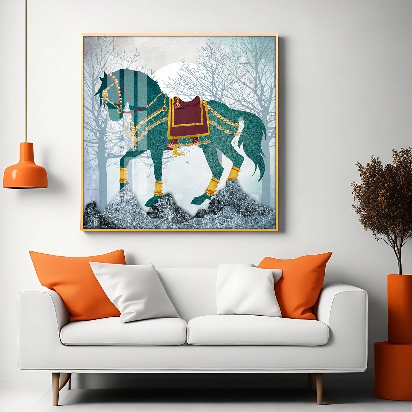 European Abstract Three-Dimensional Horse Premium Acrylic Square Wall Art