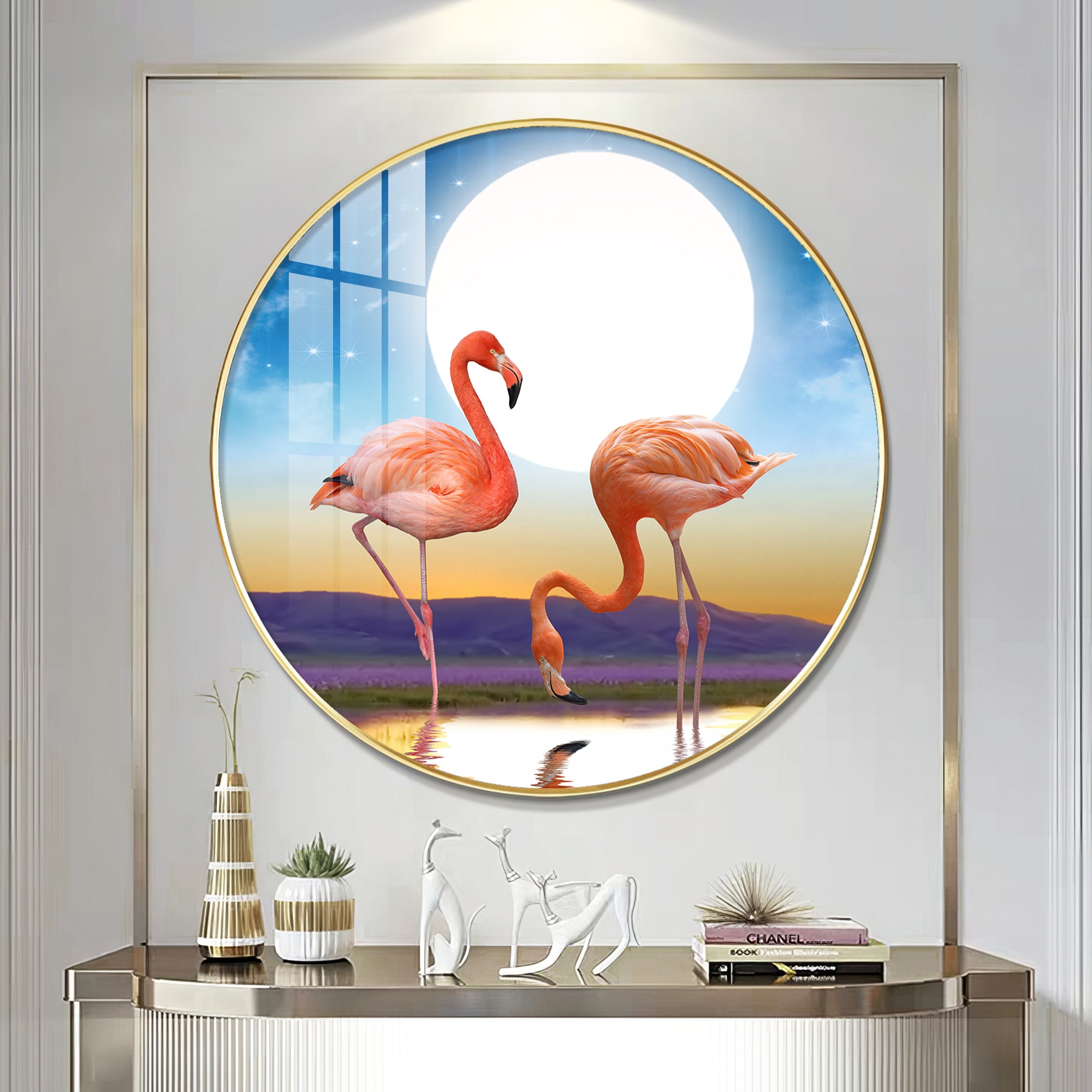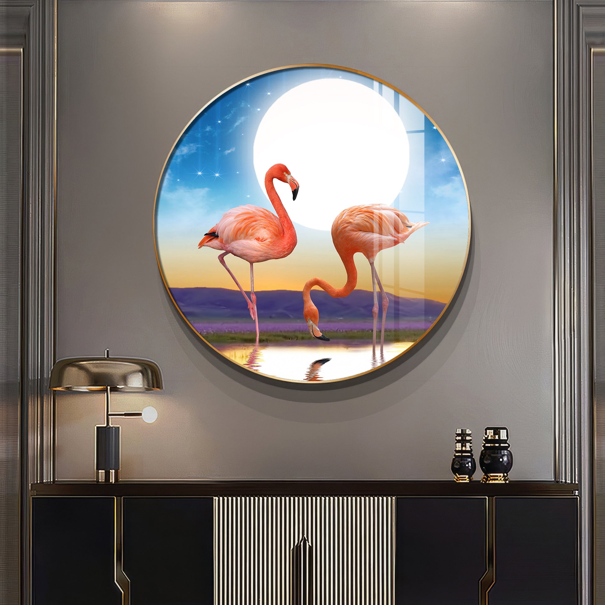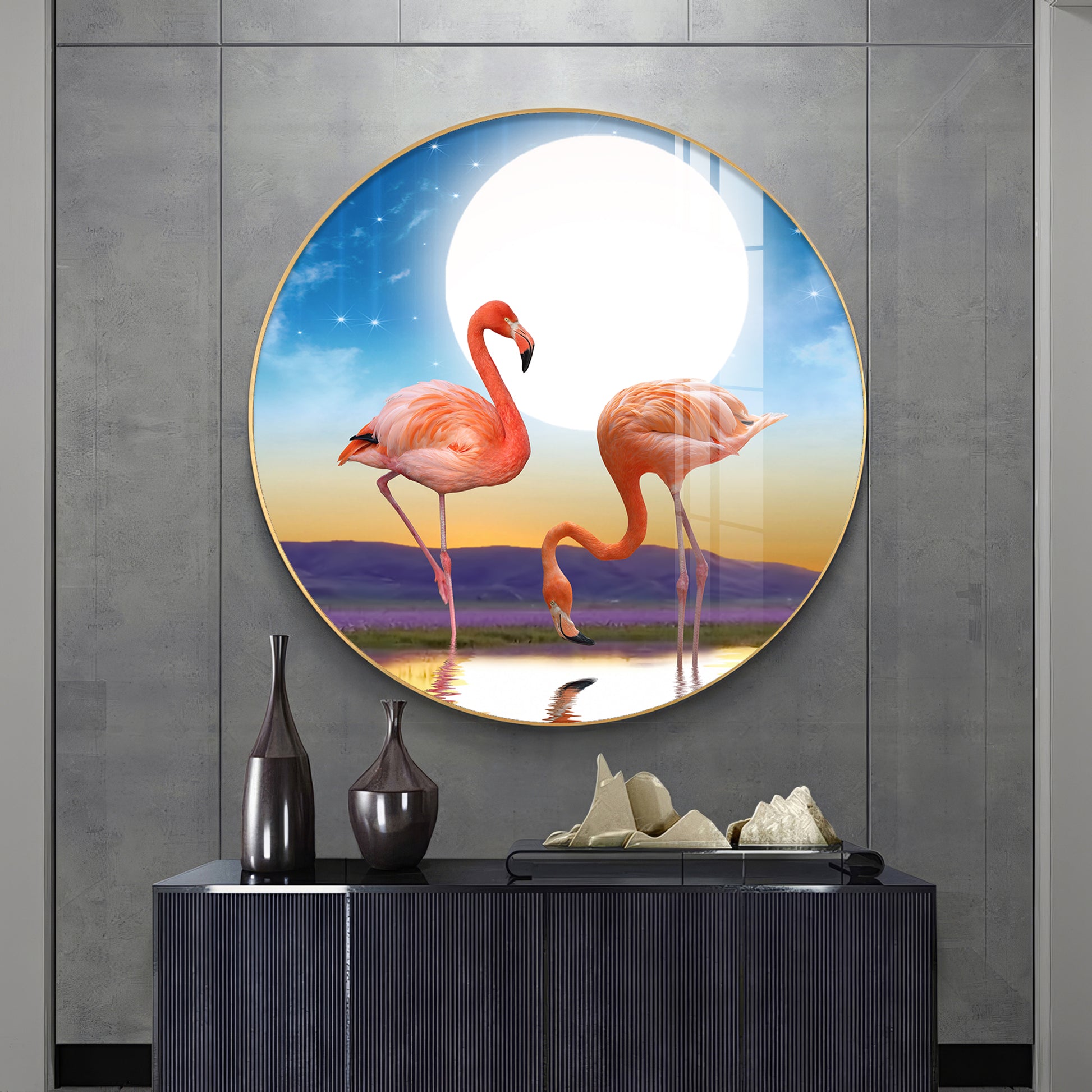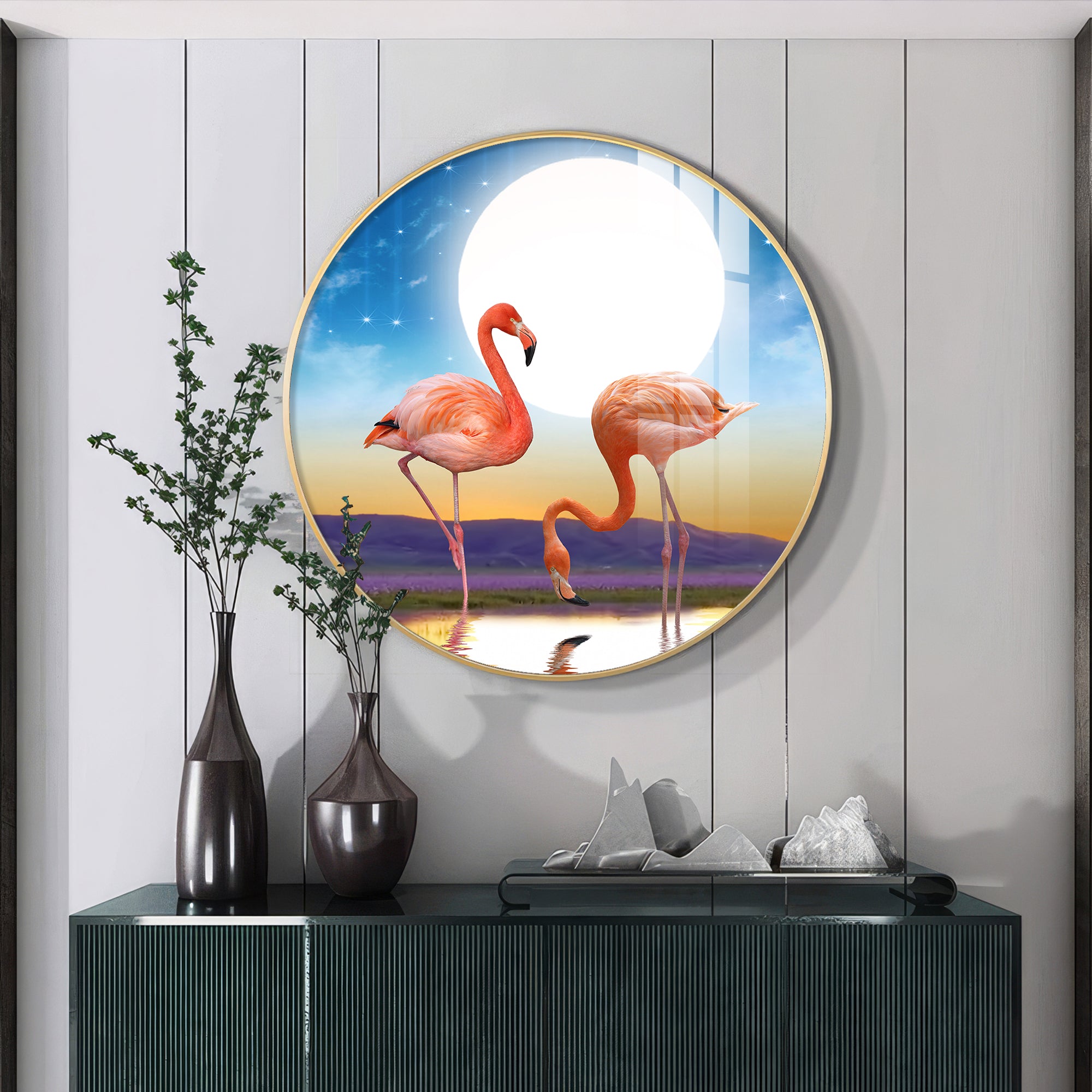 Flamingo Serenity Premium Acrylic Round Wall Art