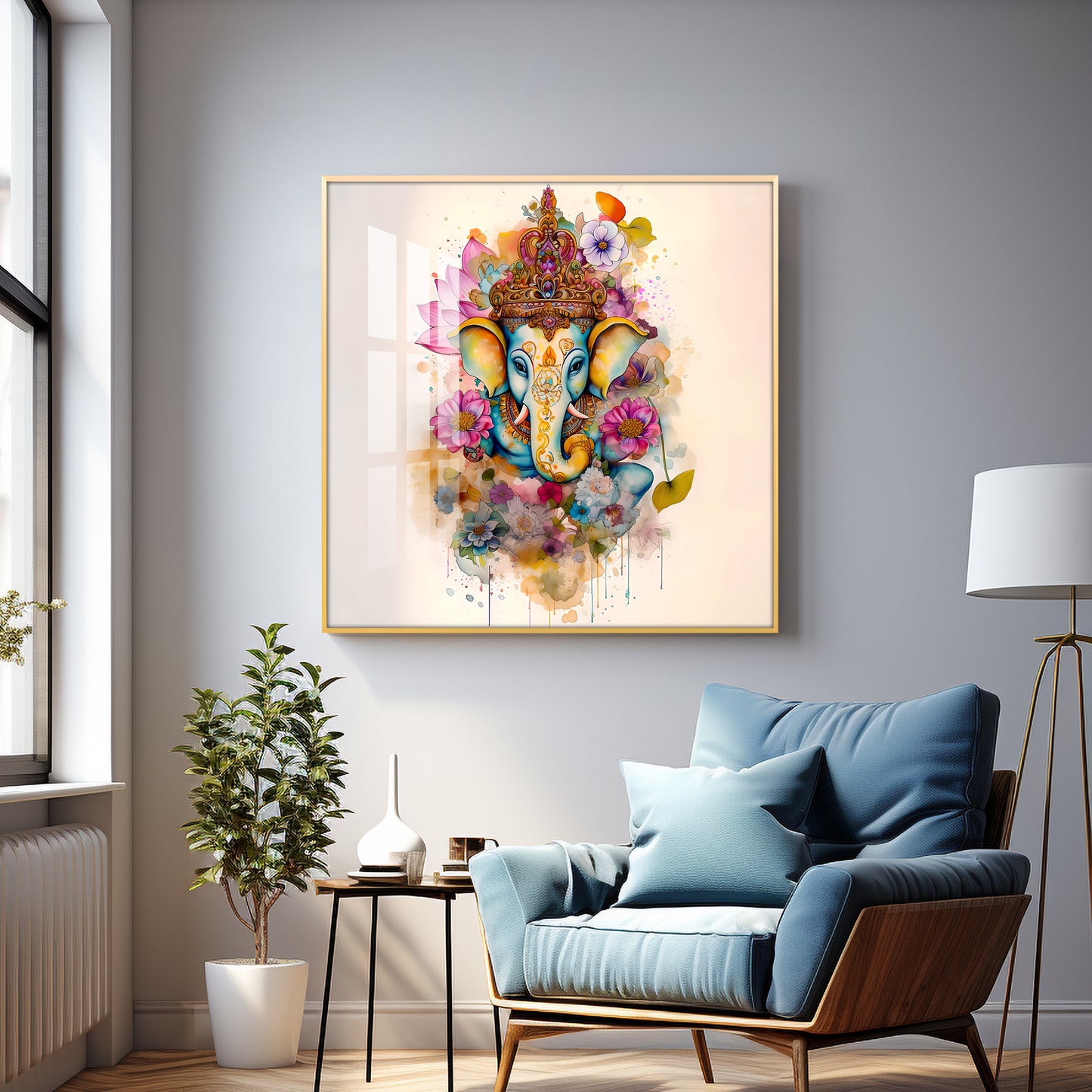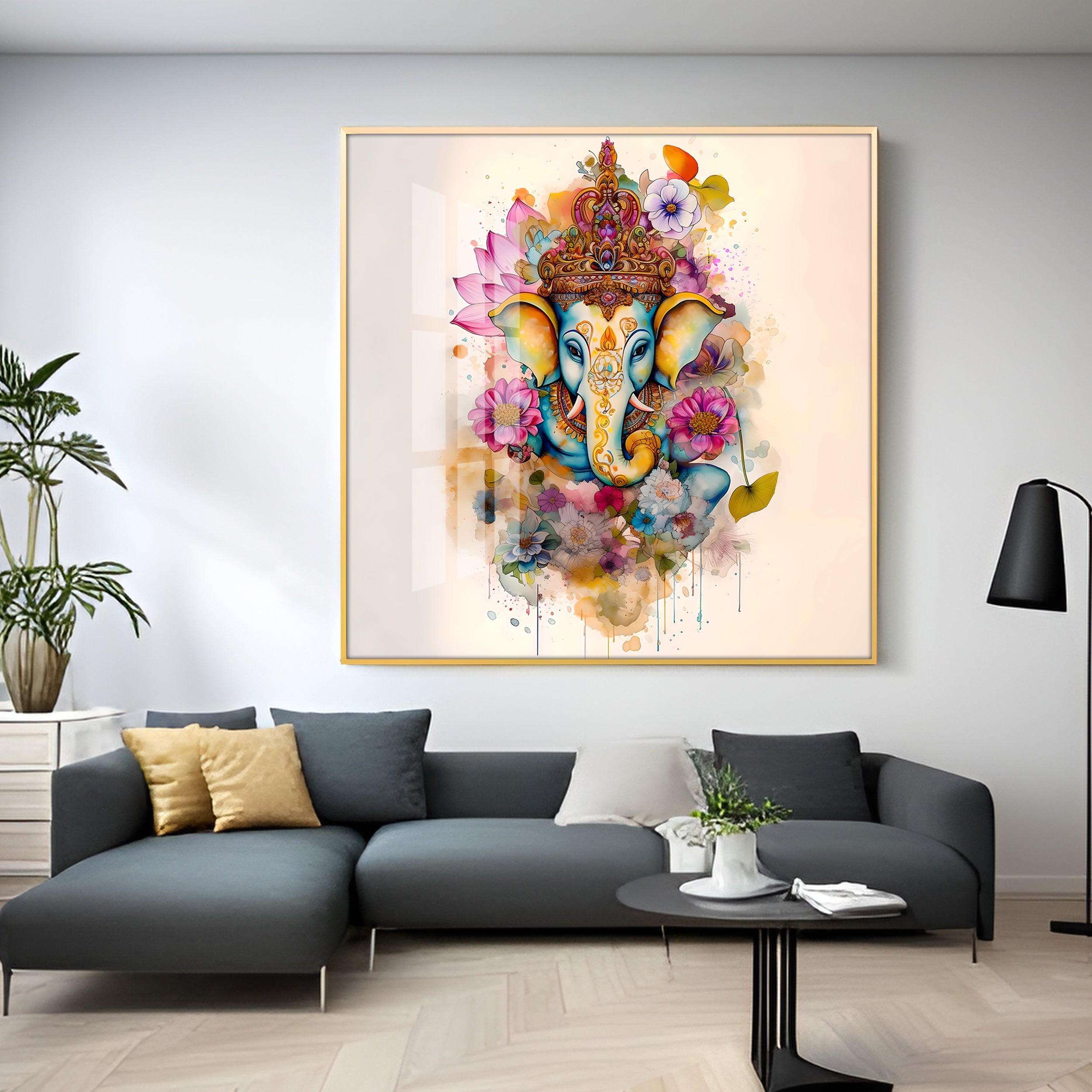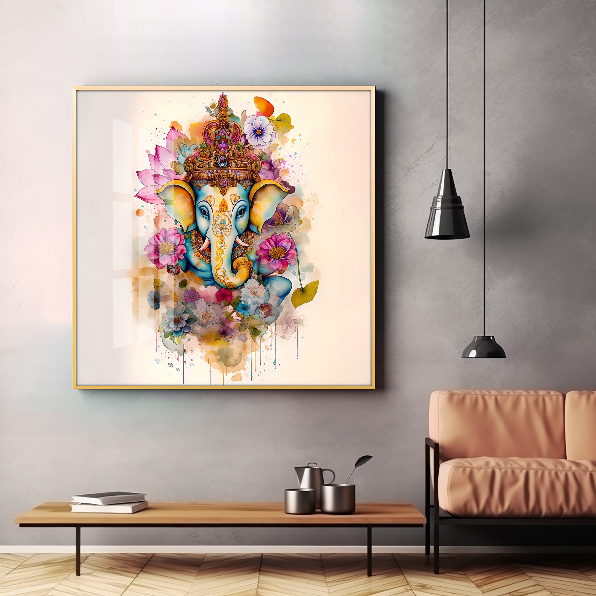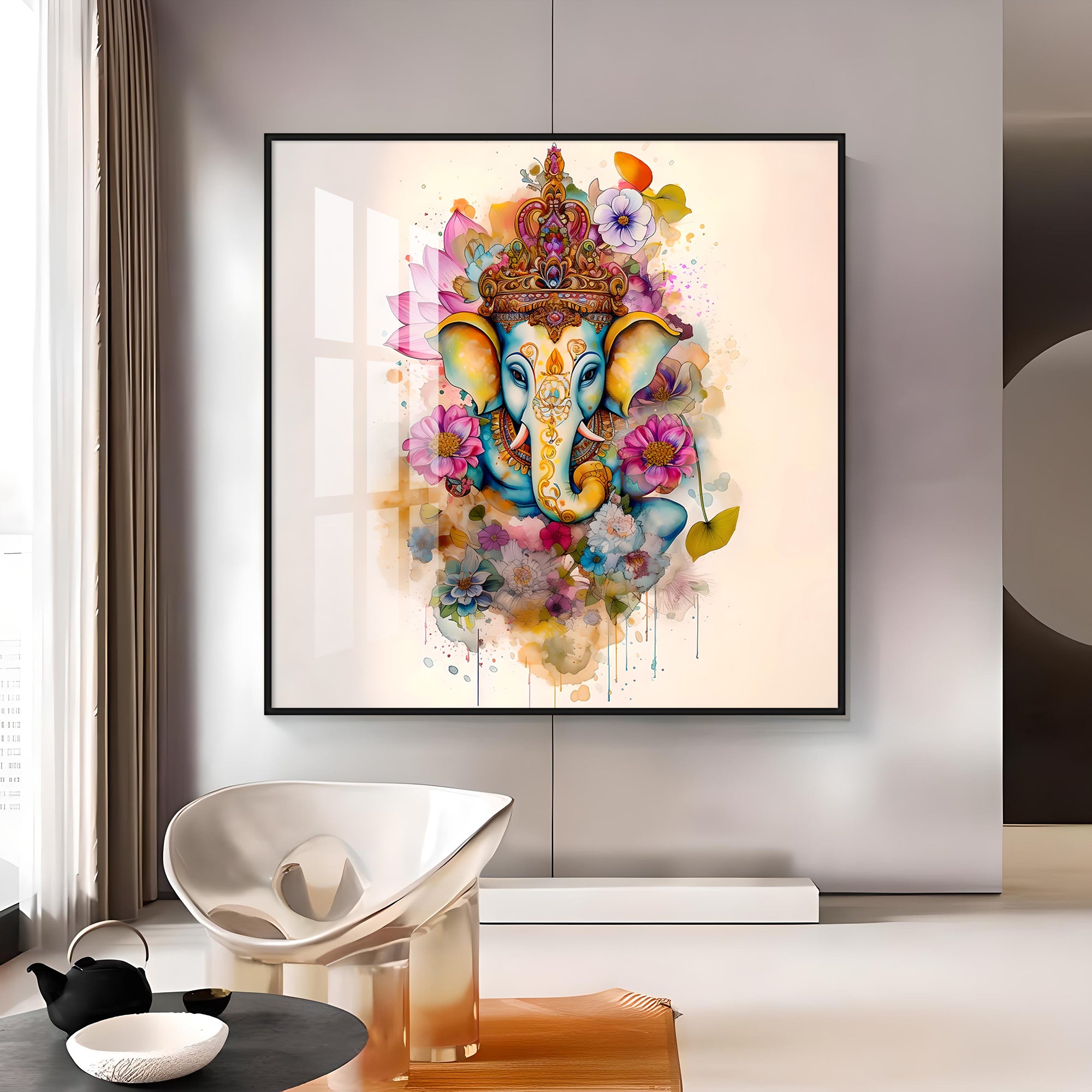 Flowery Ganesh Premium Acrylic Square Wall Art