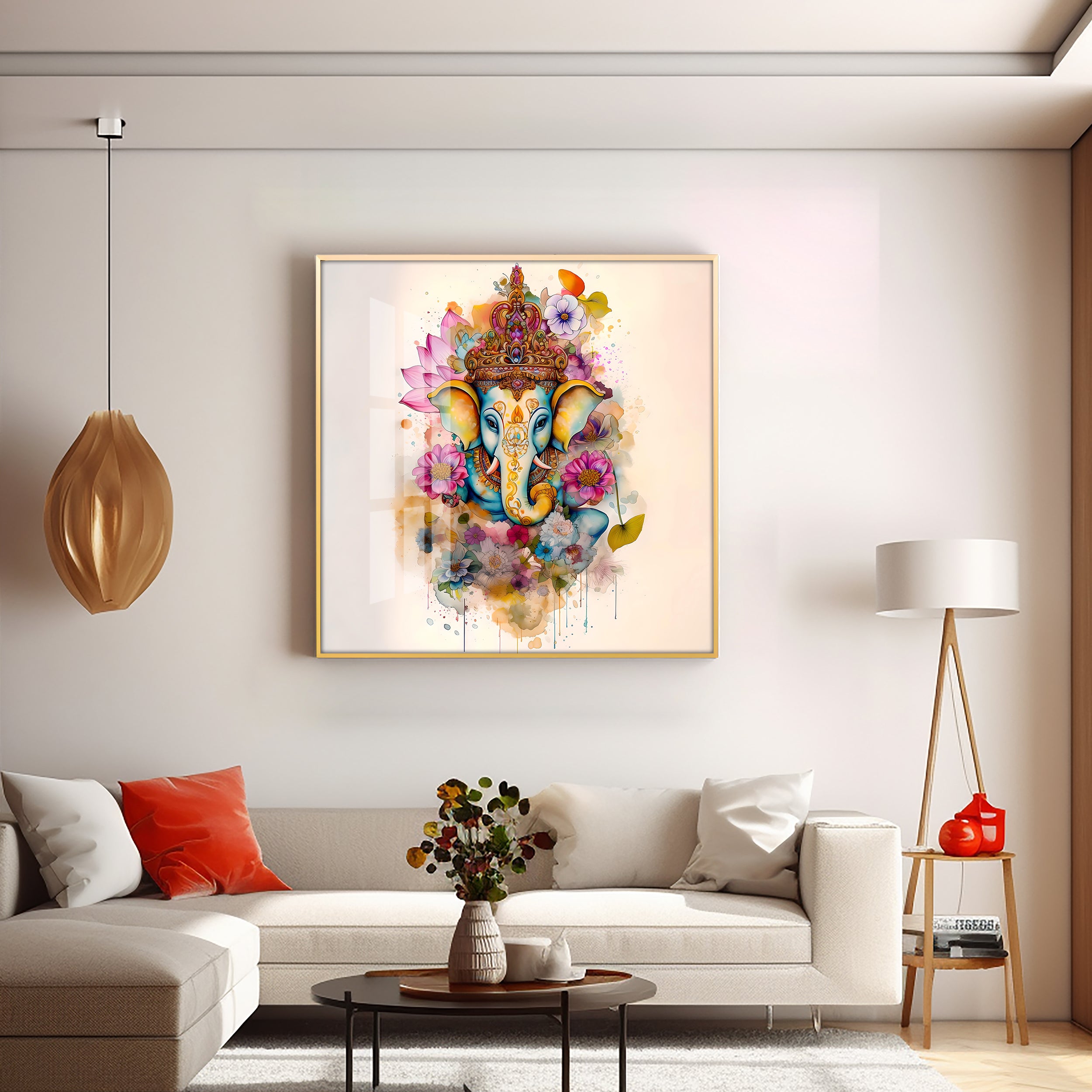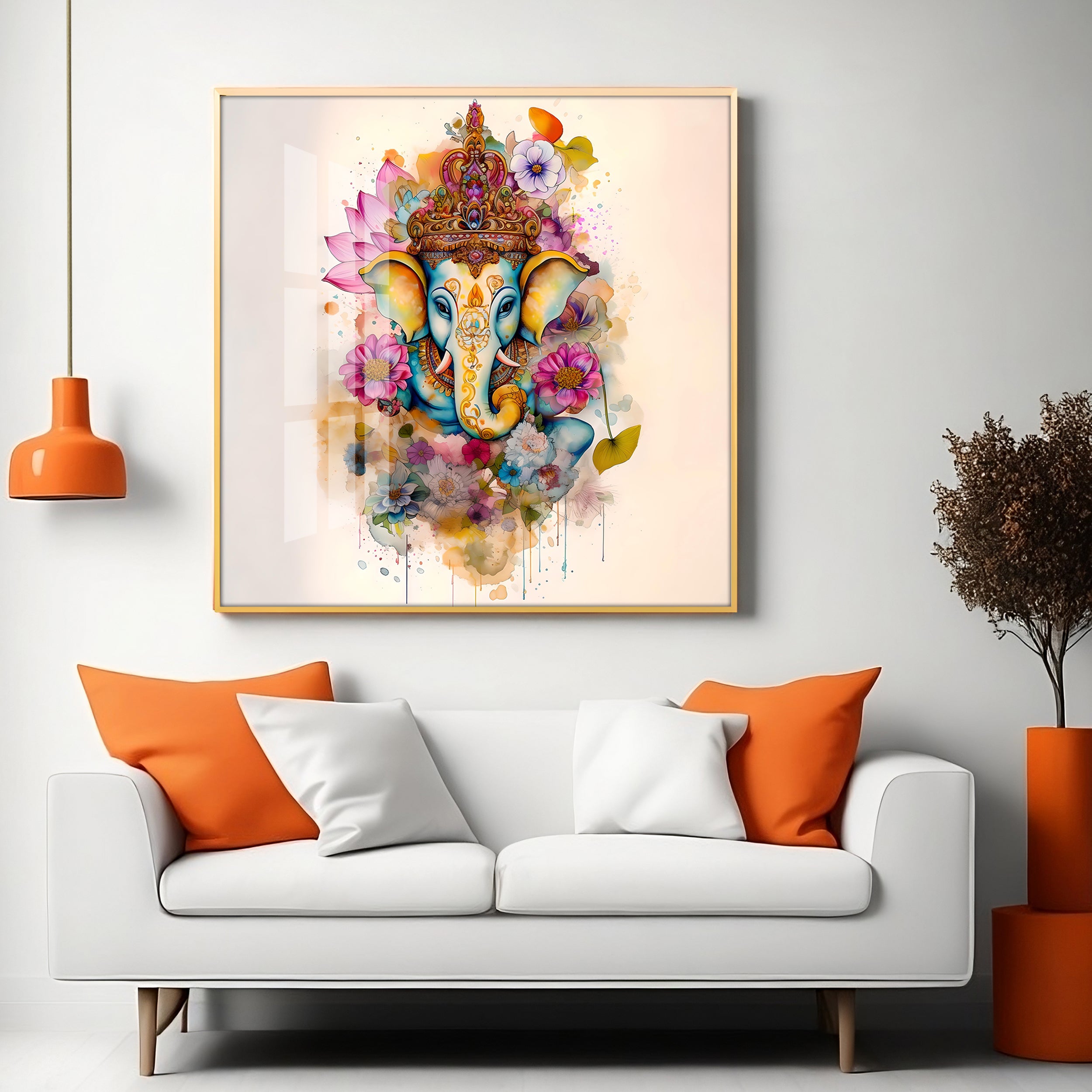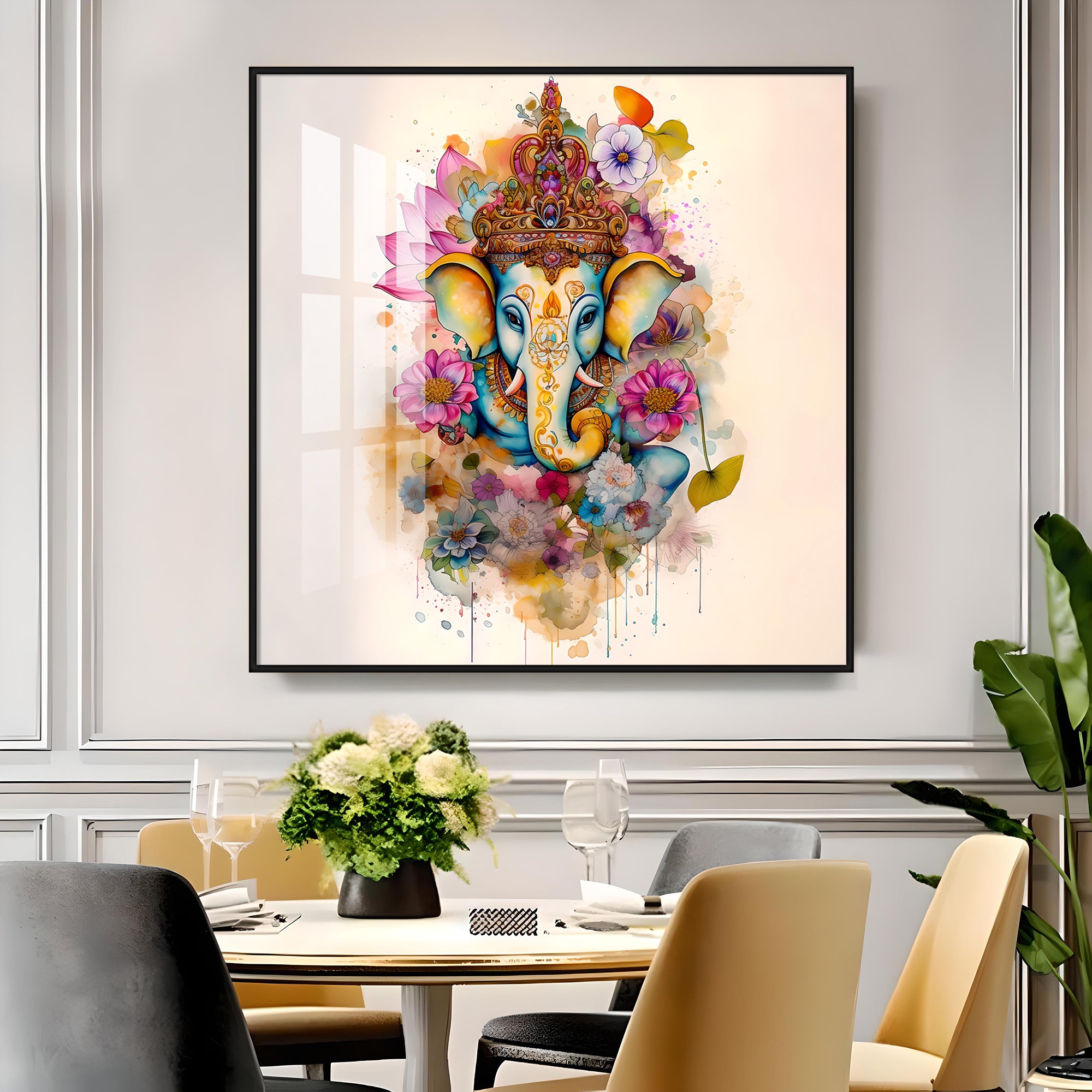 Flowery Ganesh Premium Acrylic Square Wall Art
