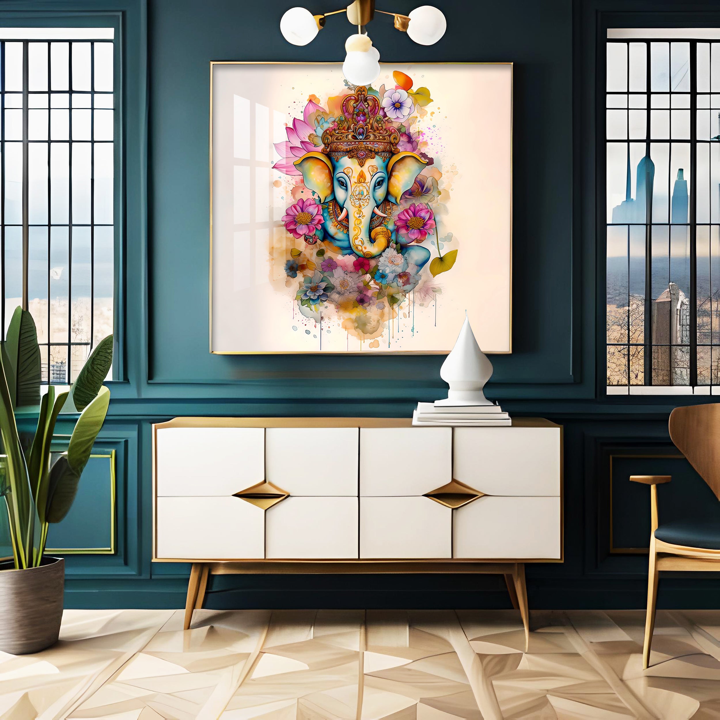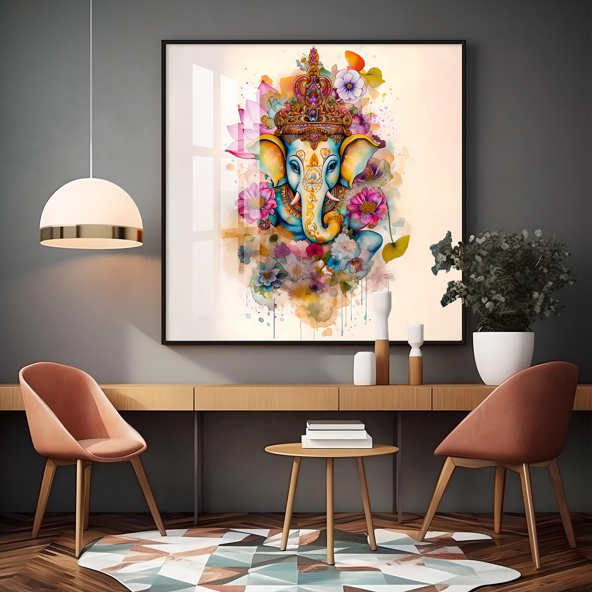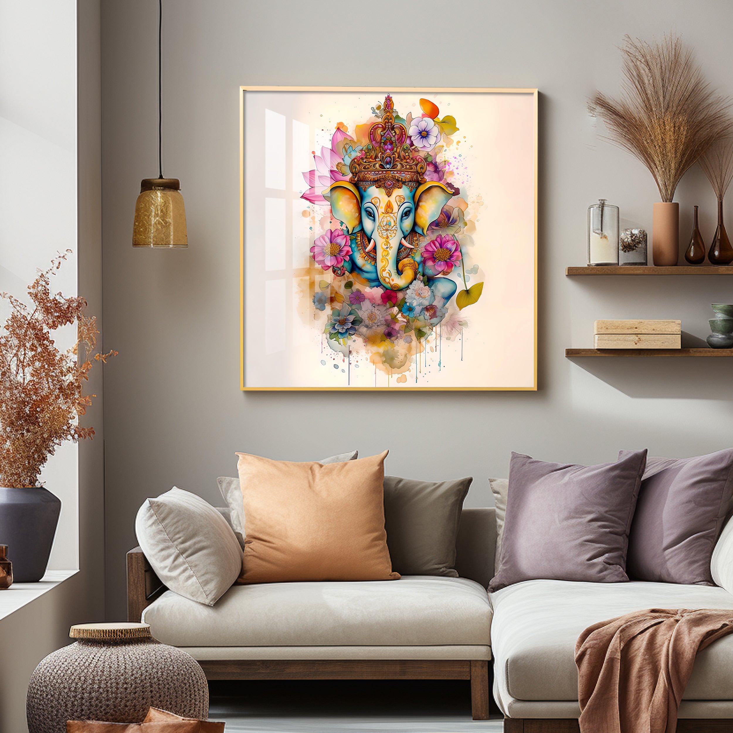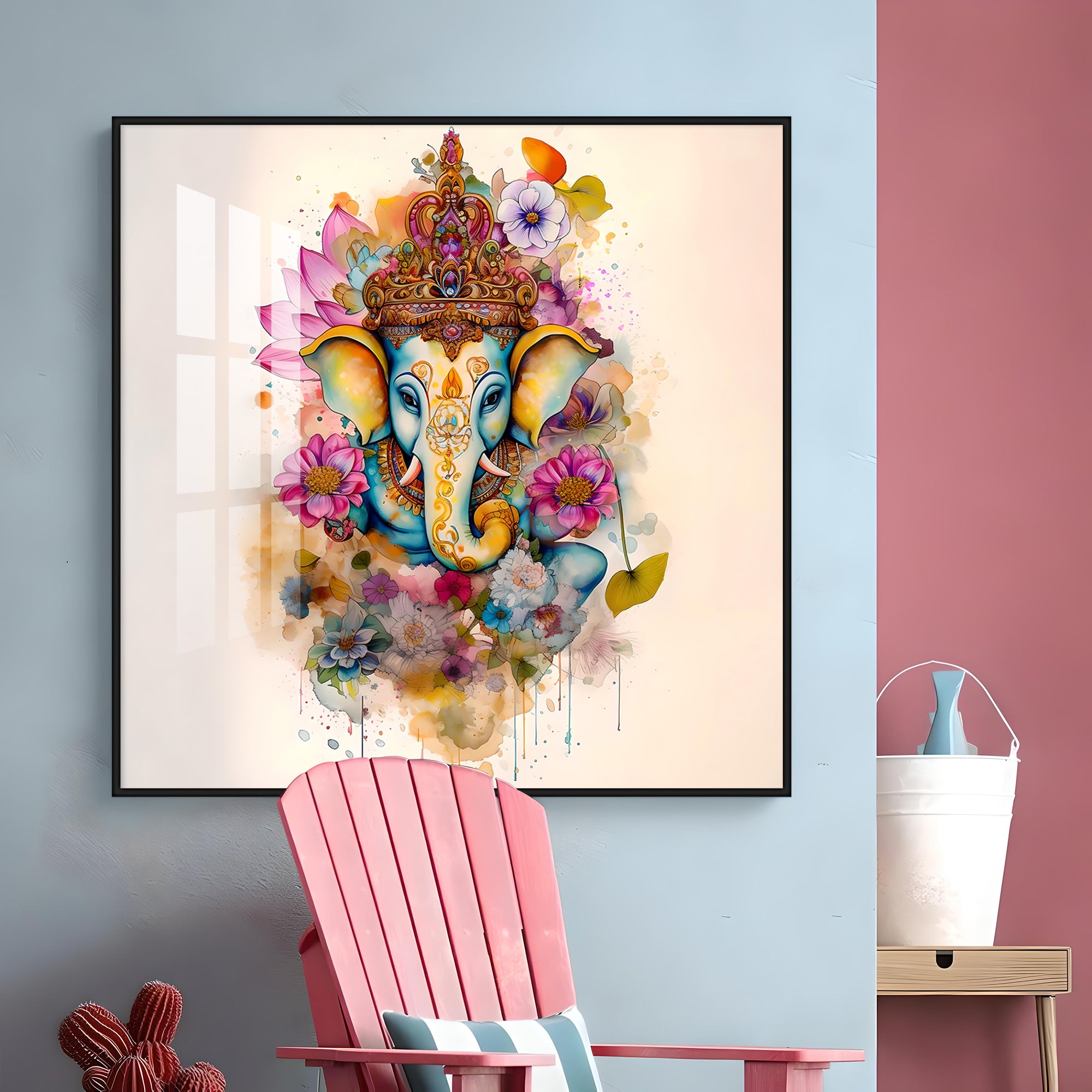 Flowery Ganesh Premium Acrylic Square Wall Art