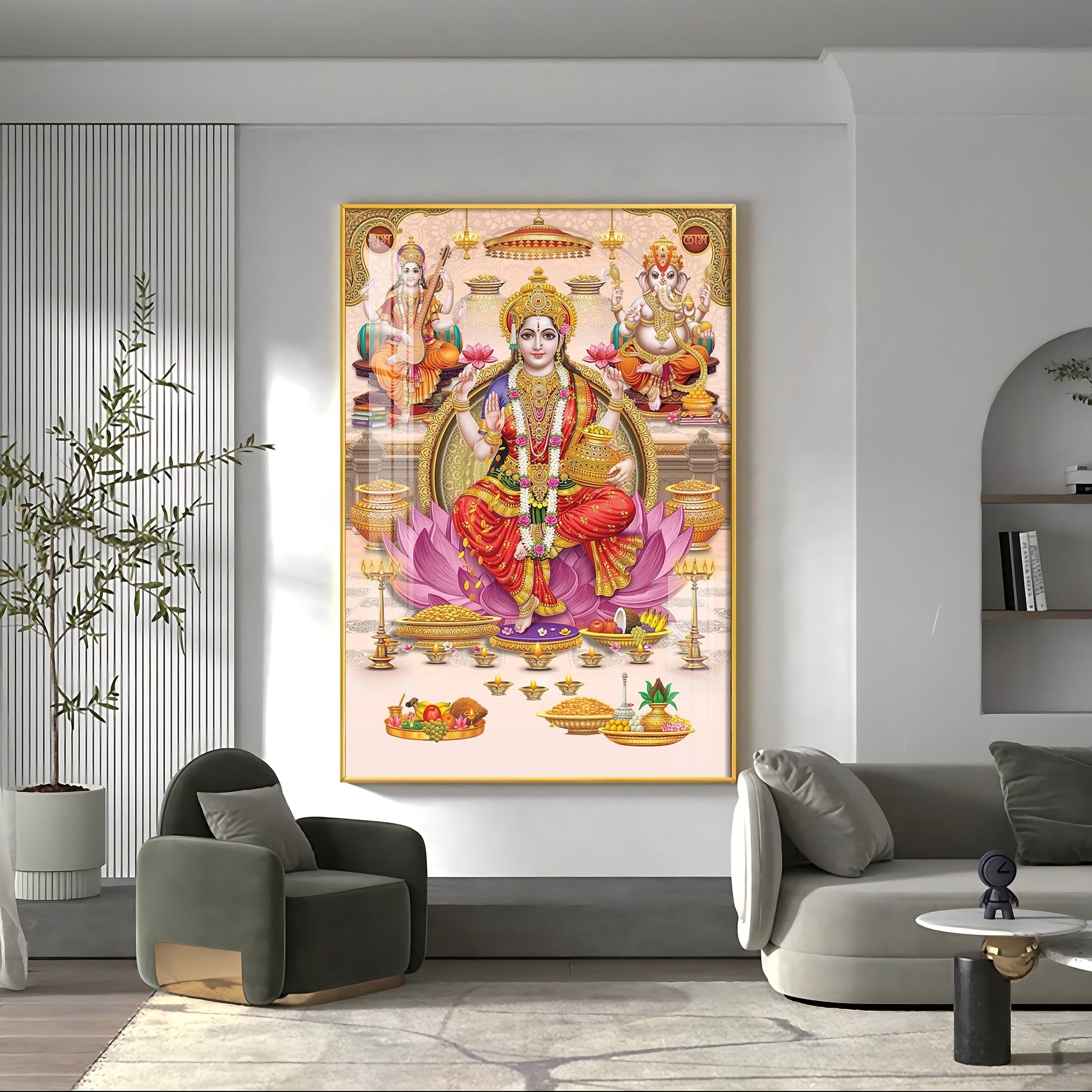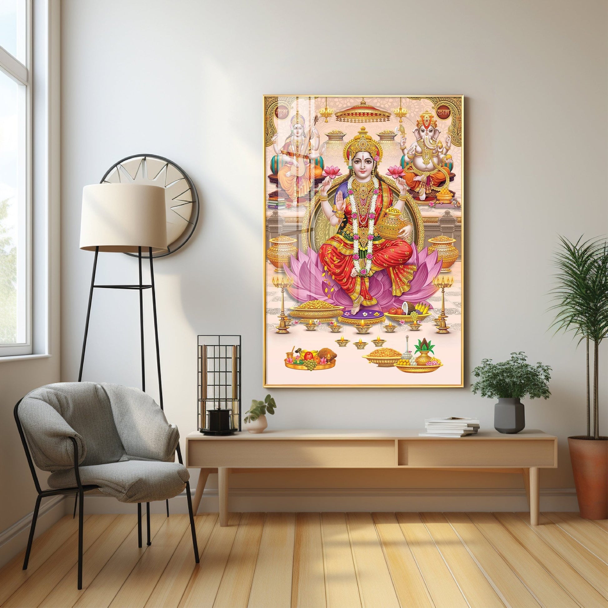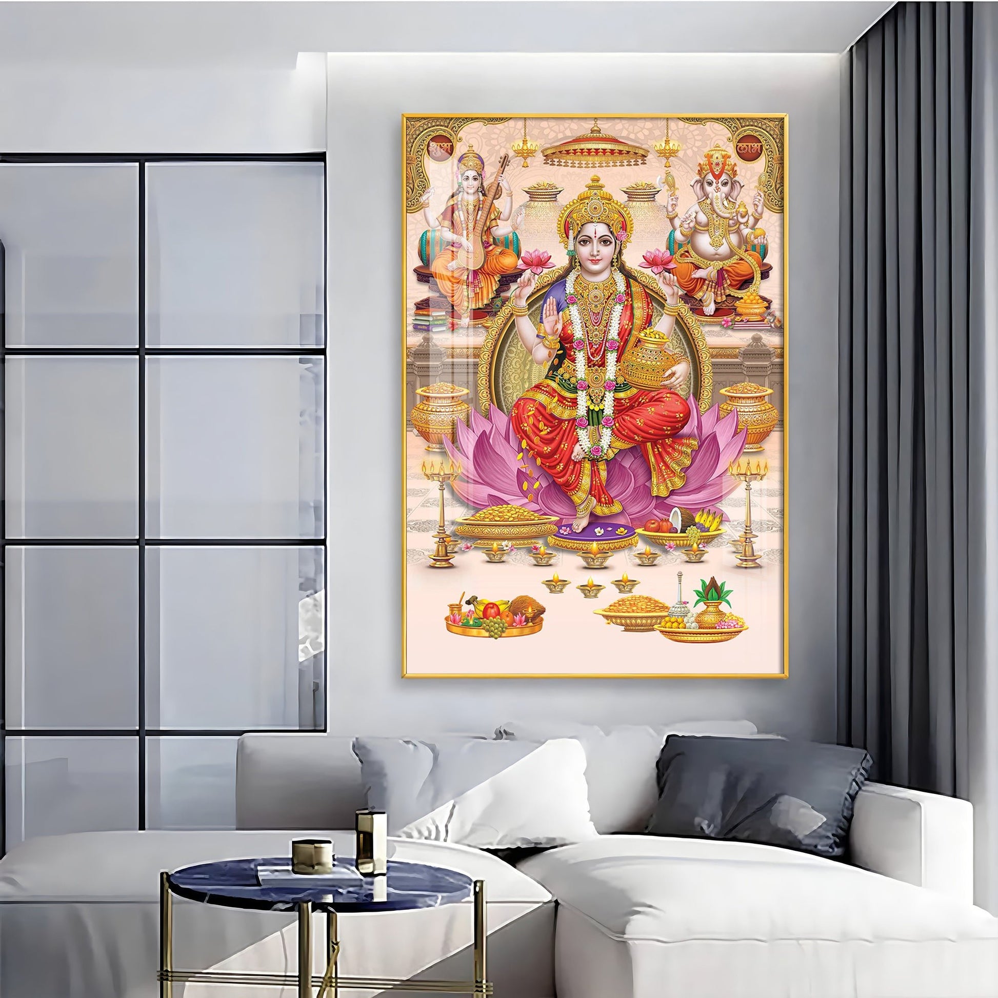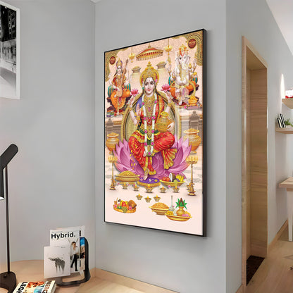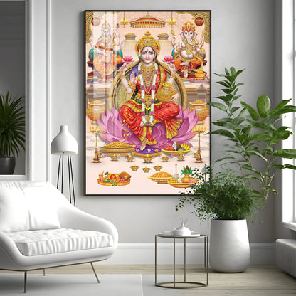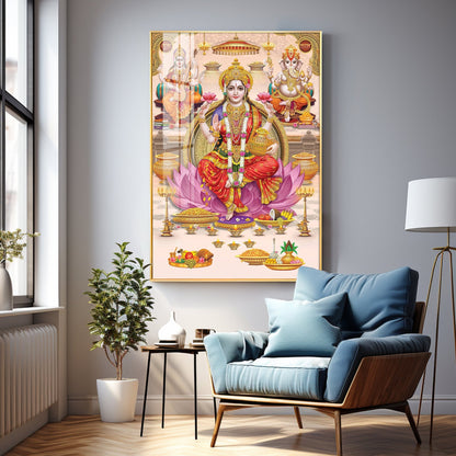 Goddess Maha Laxmi Ji On Kamala Premium Acrylic Vertical Wall Art