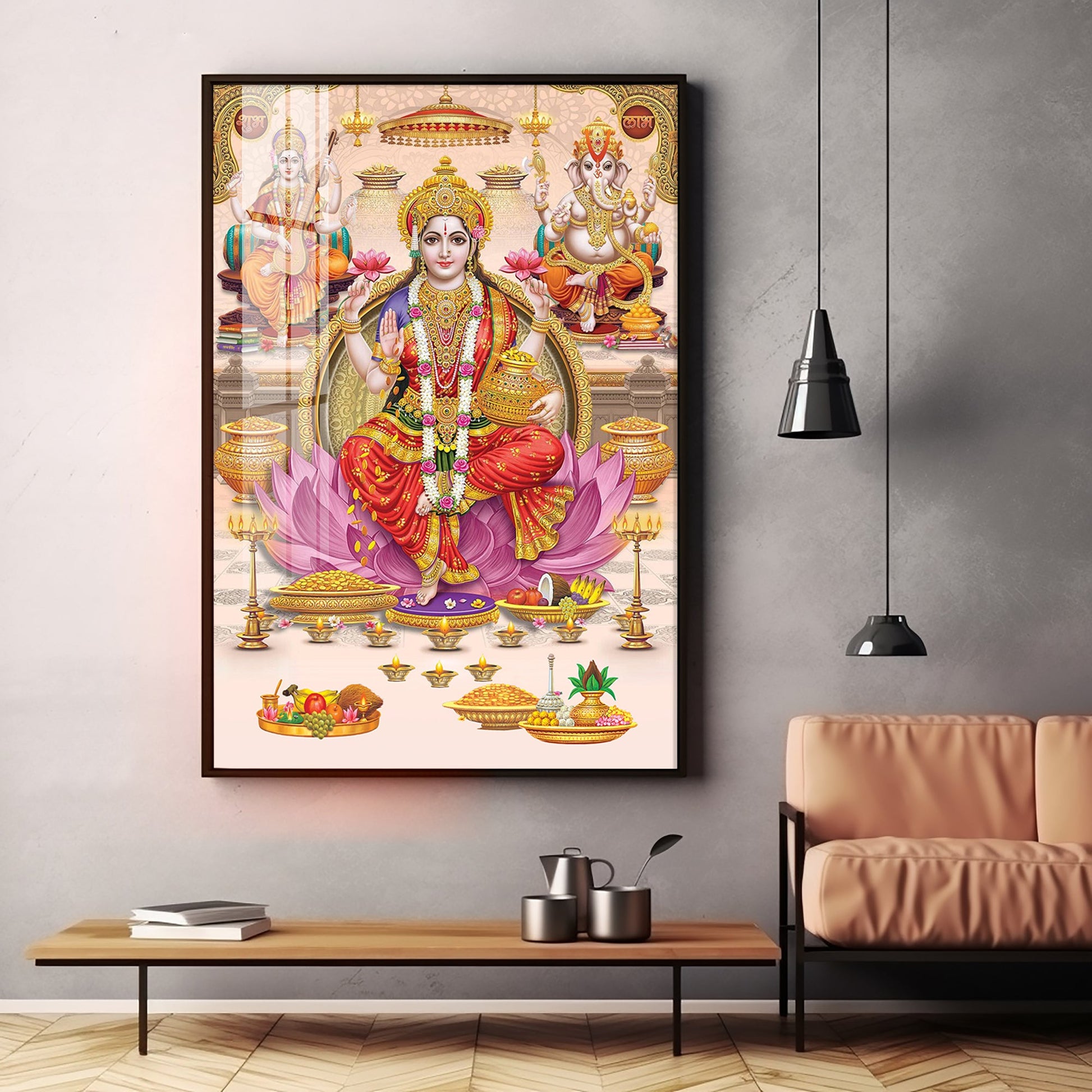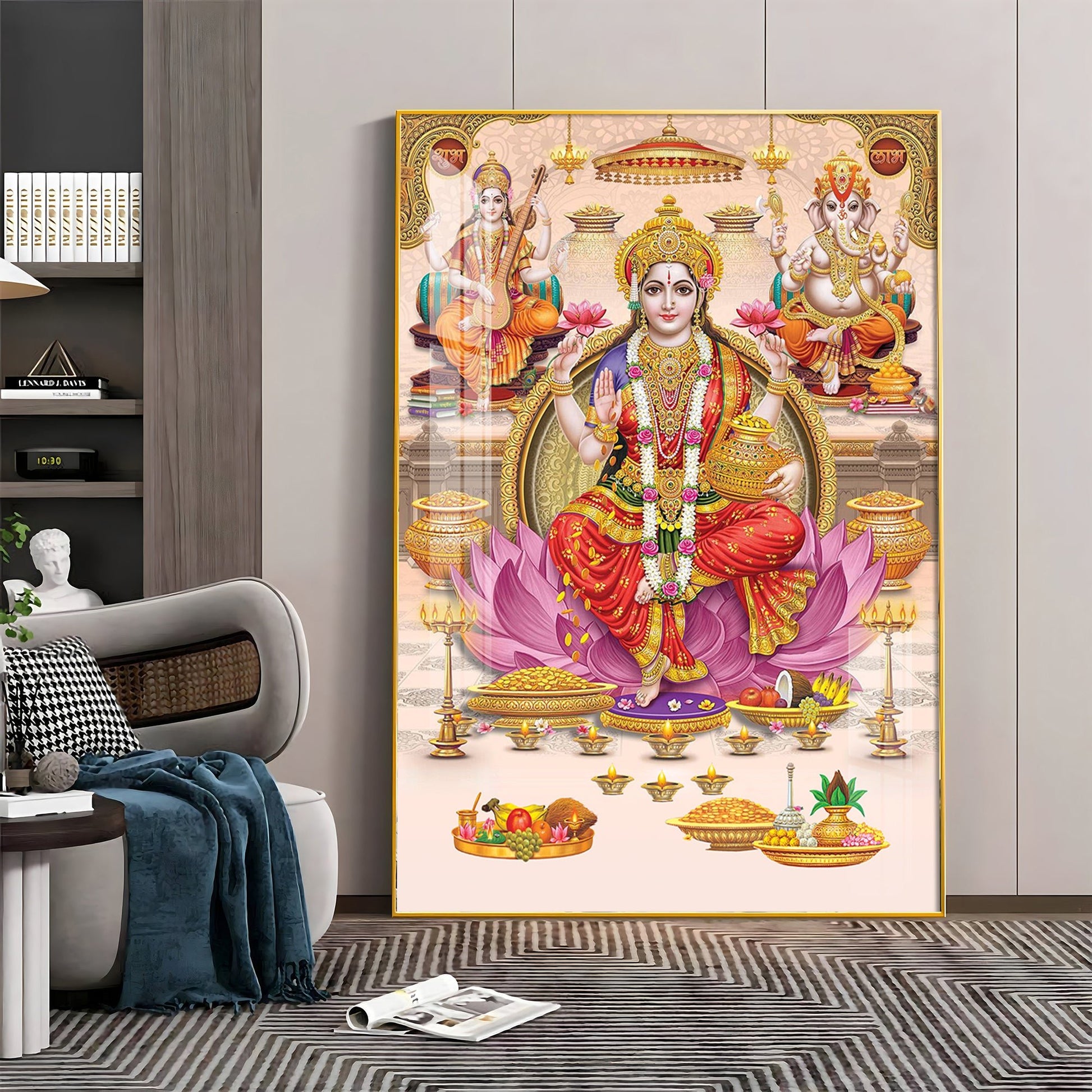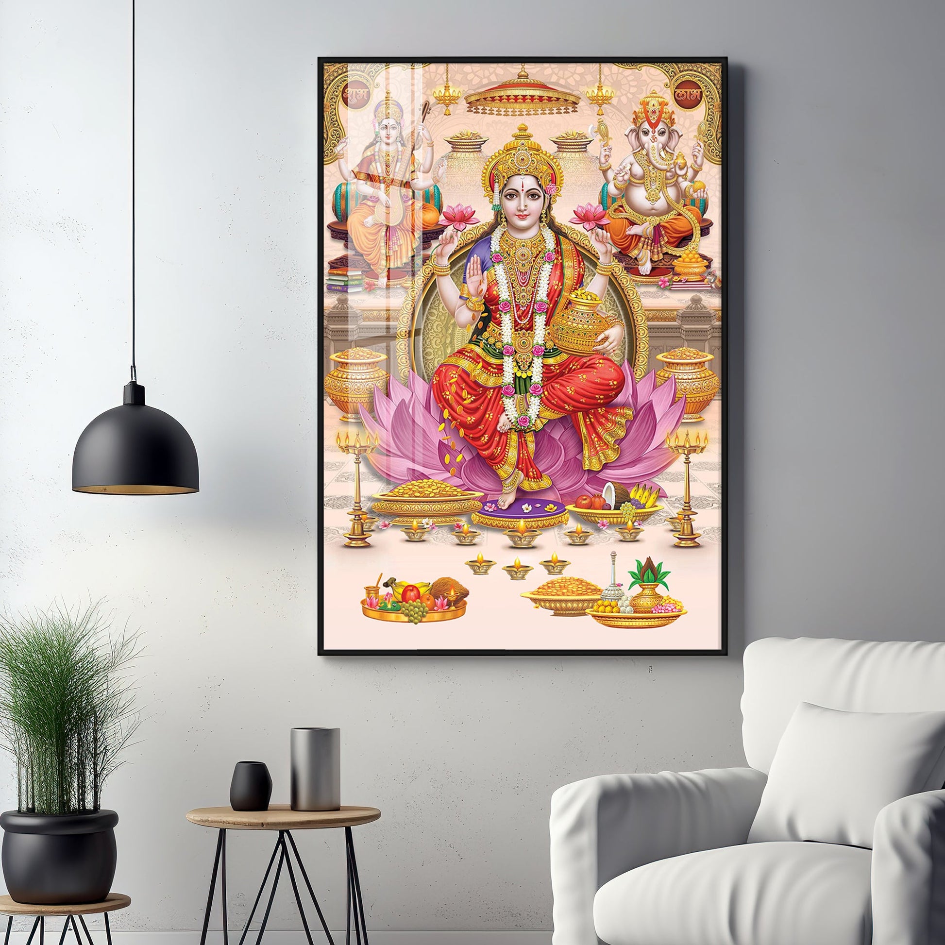 Goddess Maha Laxmi Ji On Kamala Premium Acrylic Vertical Wall Art