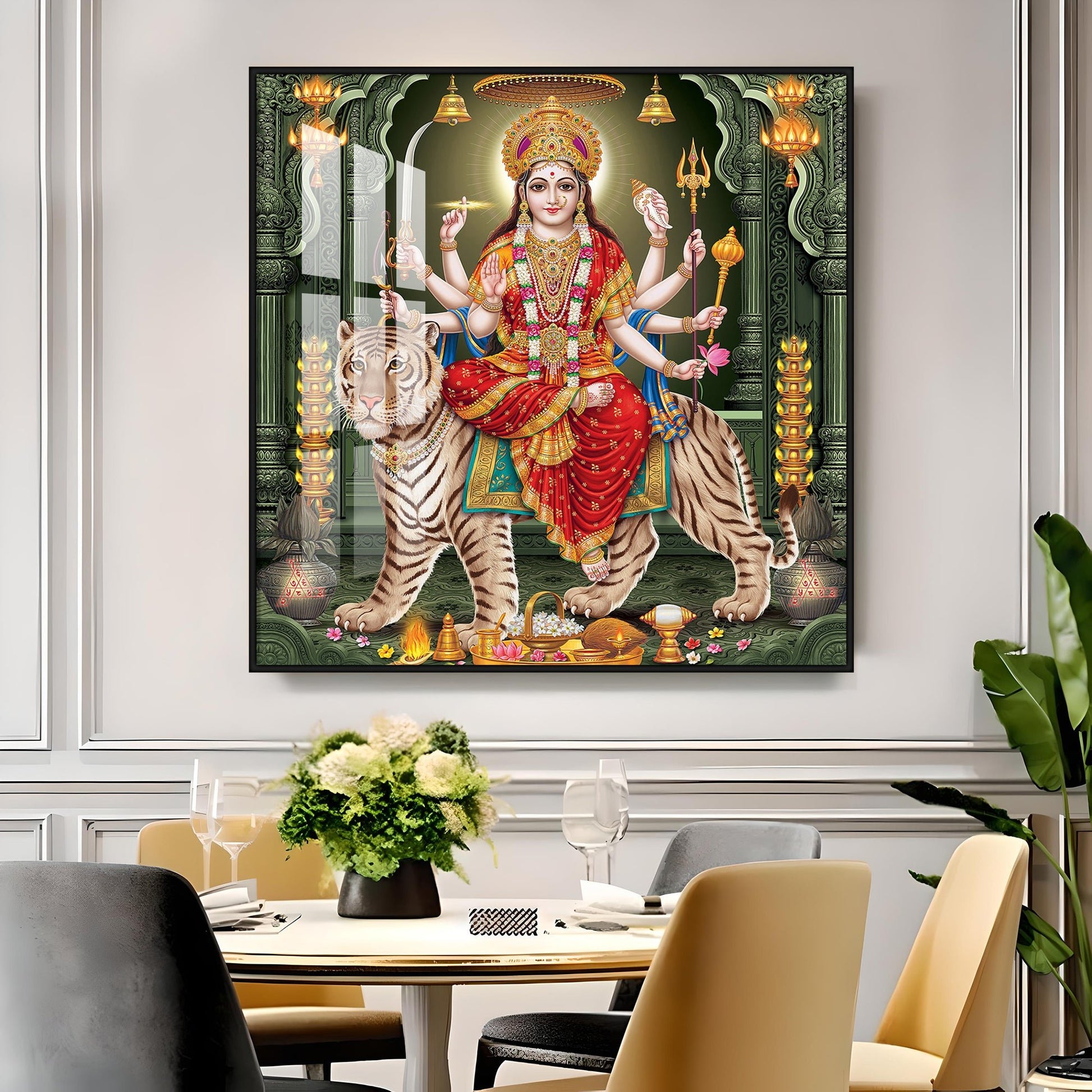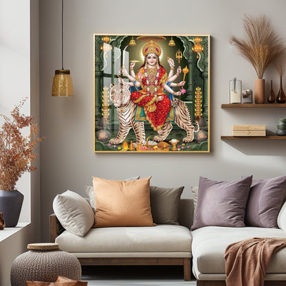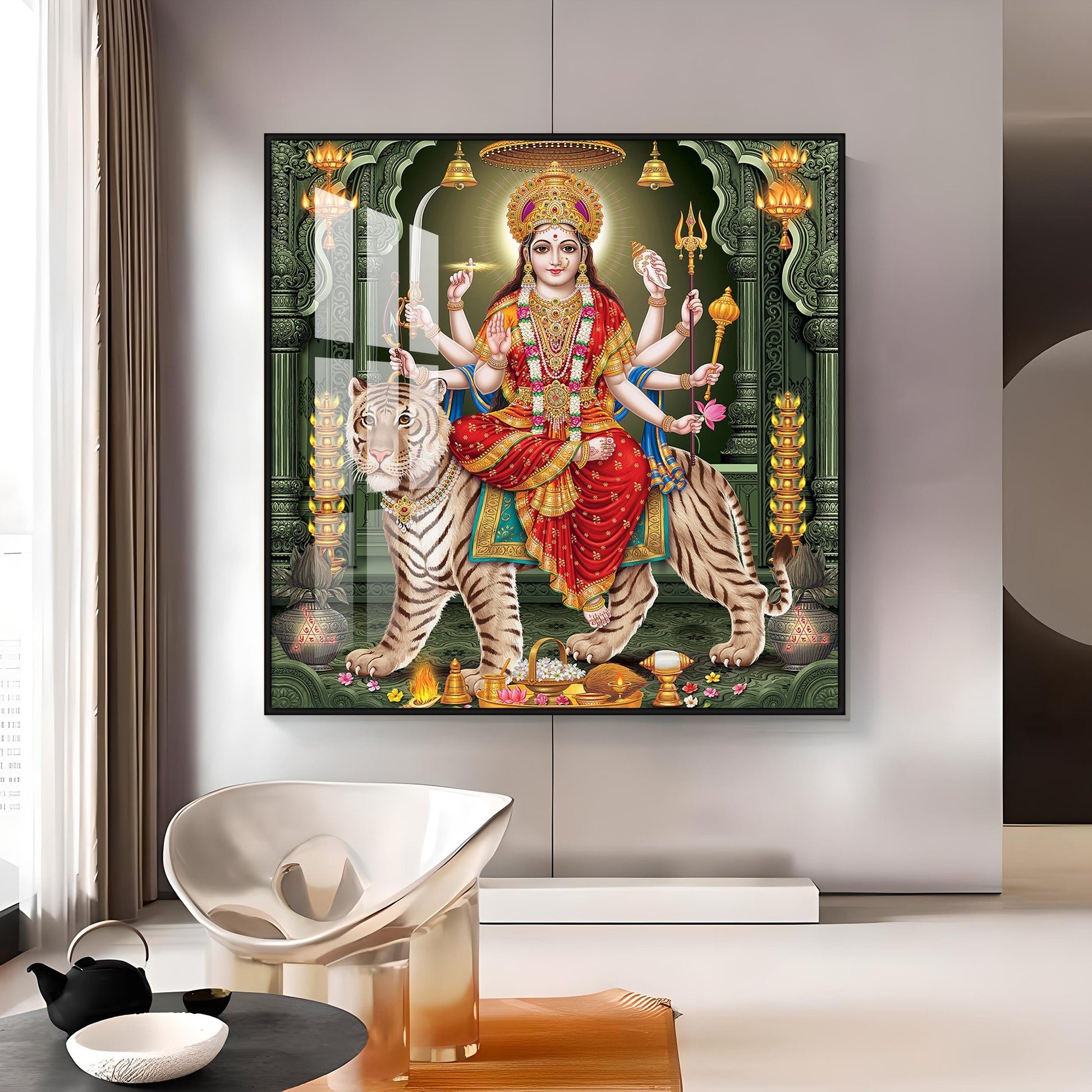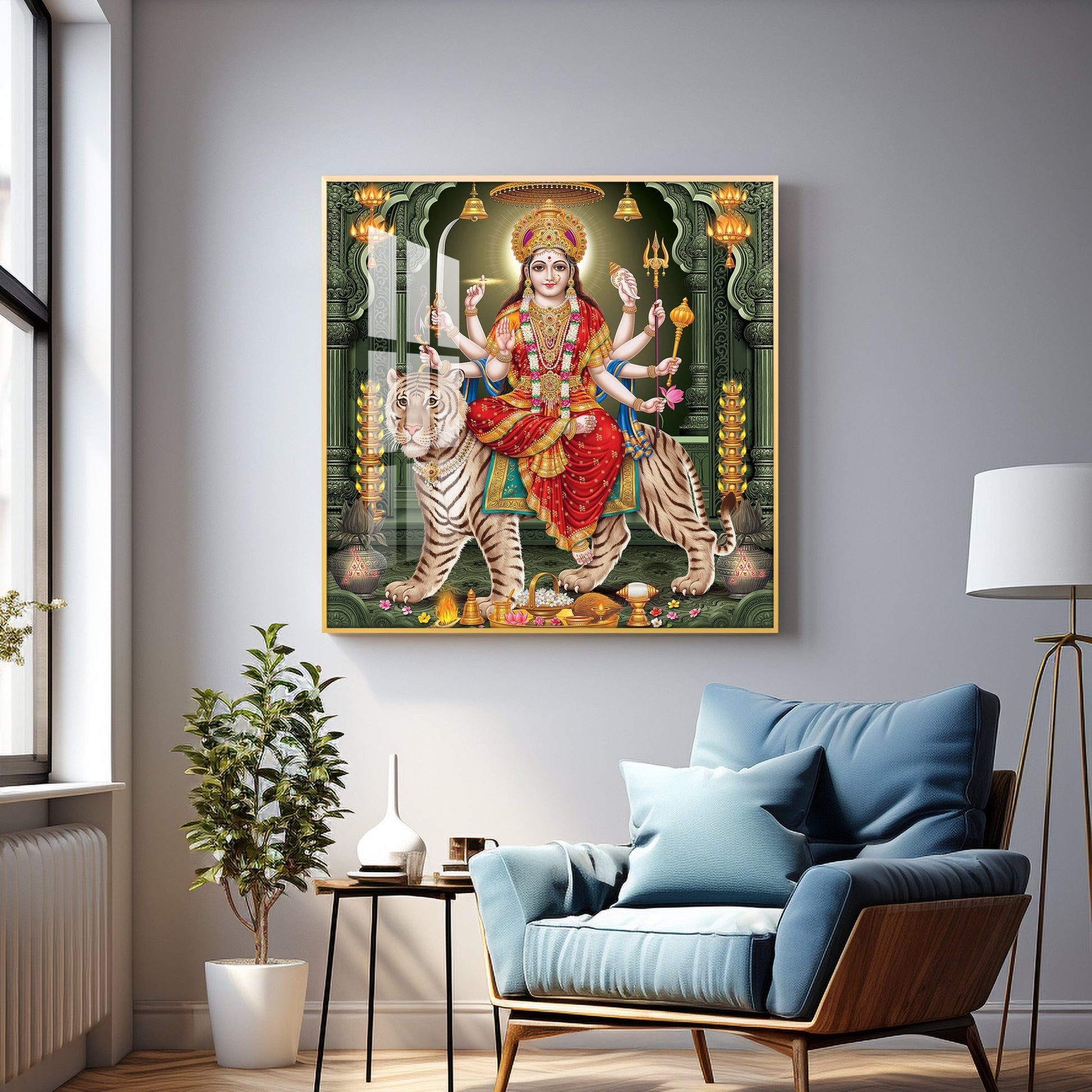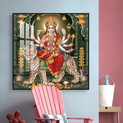 Goddess on Tiger Premium Acrylic Square Wall Art