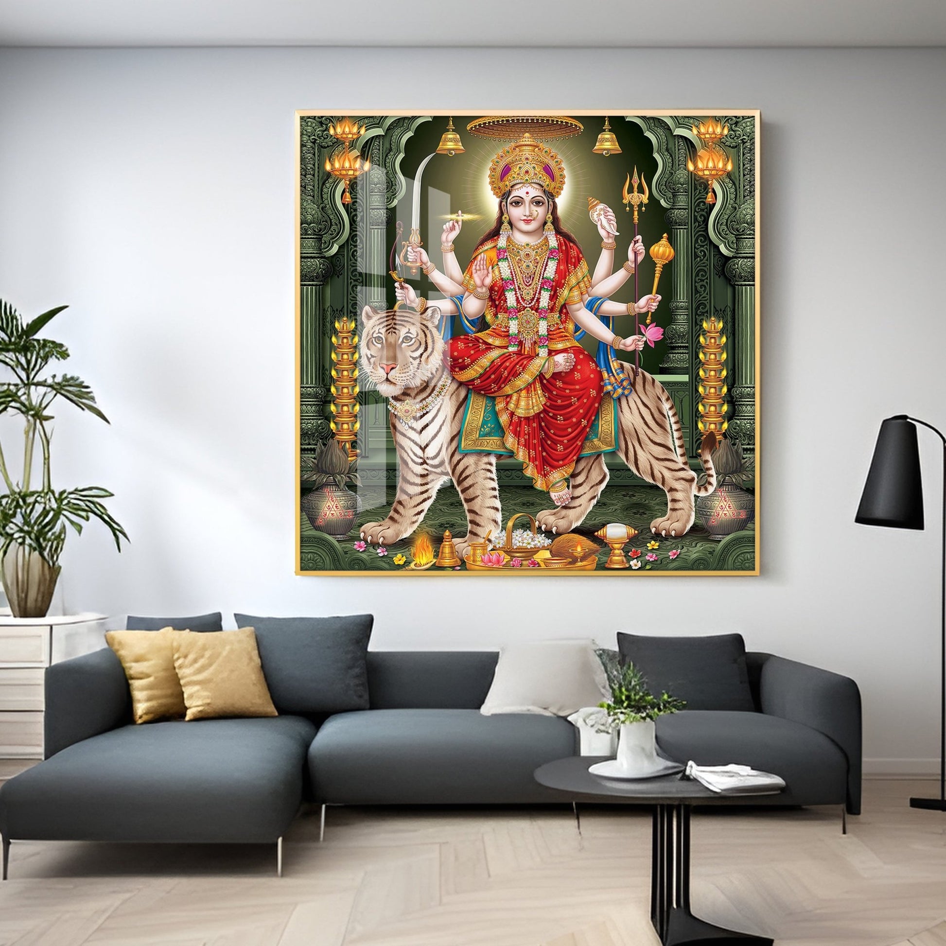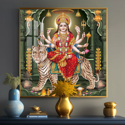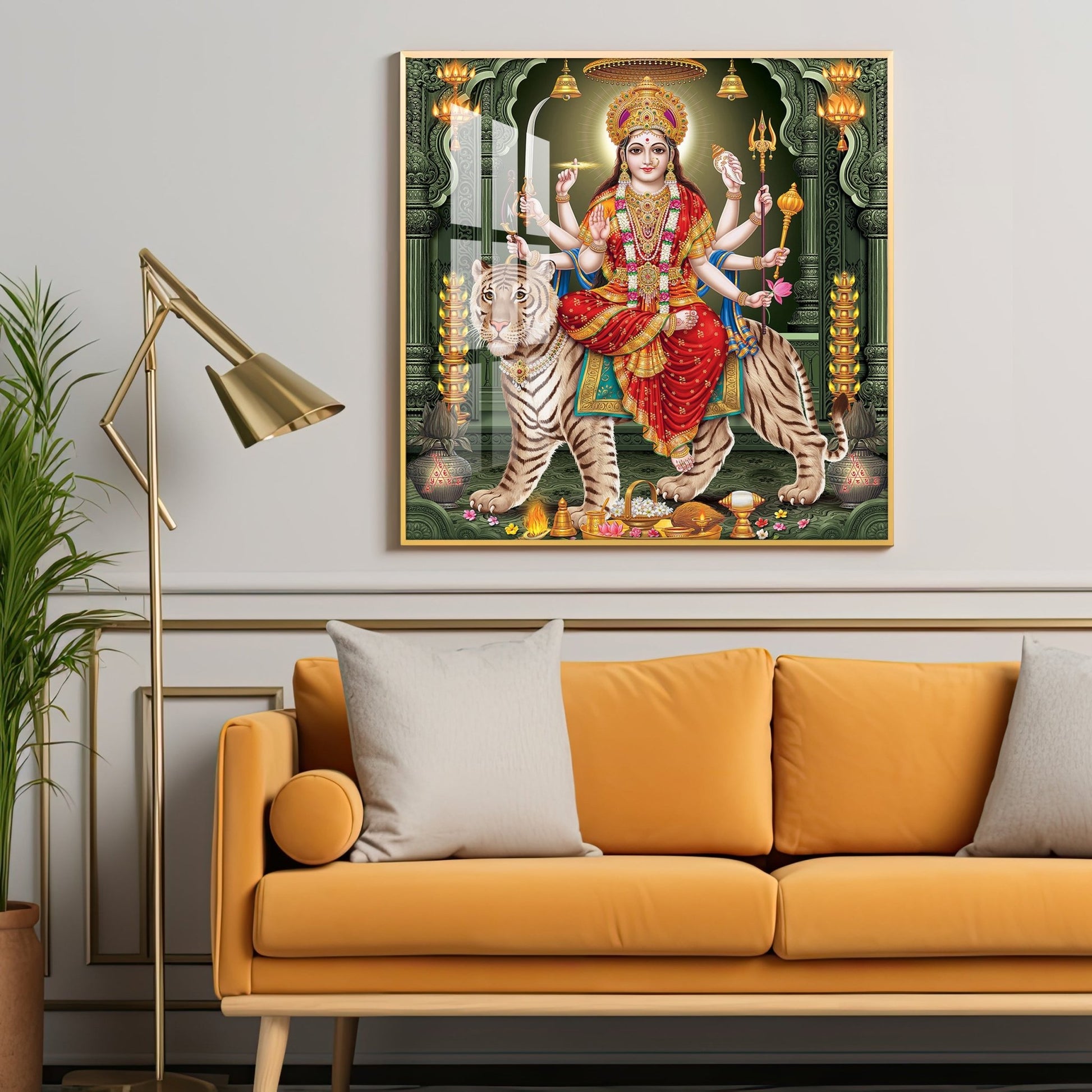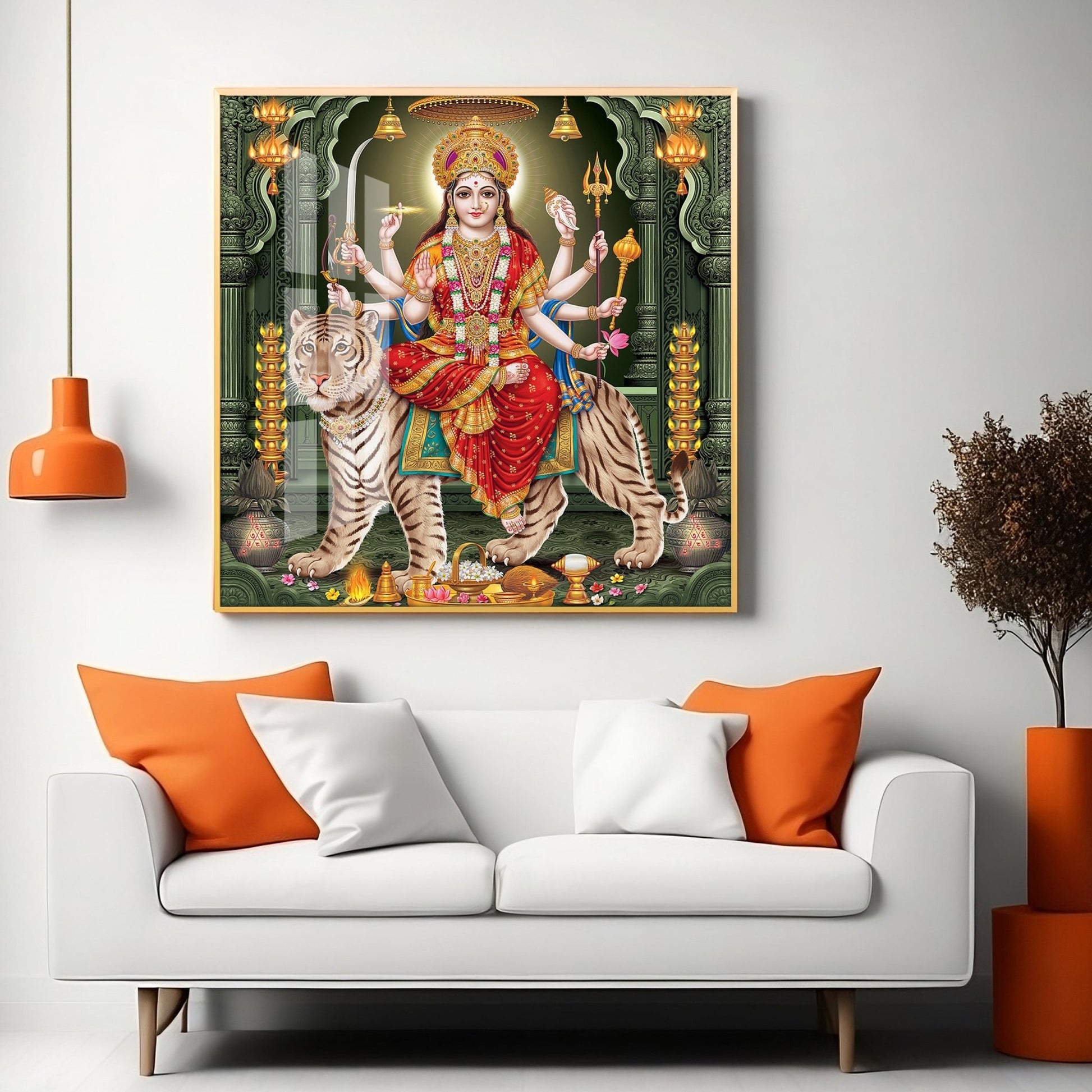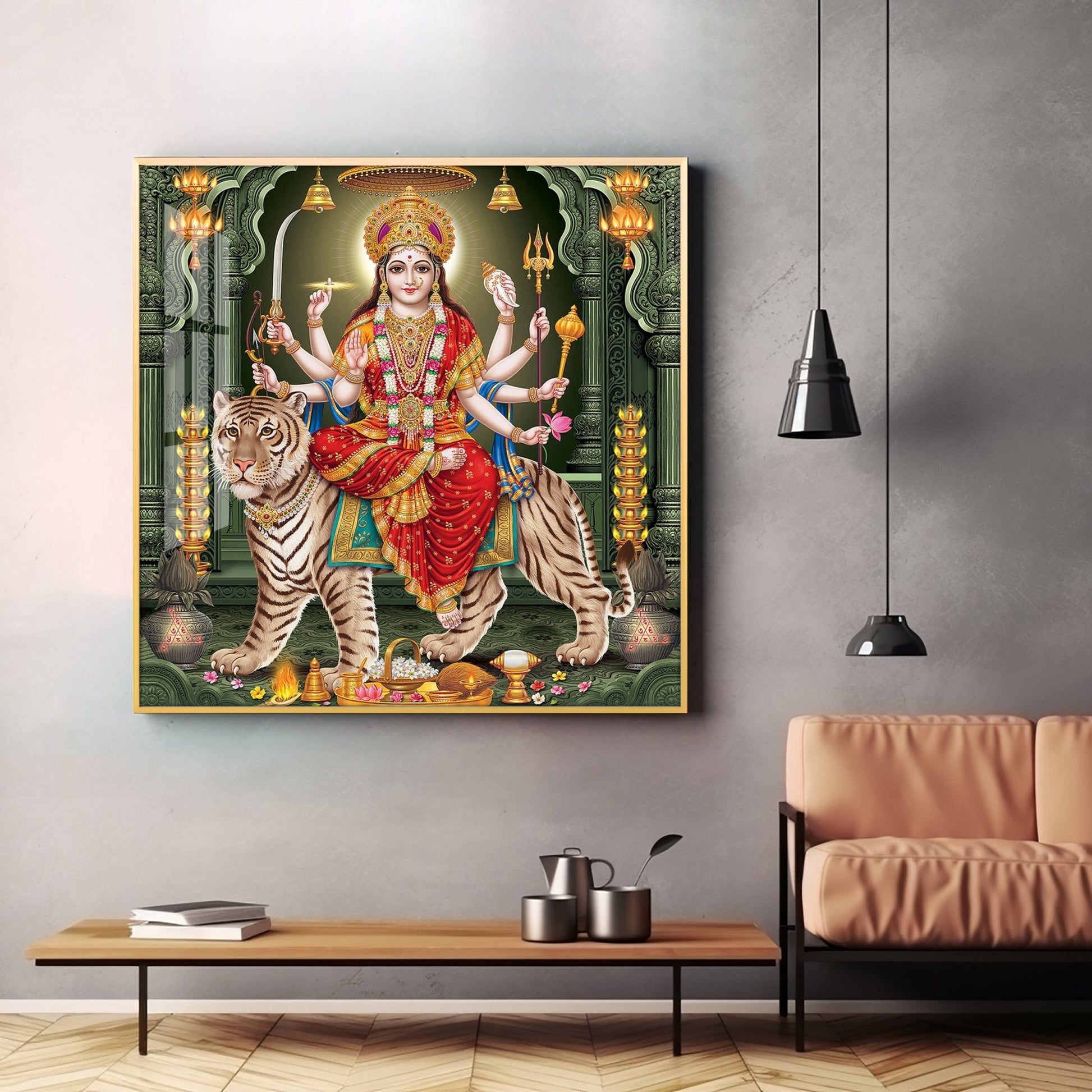 Goddess on Tiger Premium Acrylic Square Wall Art