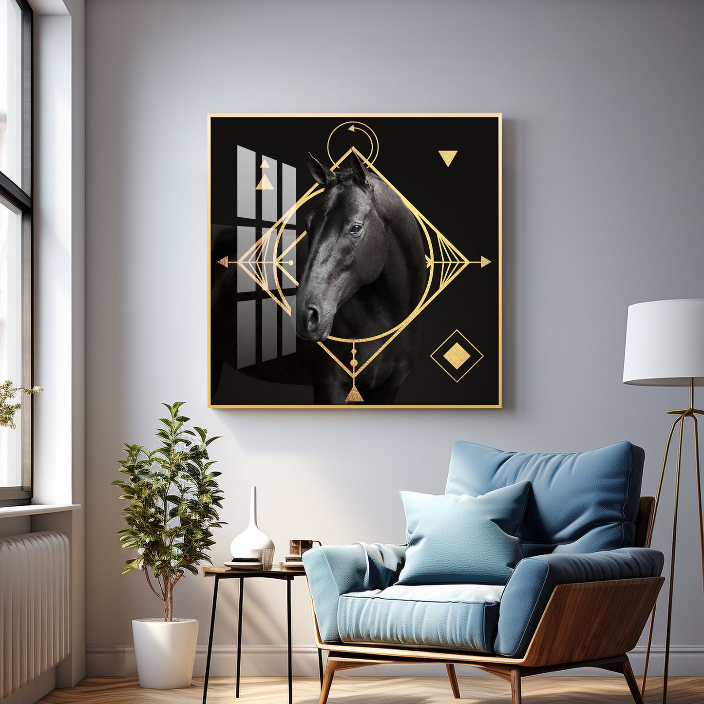 Gold Foil Horse Premium Acrylic Square Wall Art