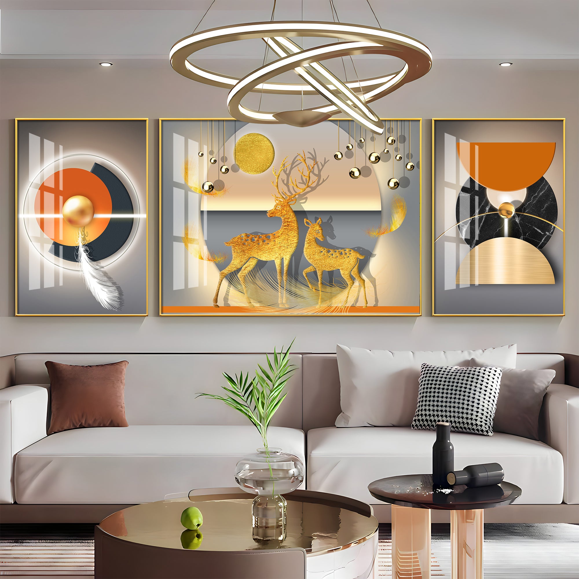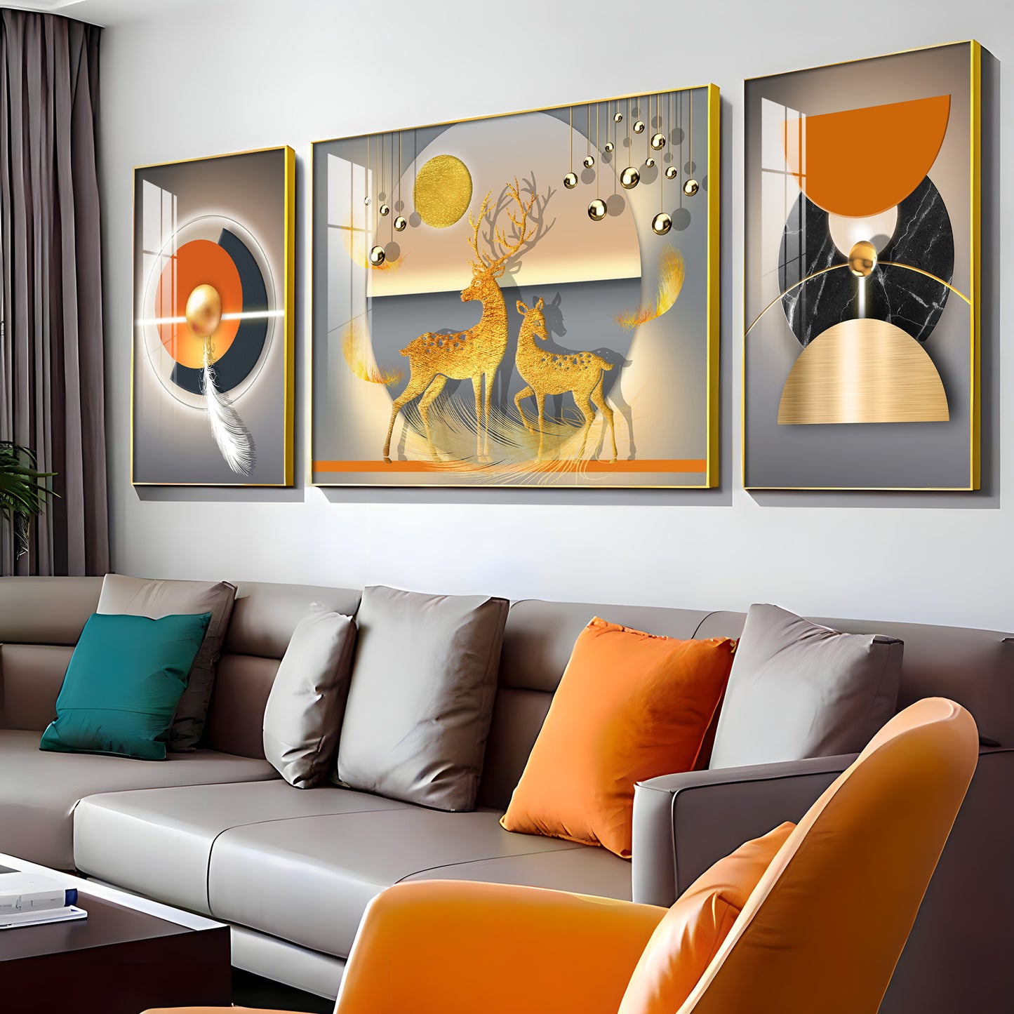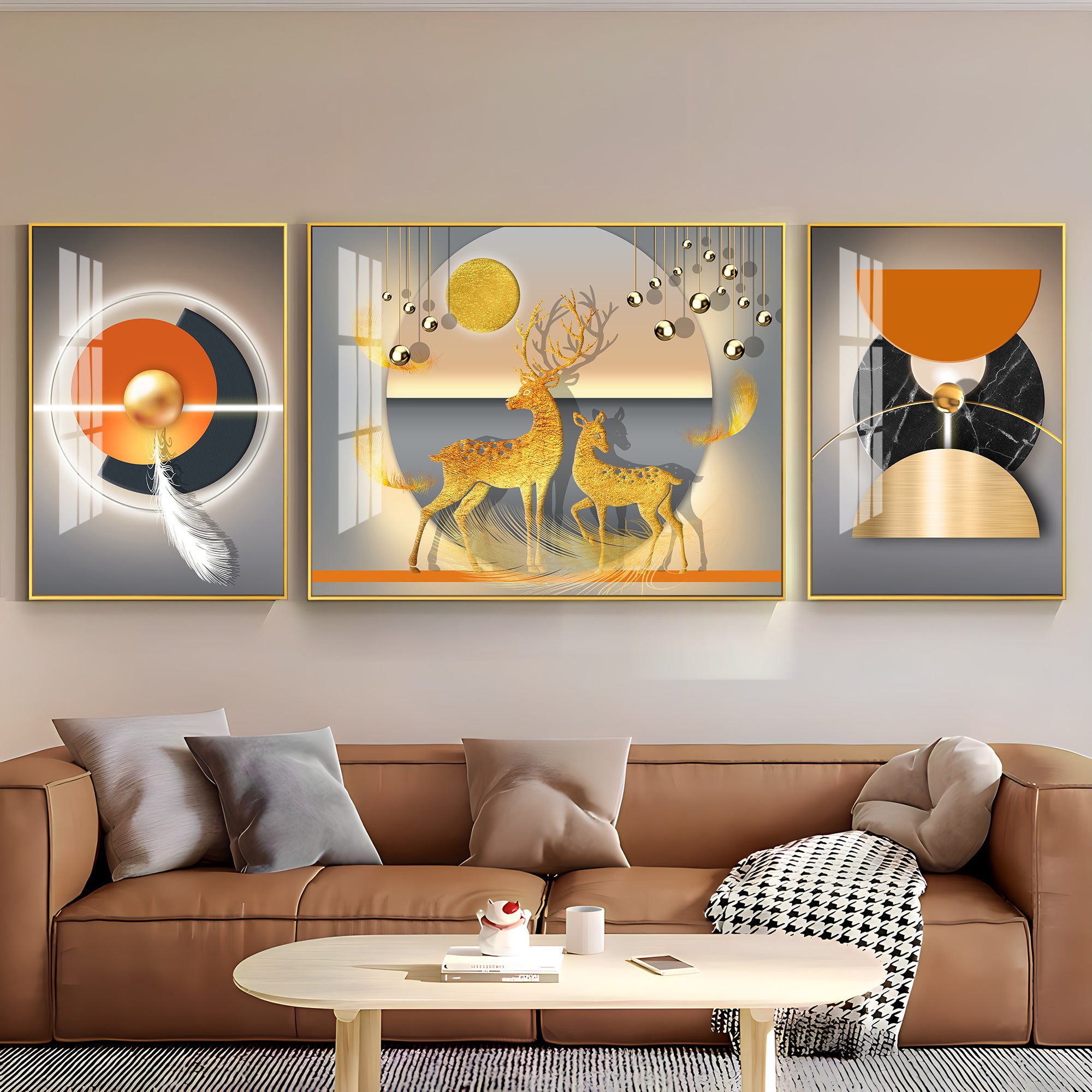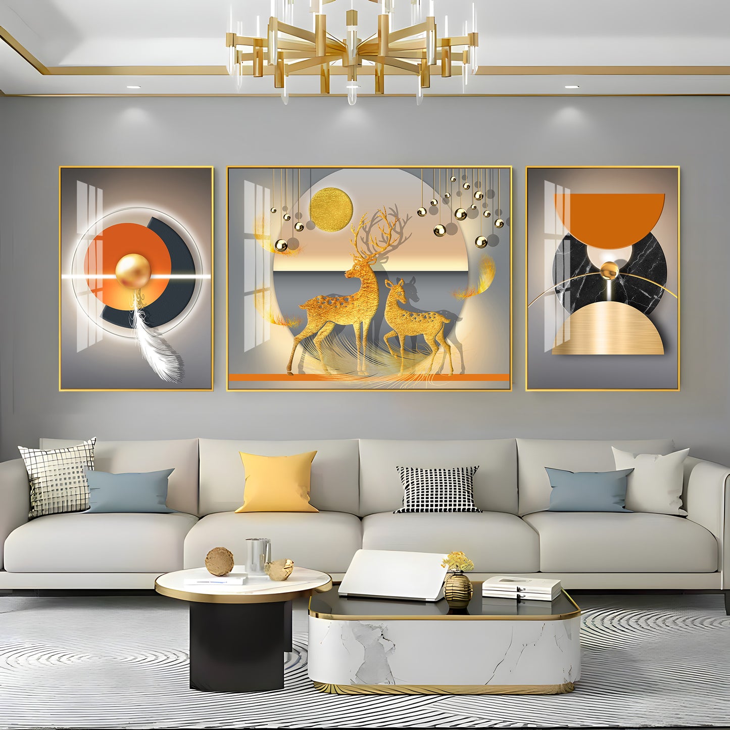 Golden Deers Premium Acrylic Wall Art (Set of 3)