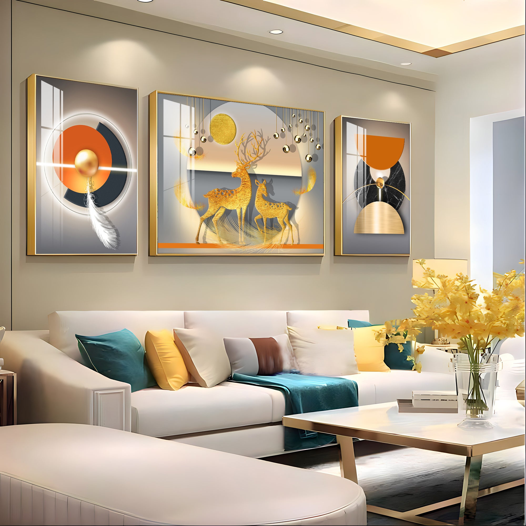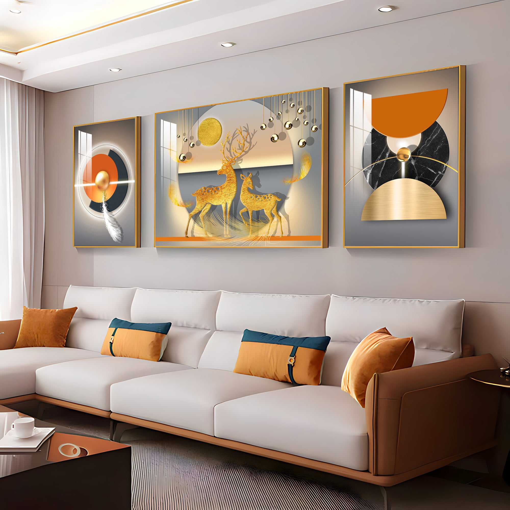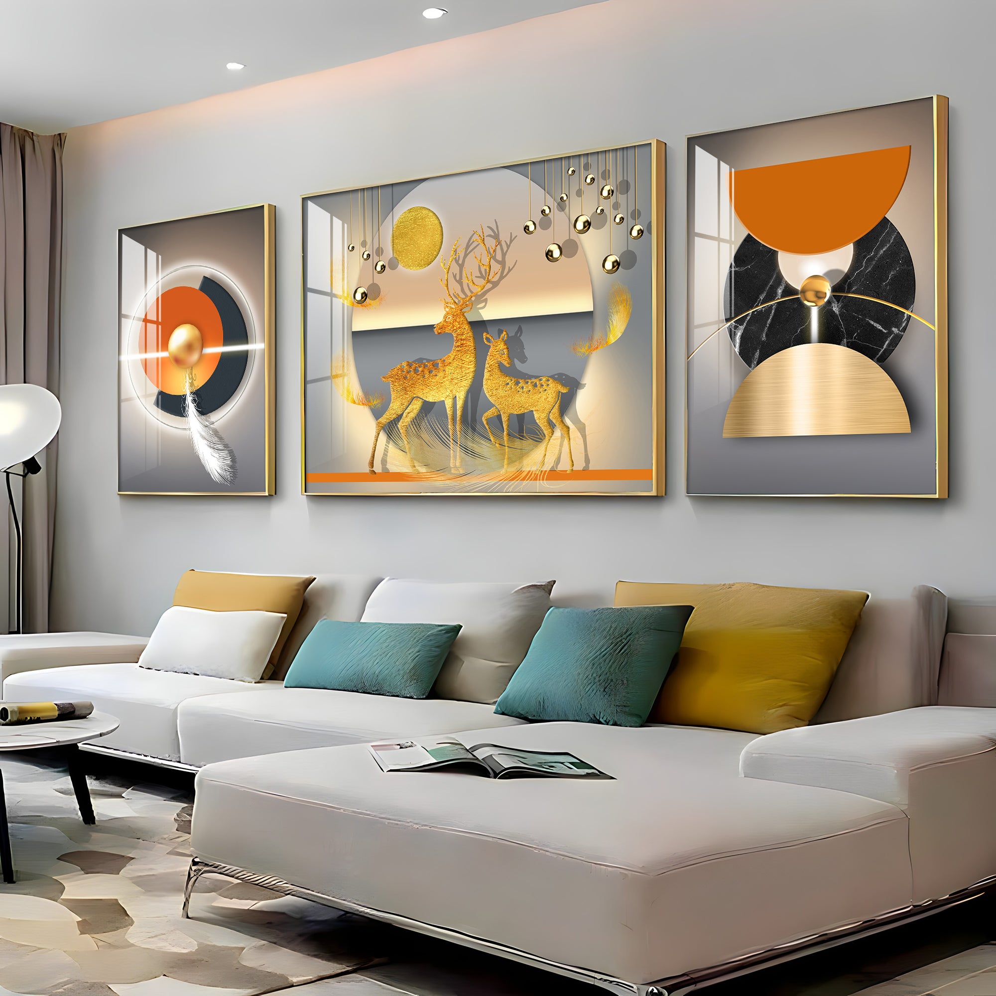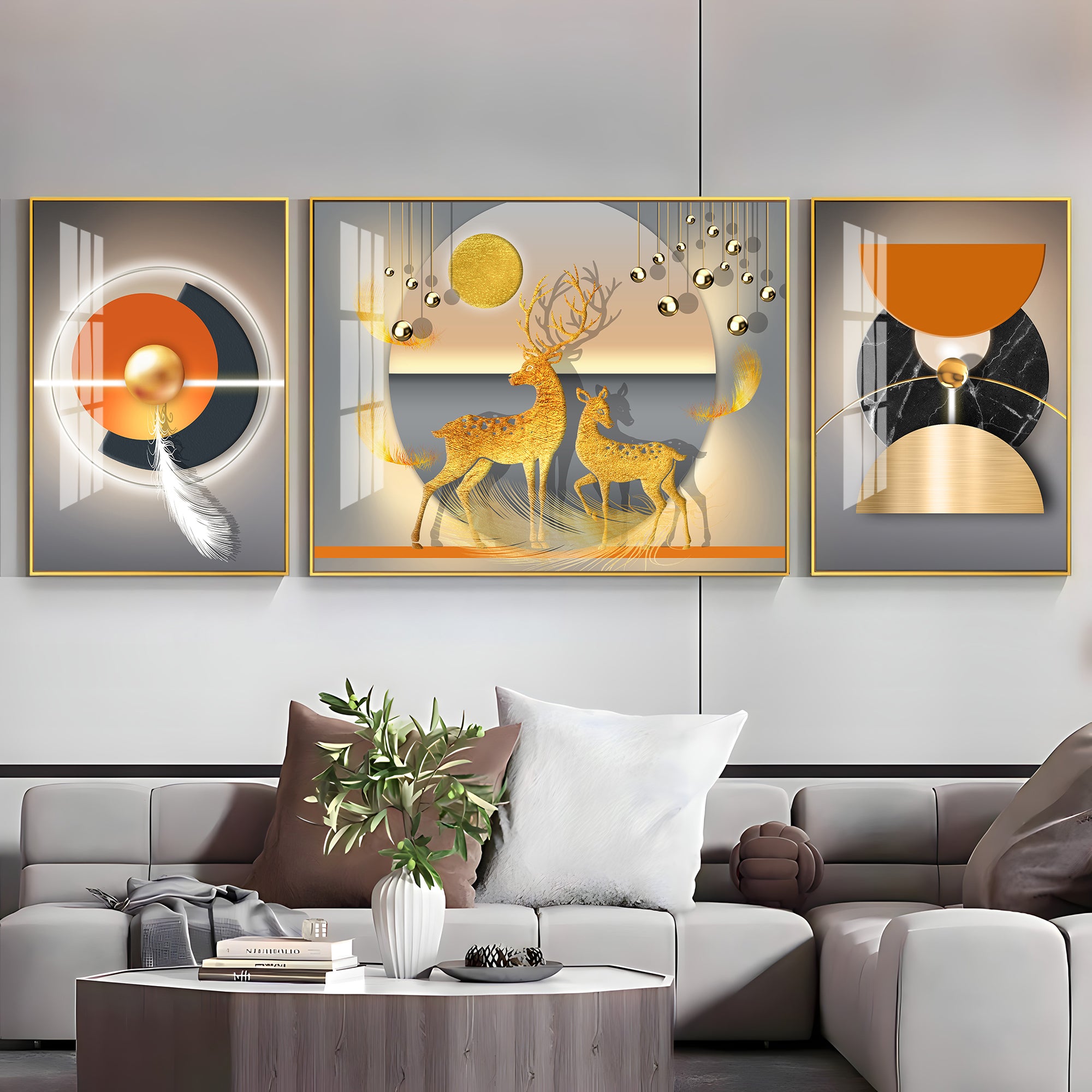 Golden Deers Premium Acrylic Wall Art (Set of 3)