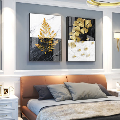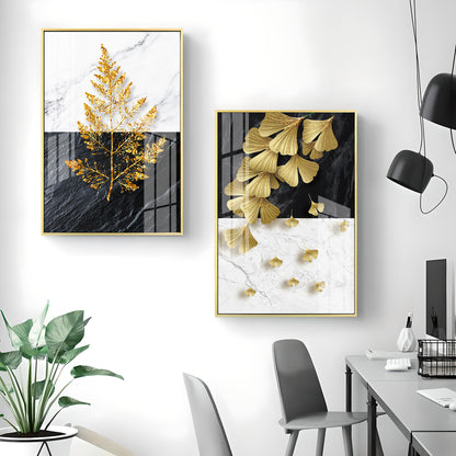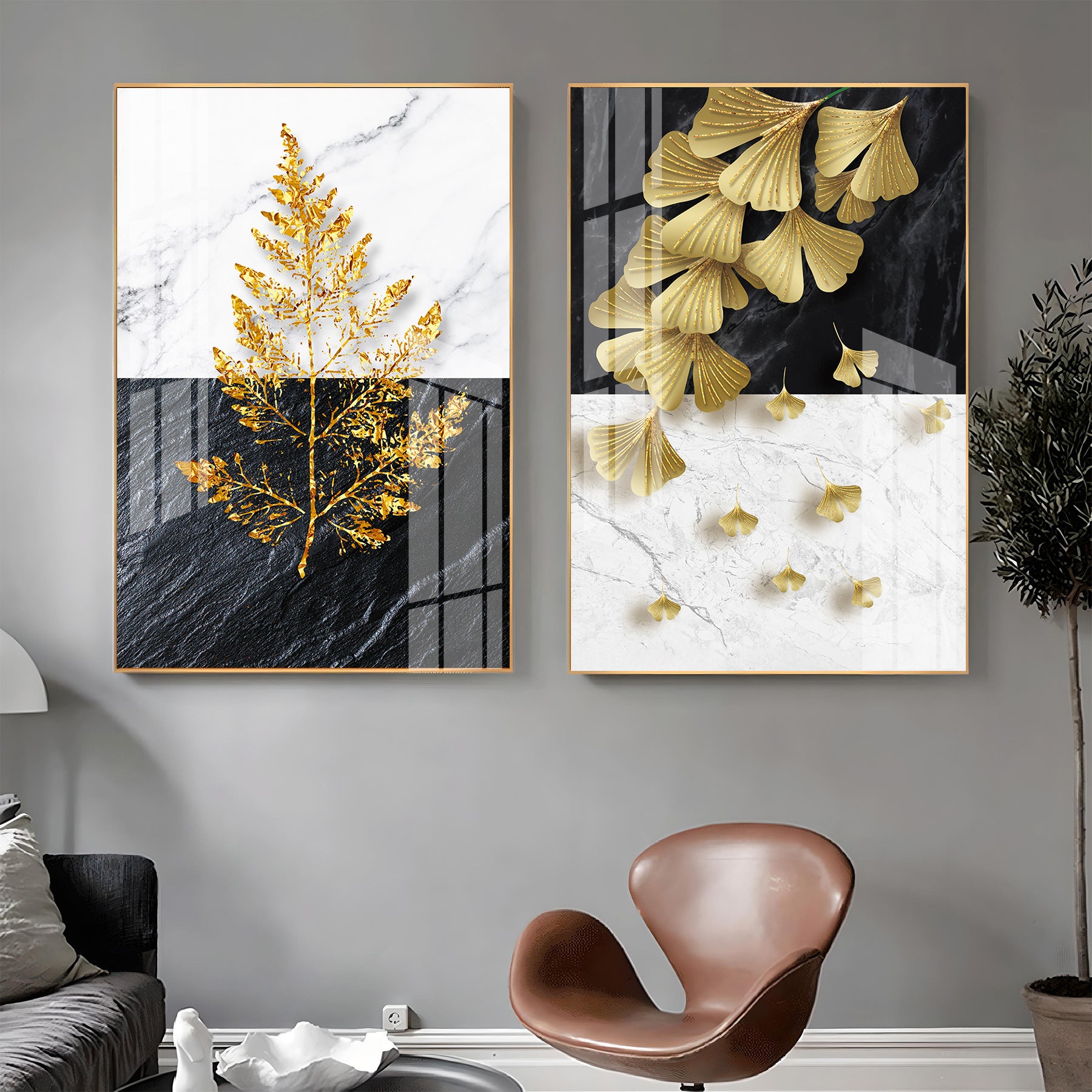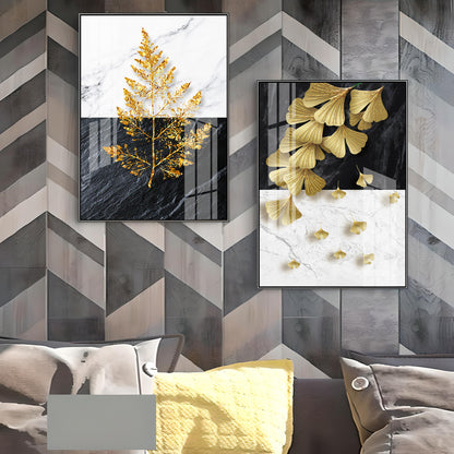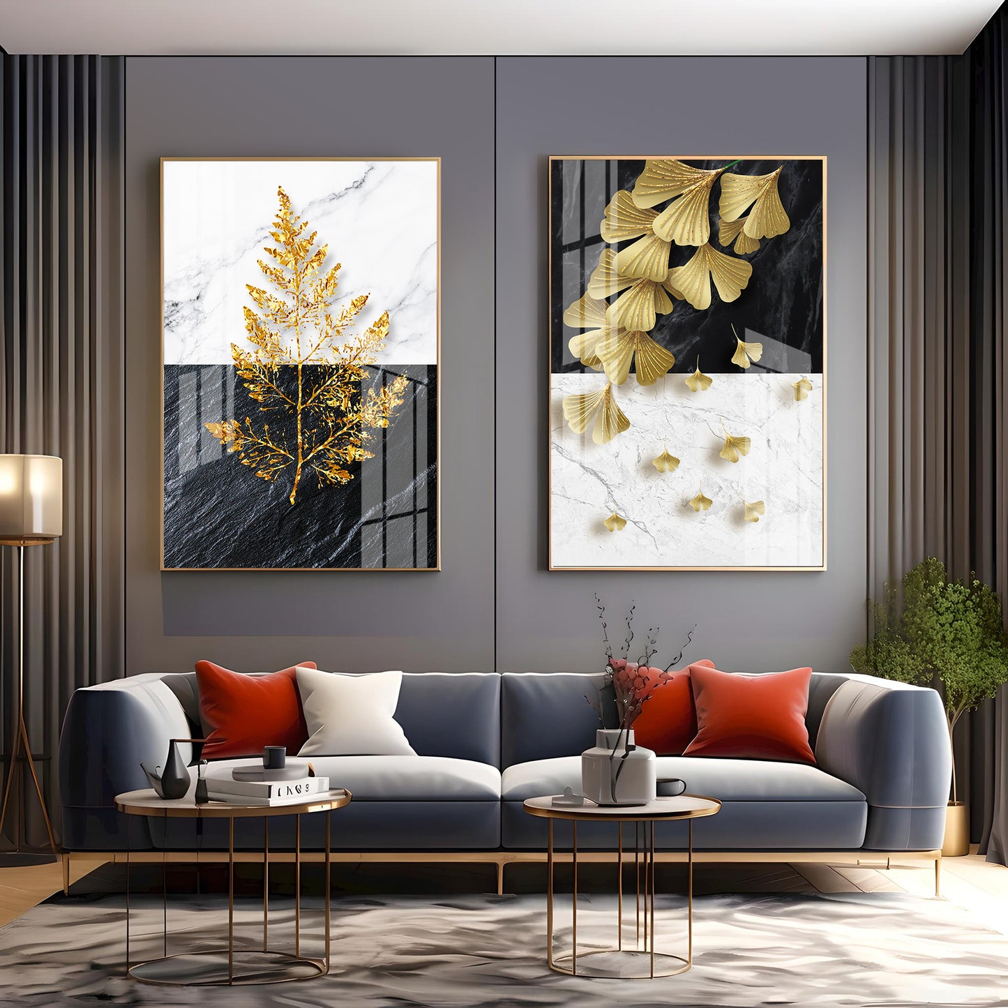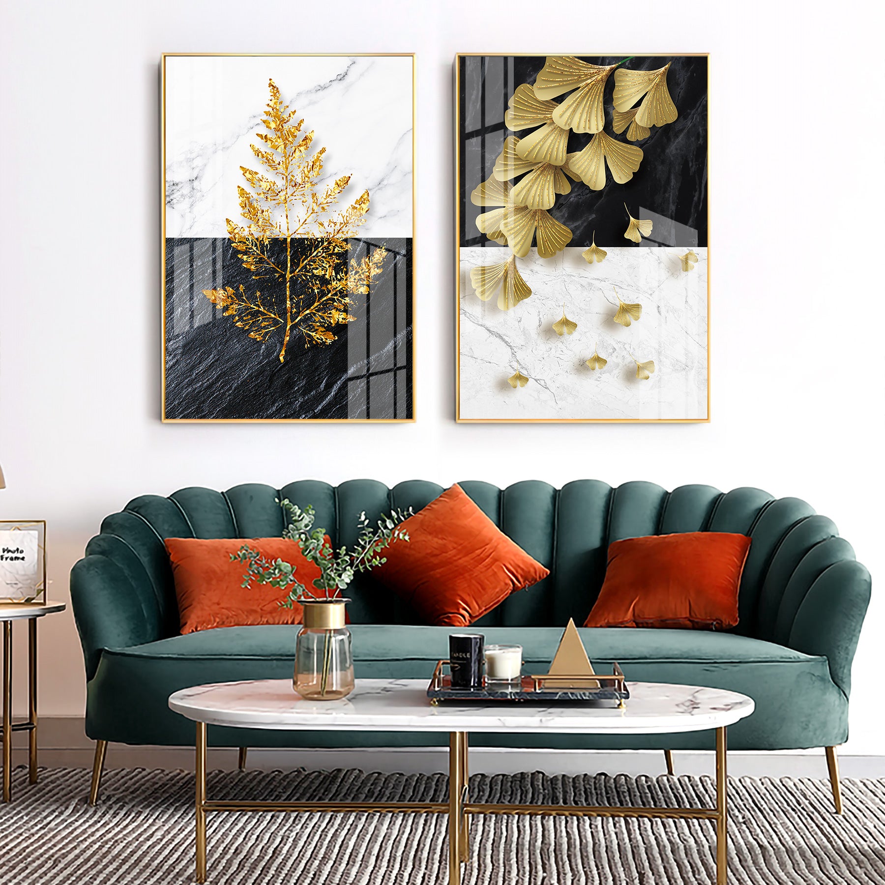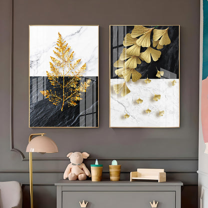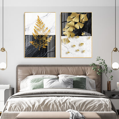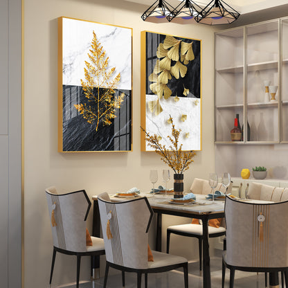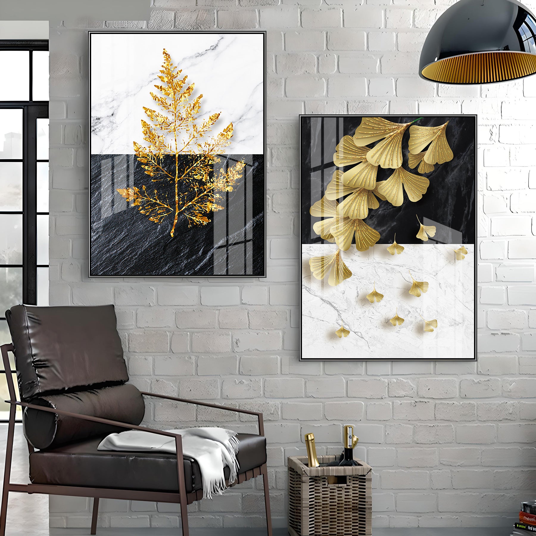 Golden Leaves In Abstract Art Premium Acrylic Vertical Wall Art (Set Of 2)