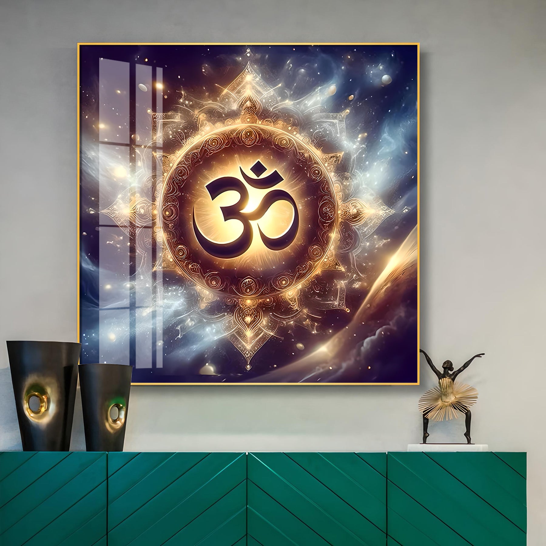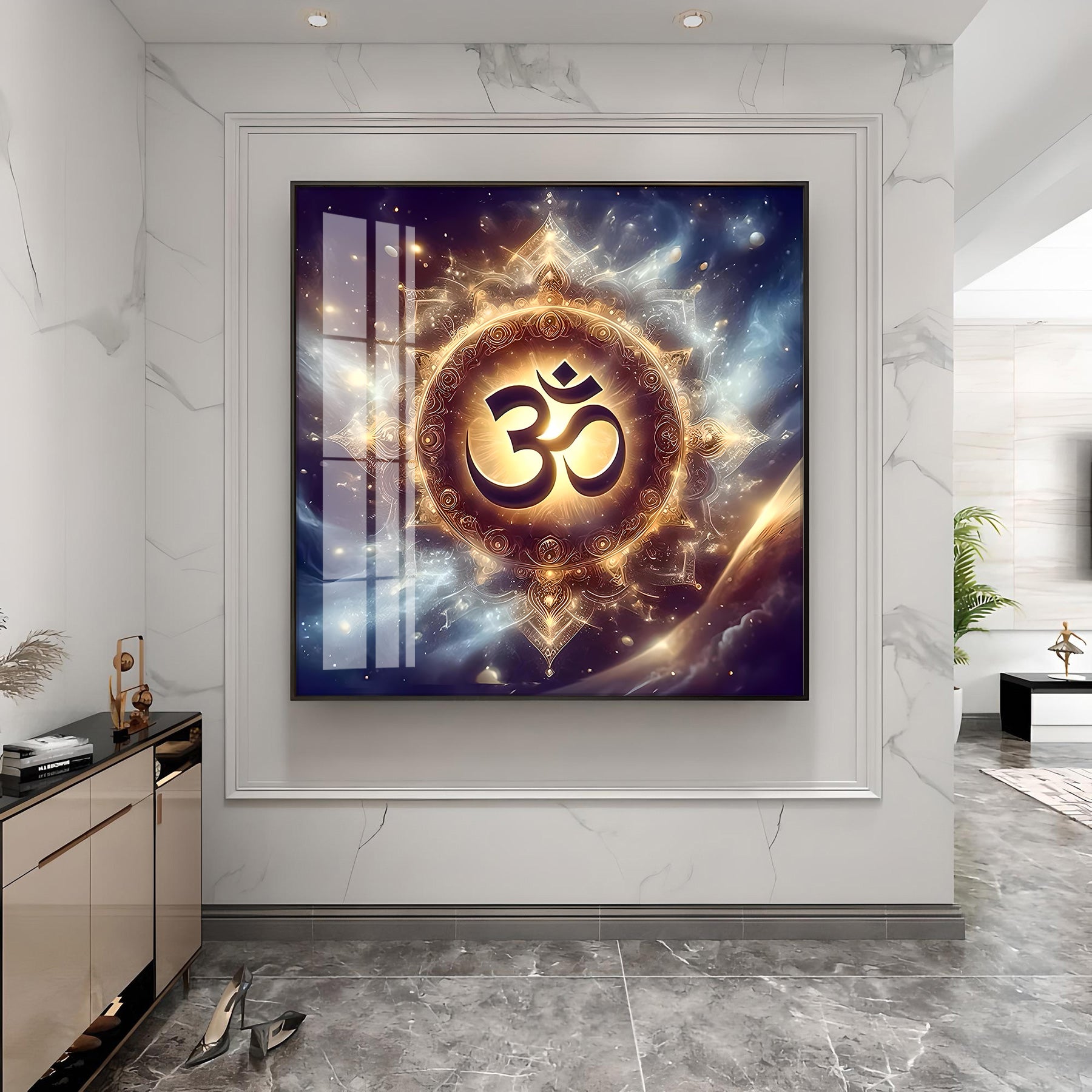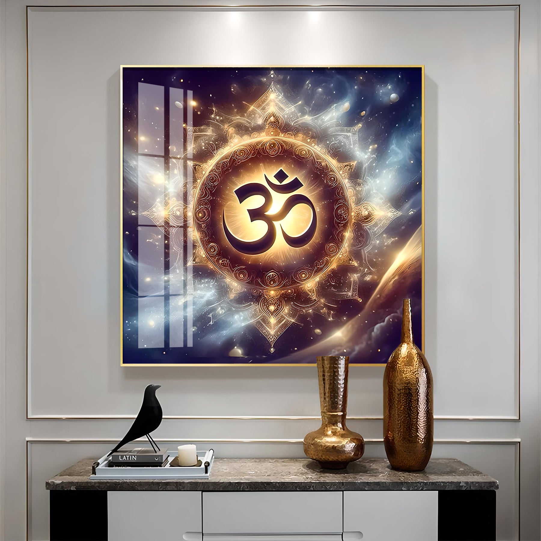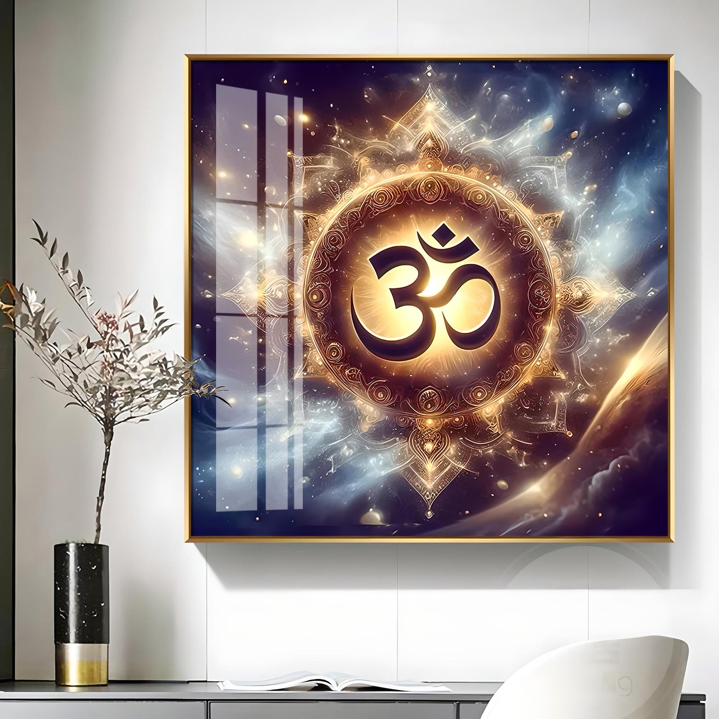 Golden Om Illumination Premium Acrylic Square Wall Art