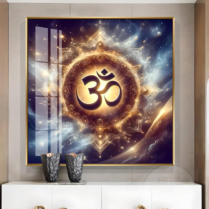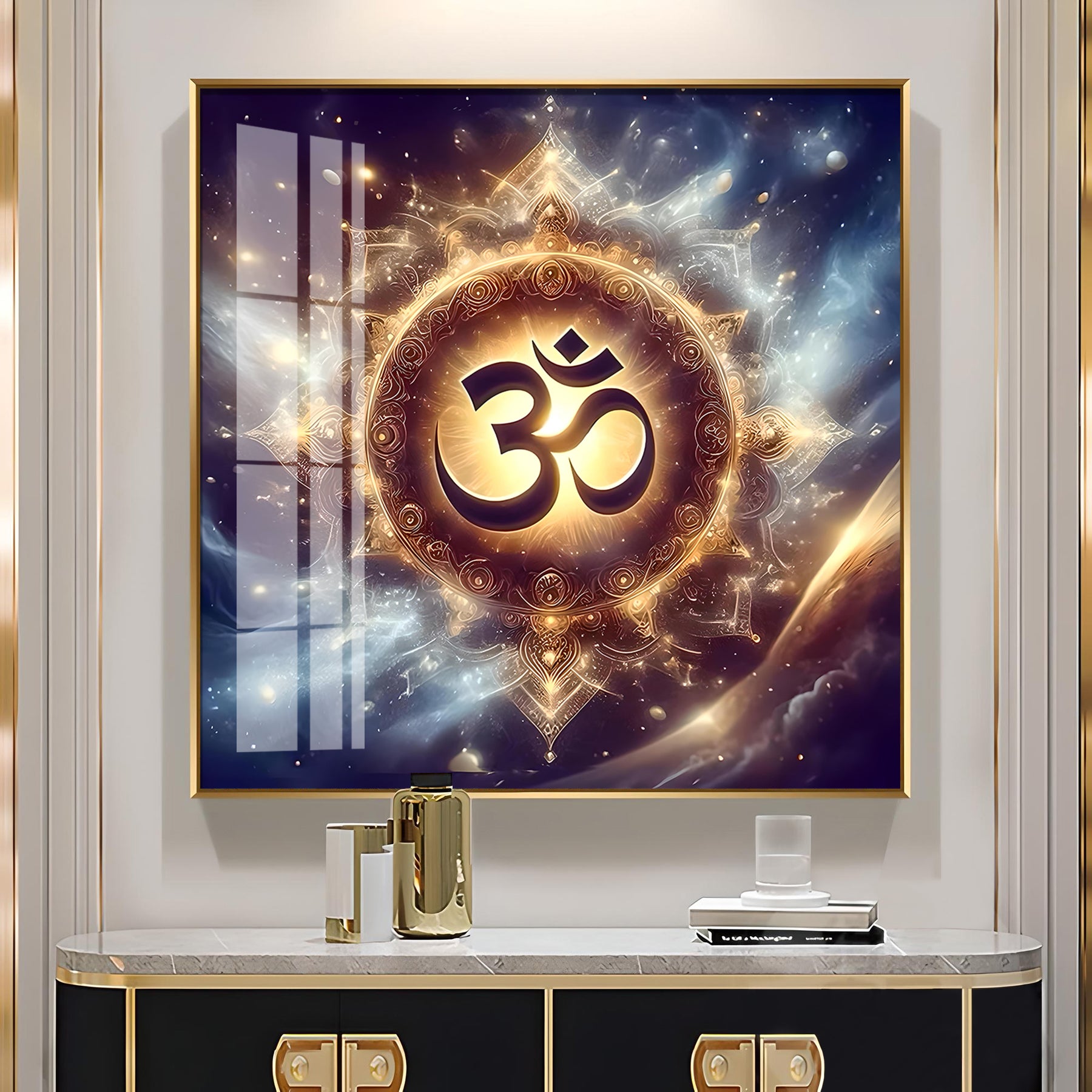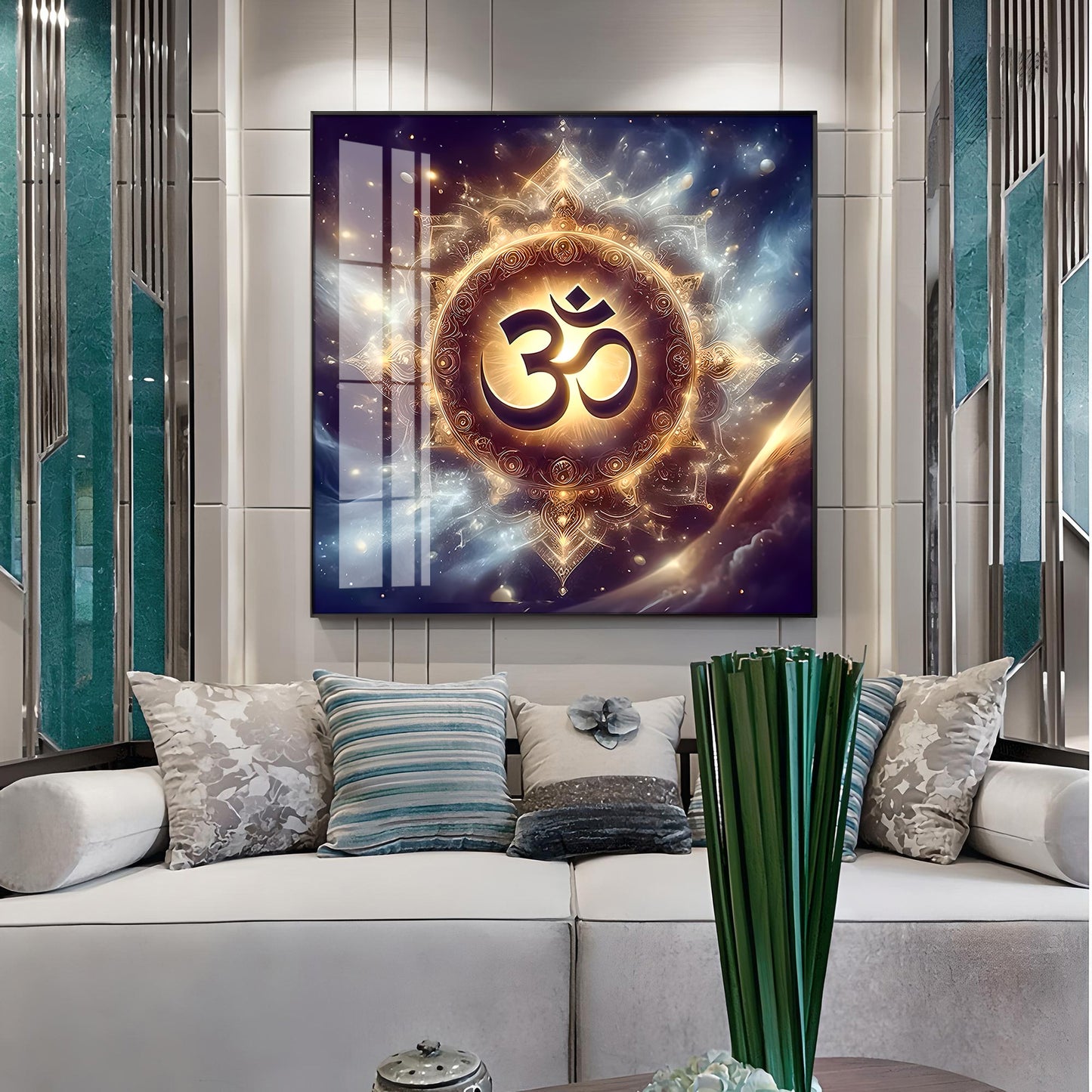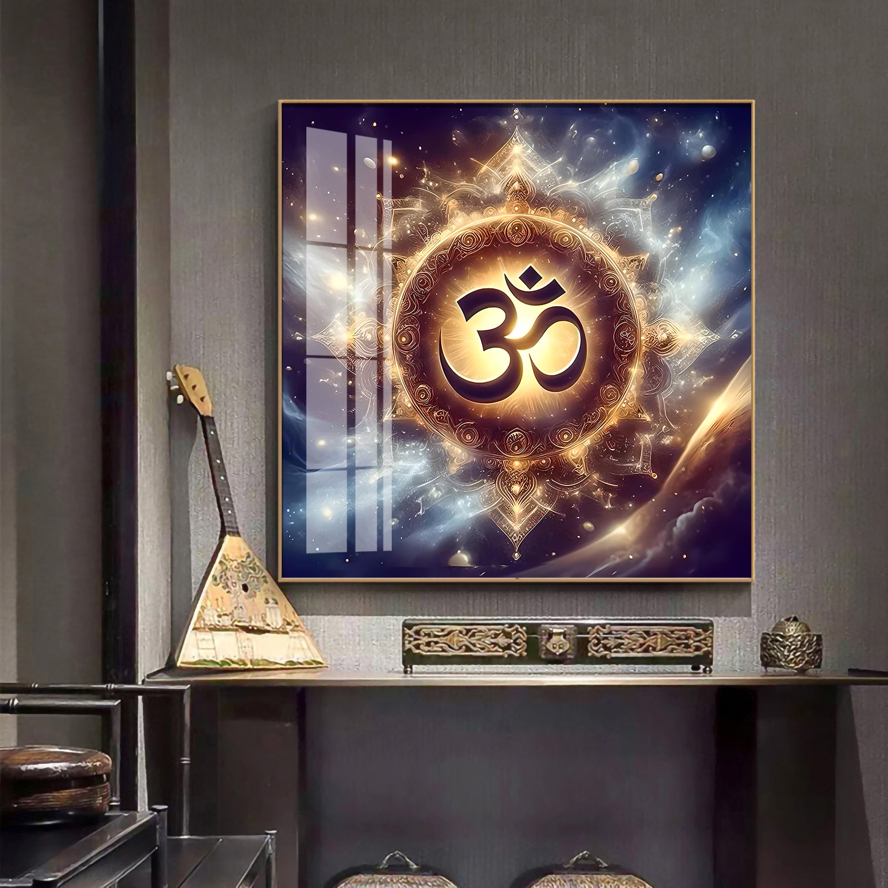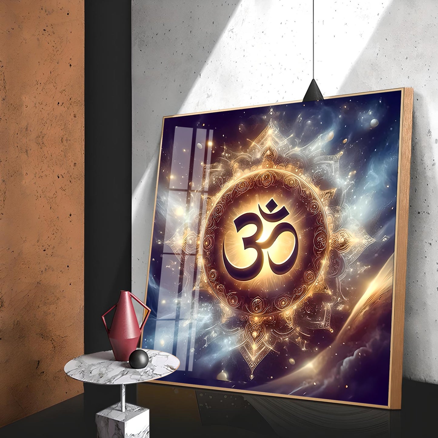 Golden Om Illumination Premium Acrylic Square Wall Art