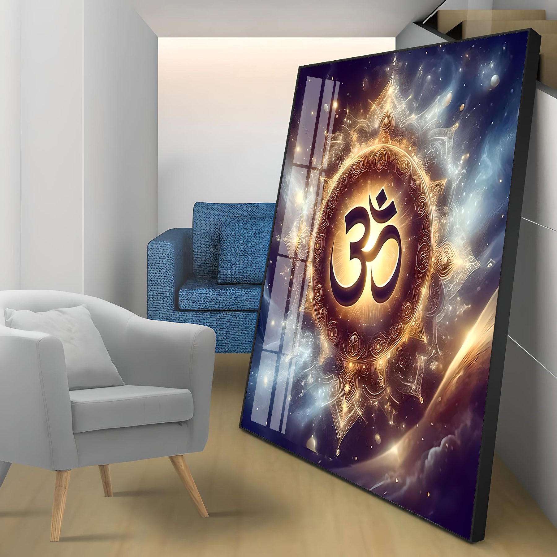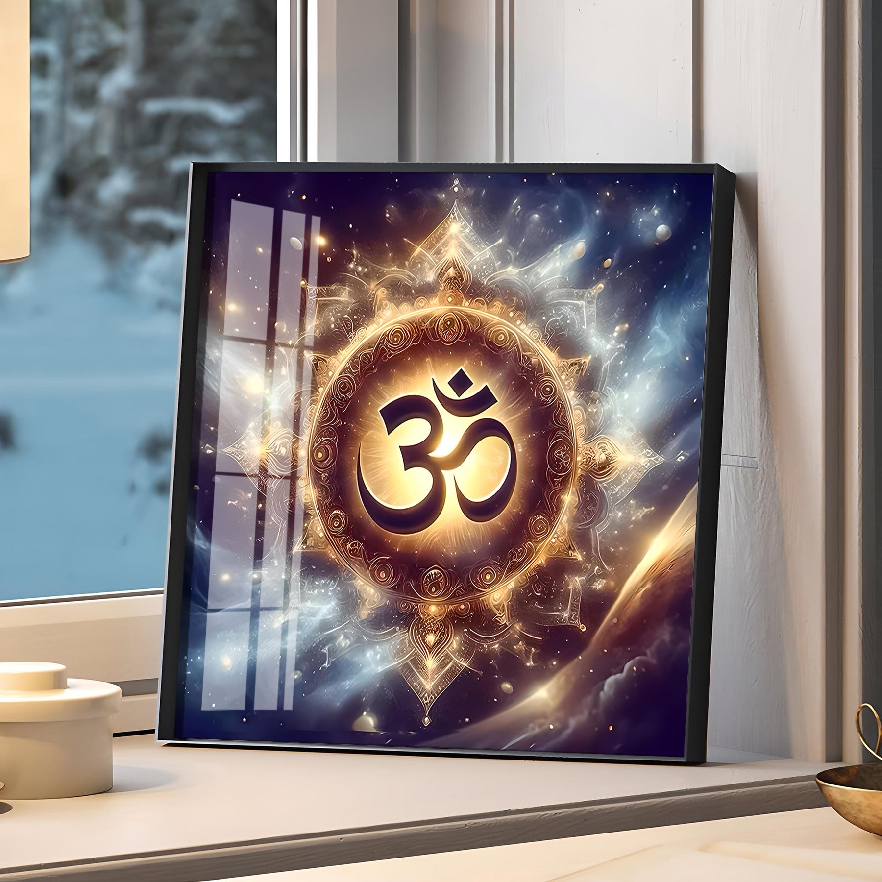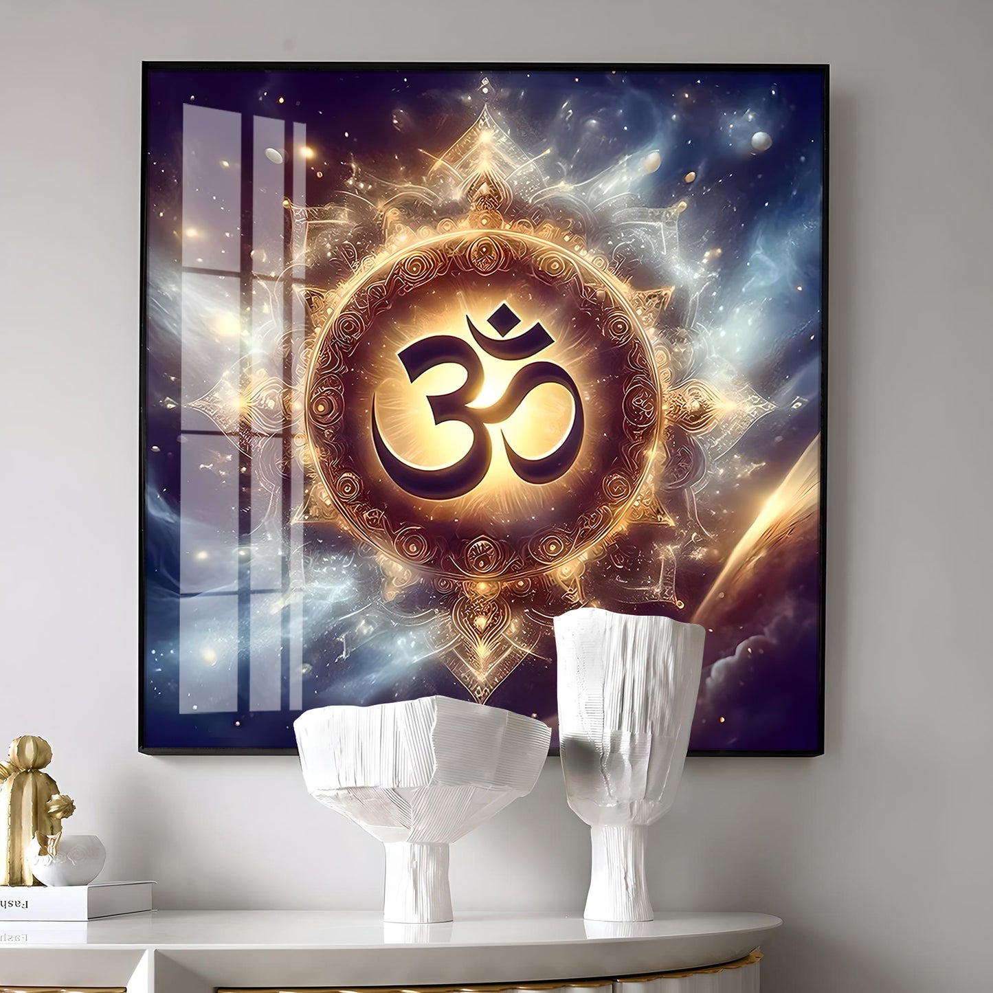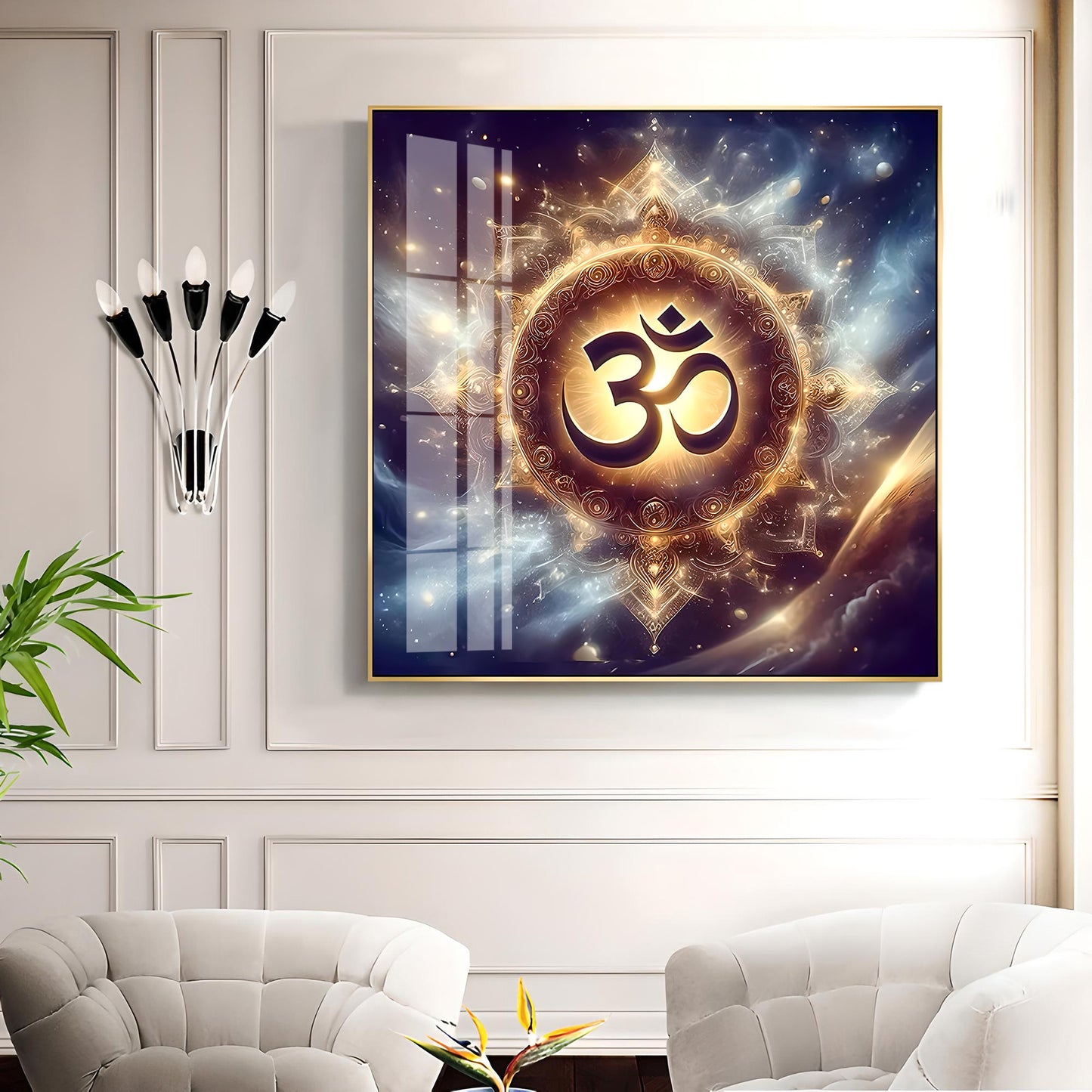 Golden Om Illumination Premium Acrylic Square Wall Art
