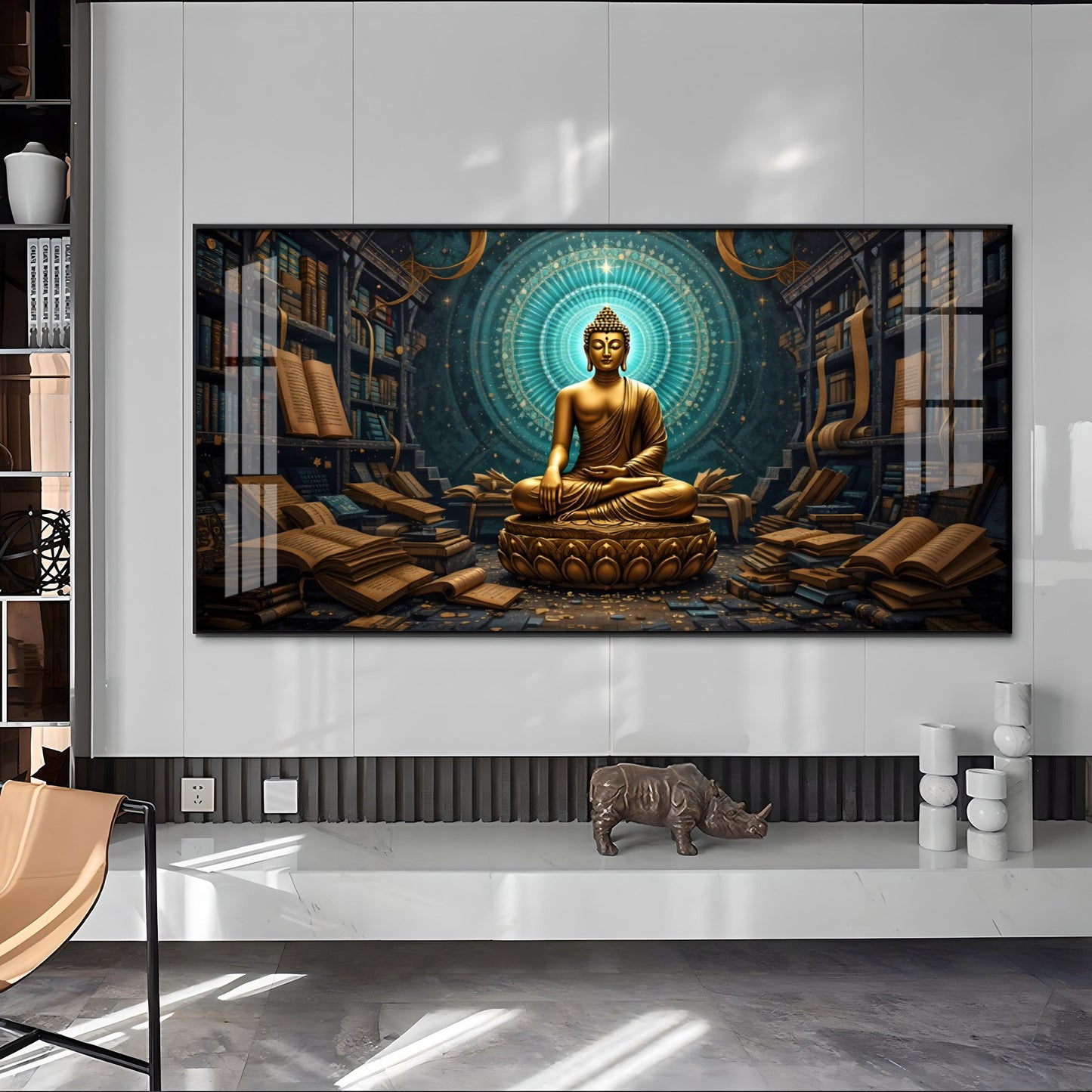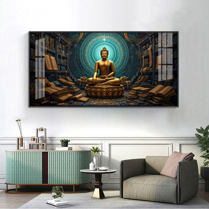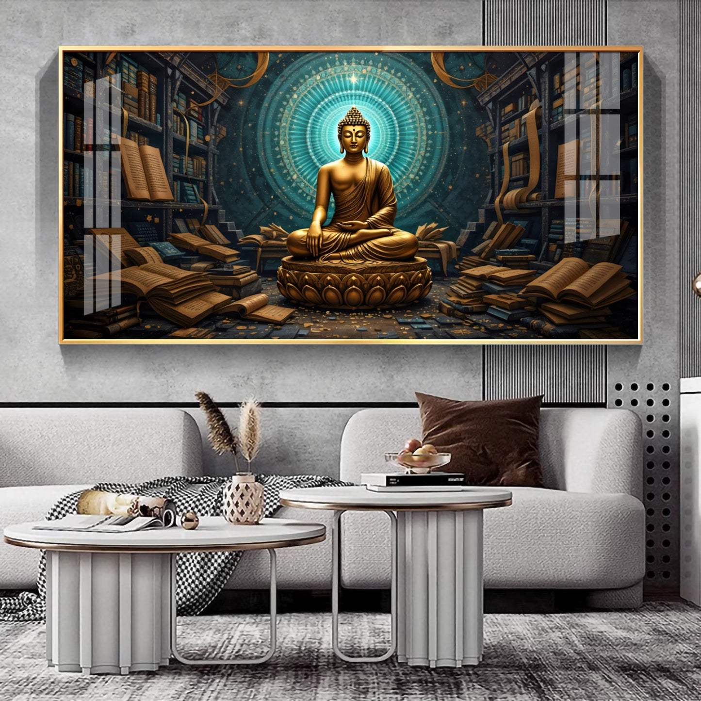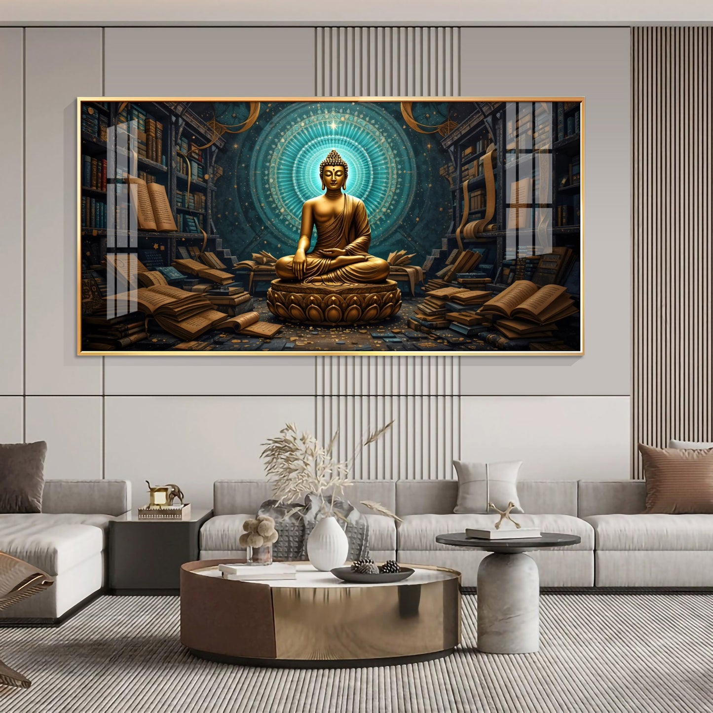 Golden Peaceful Presence Of Buddha Premium Acrylic Horizontal Wall Art