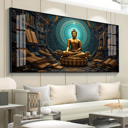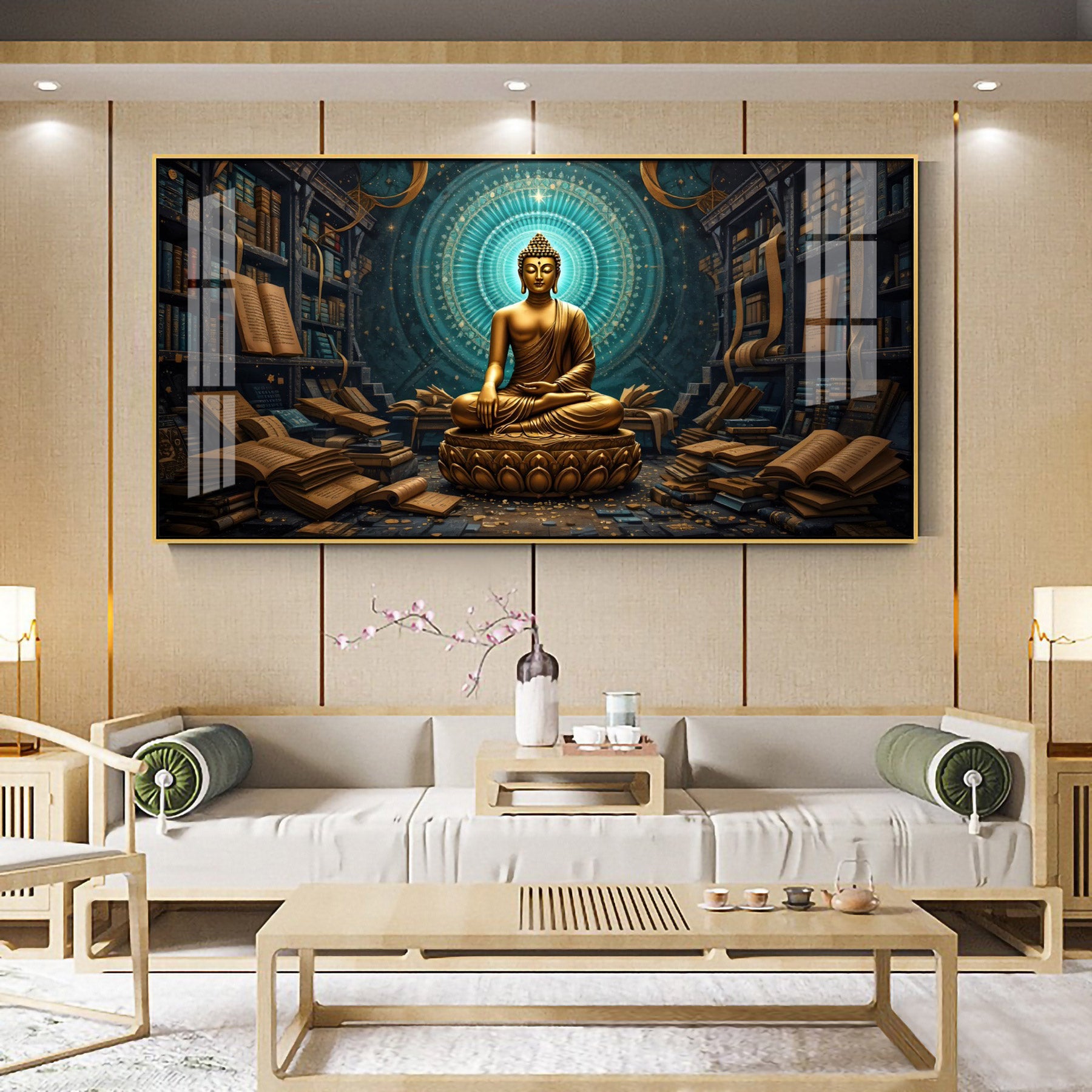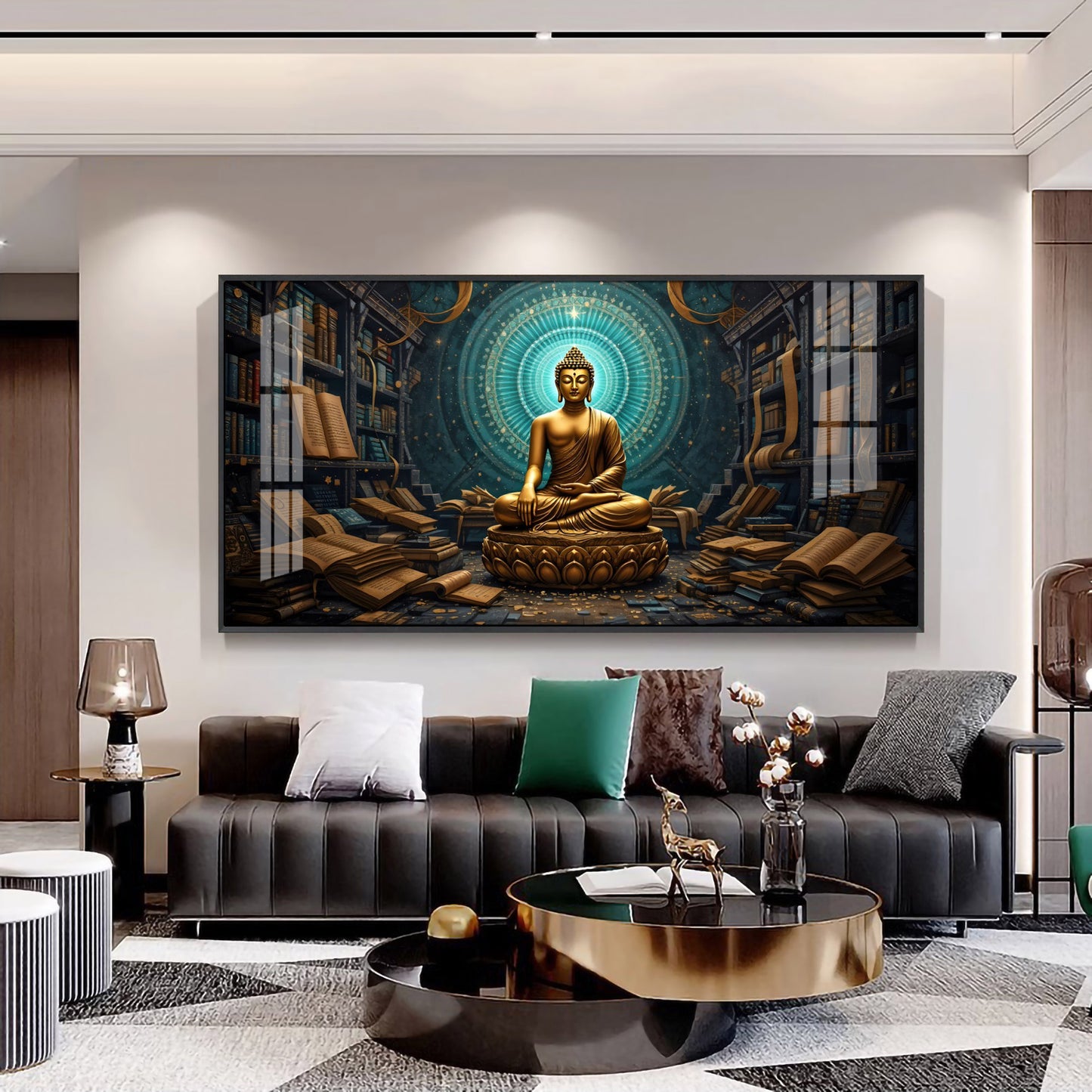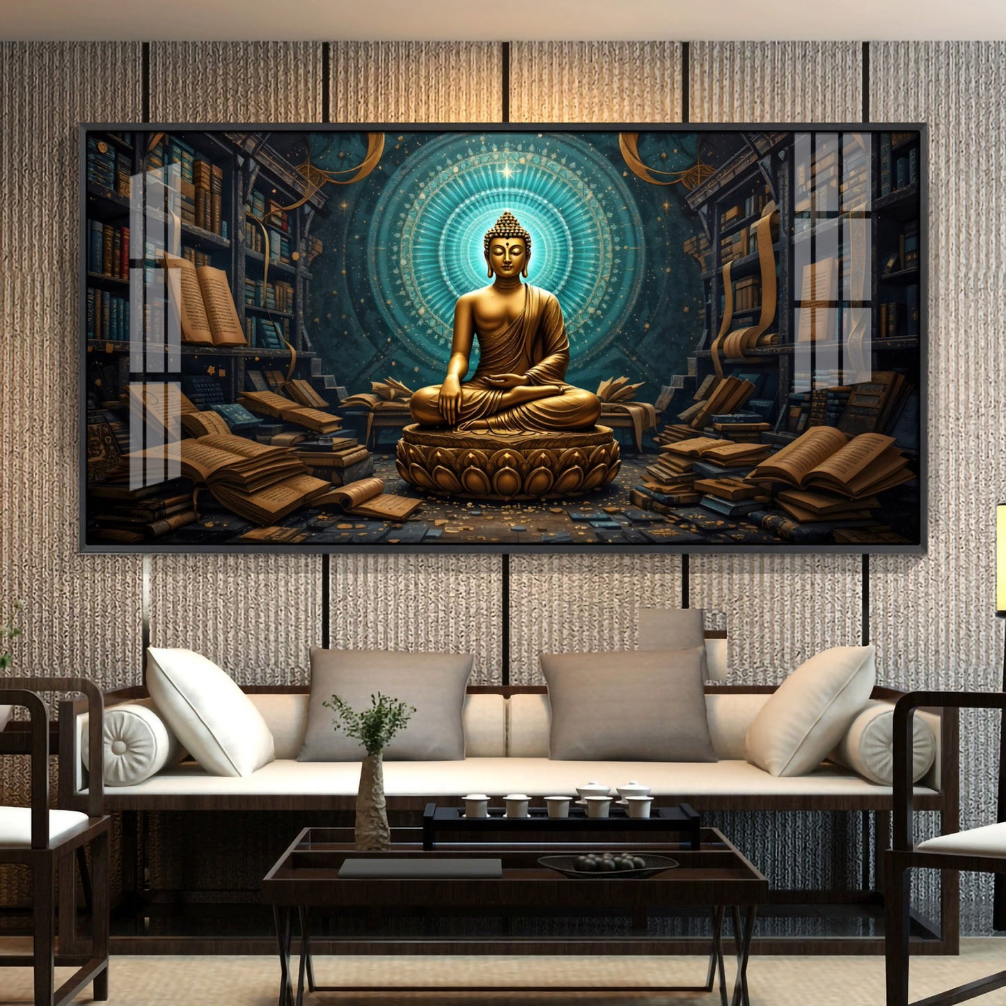 Golden Peaceful Presence Of Buddha Premium Acrylic Horizontal Wall Art