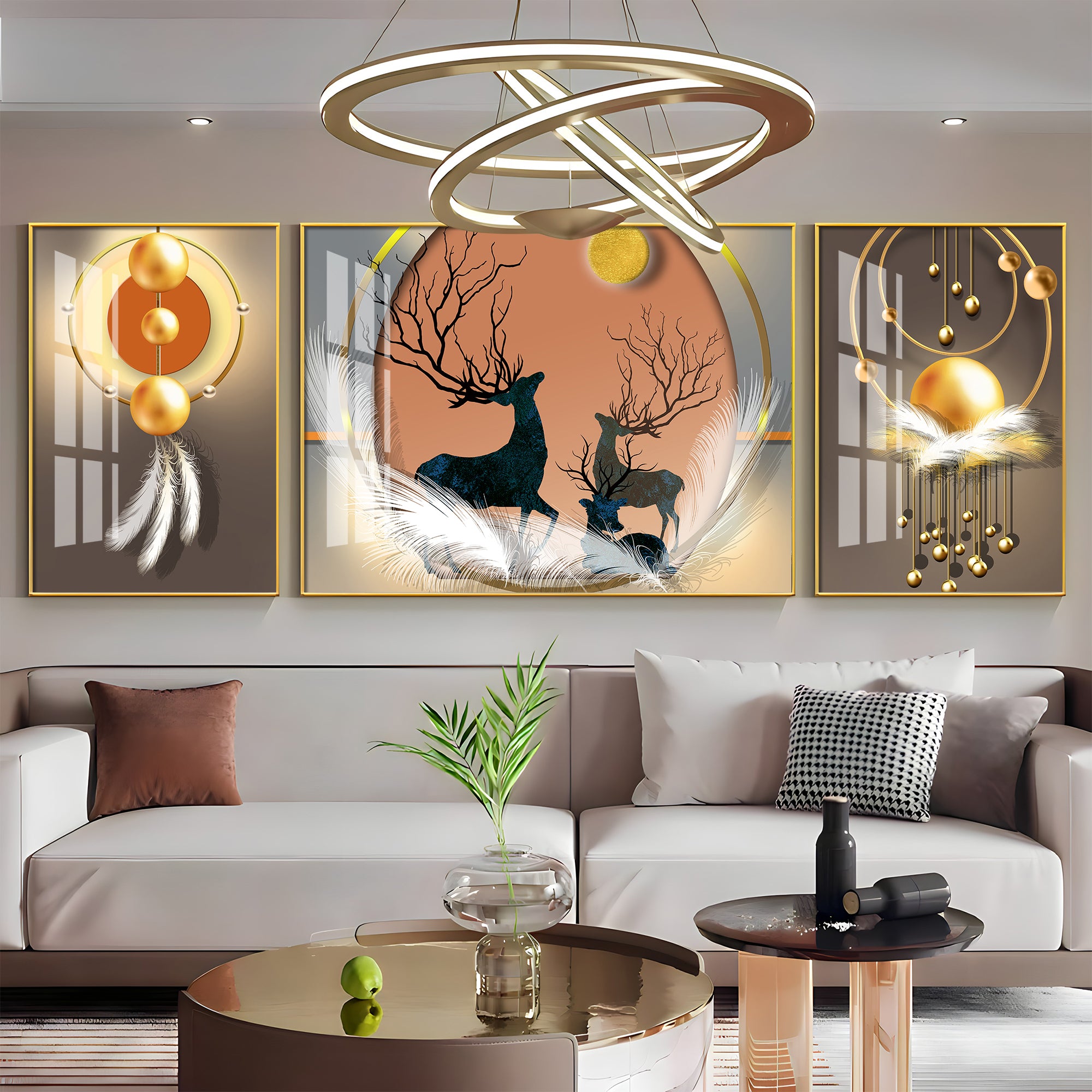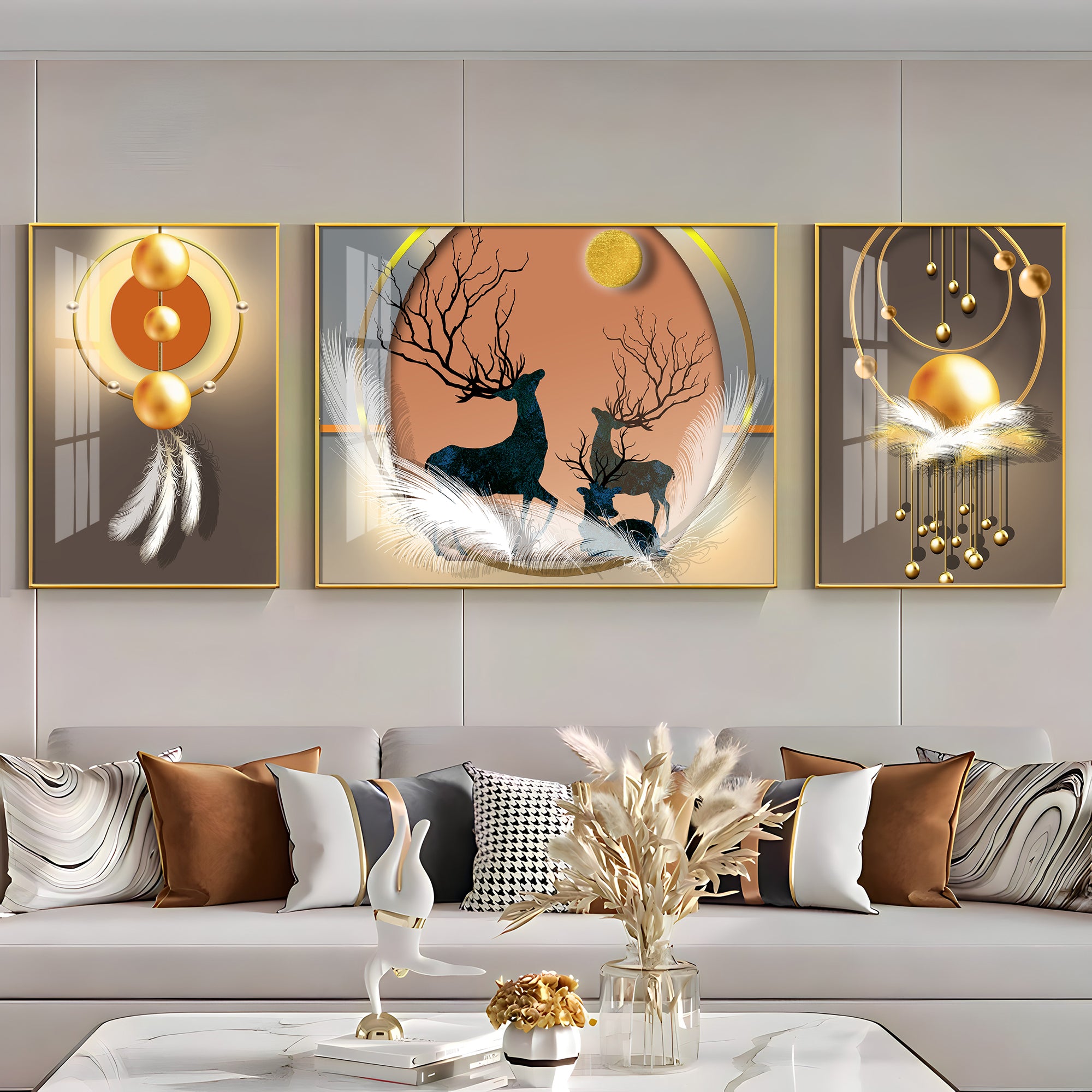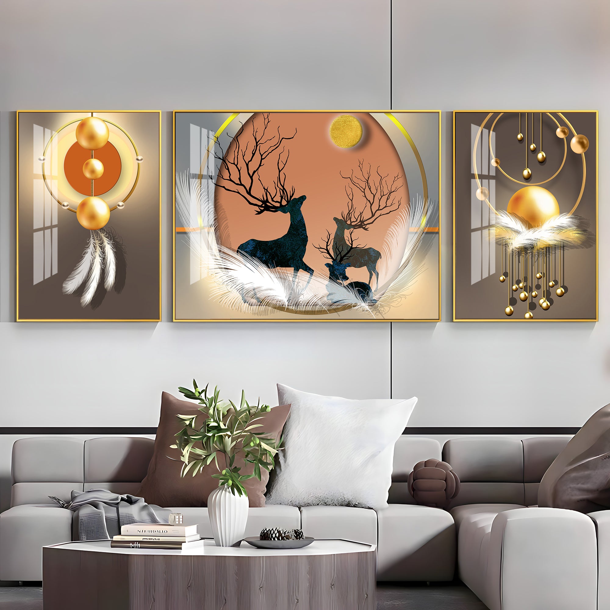 Swamp Deer & Sunset Premium Acrylic Wall Art (Set of 3)