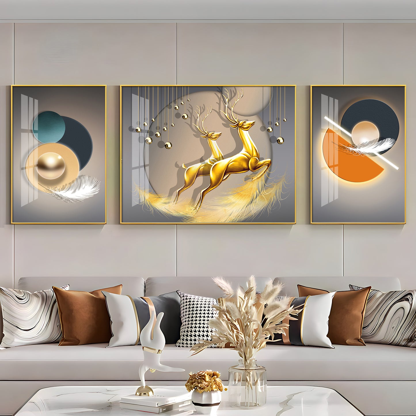 Golden Reindeer Premium Acrylic Wall Art (Set of 3)