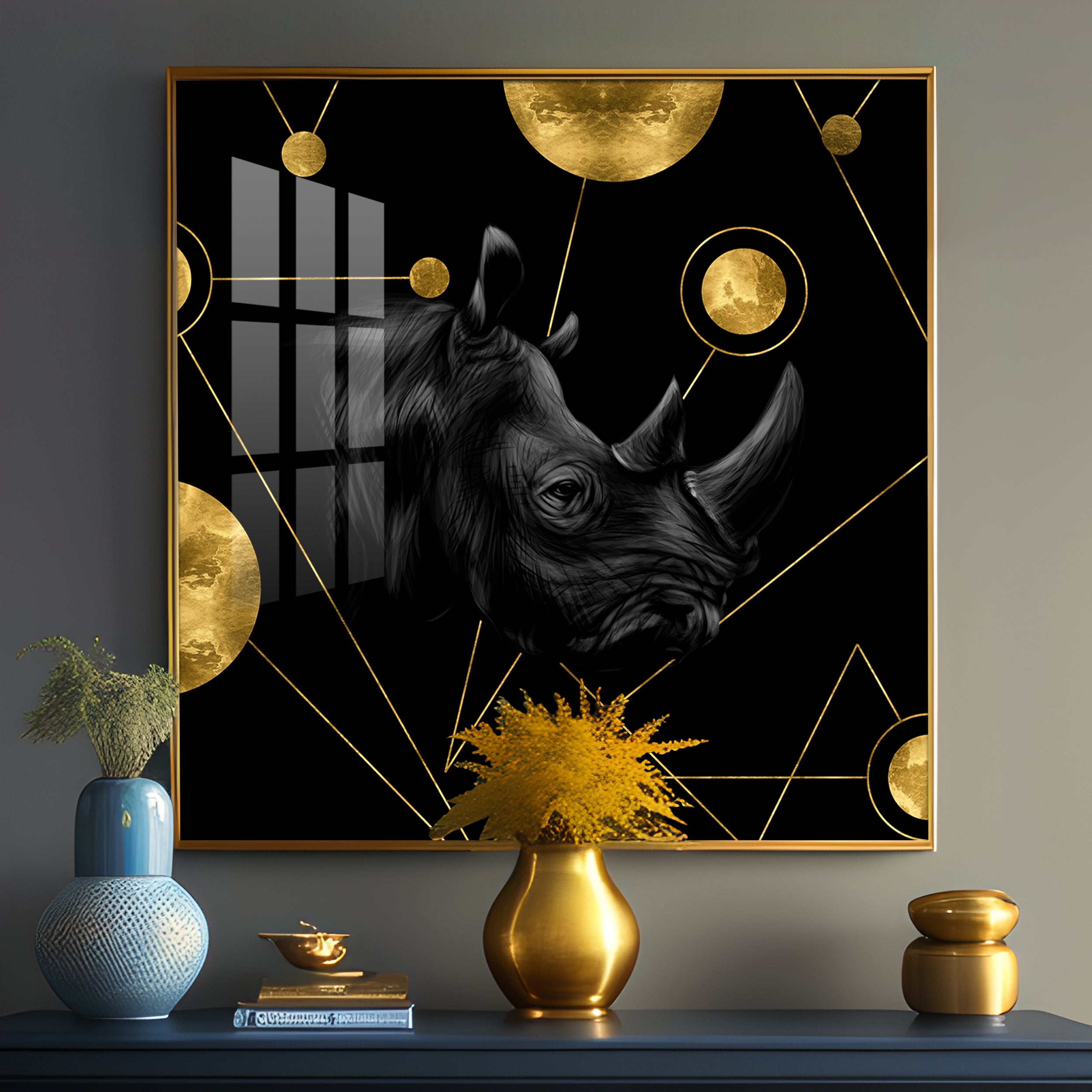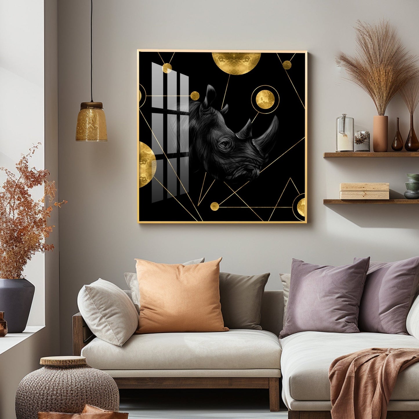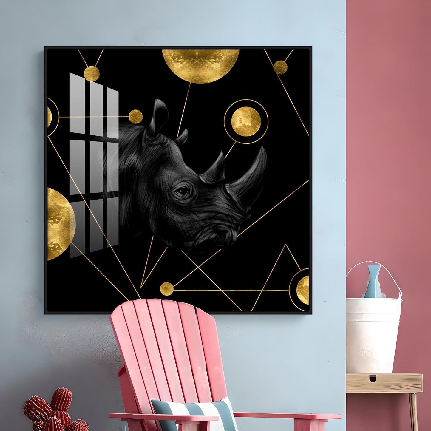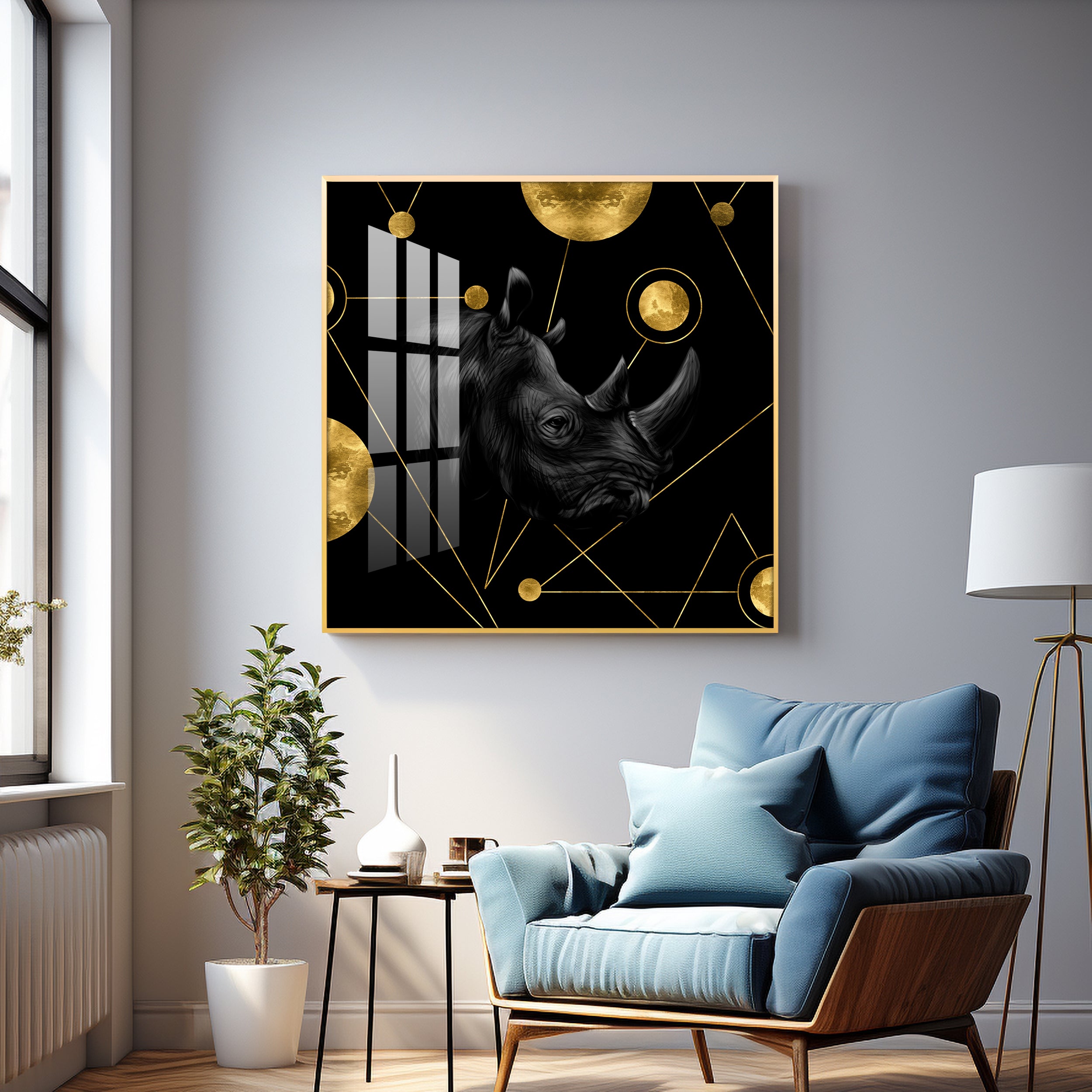 Golden Rhinoceros Luxury Art Premium Acrylic Square Wall Art