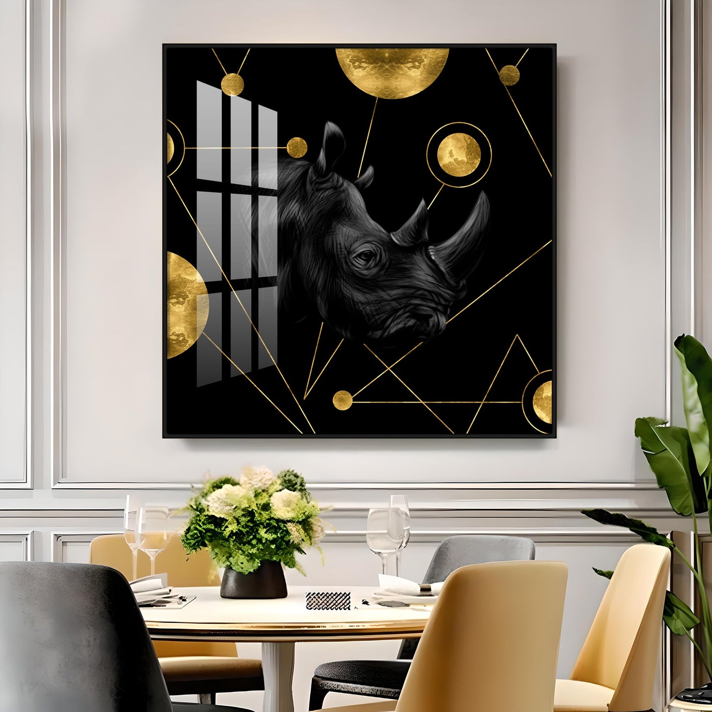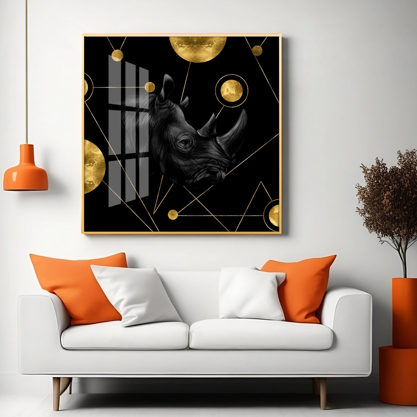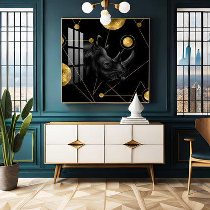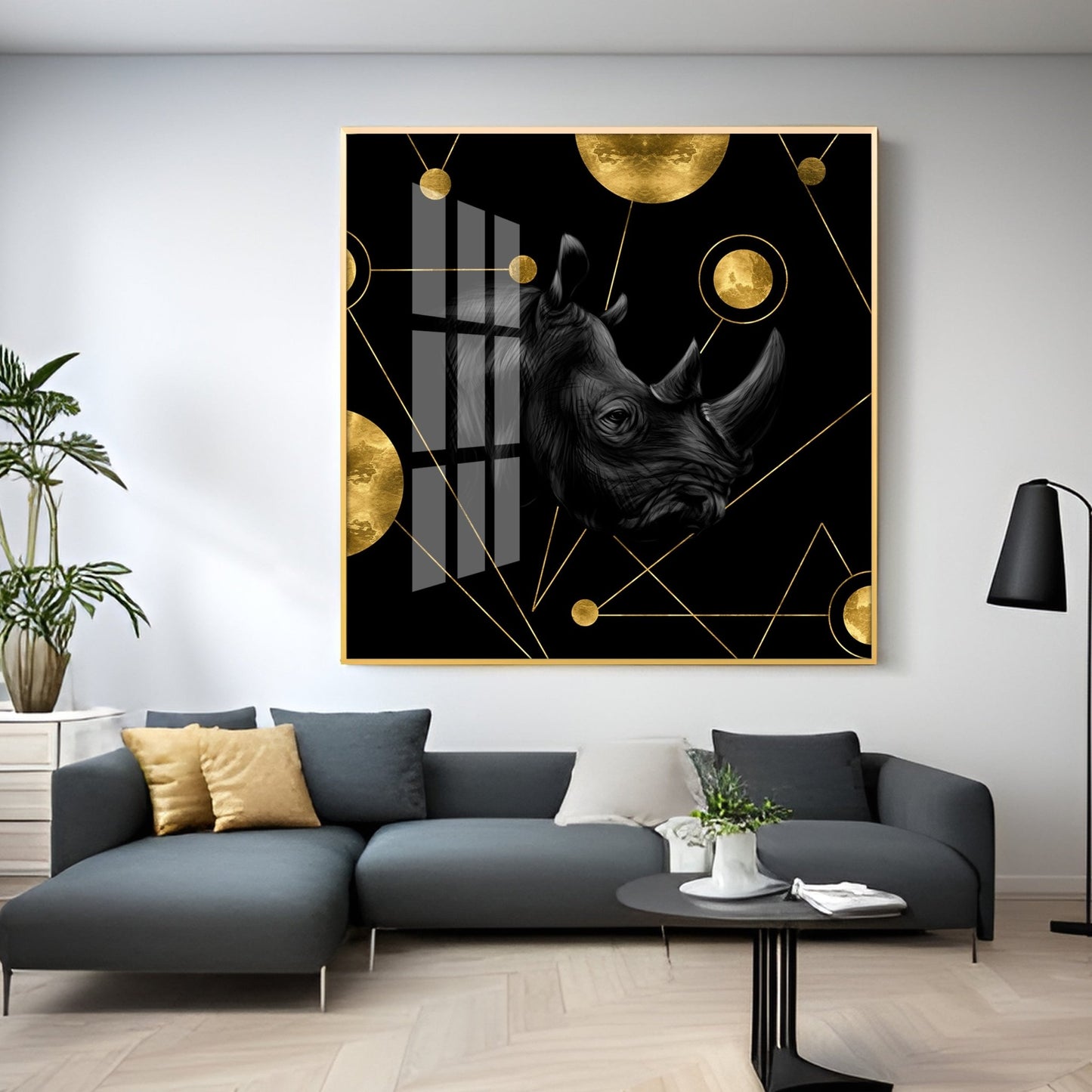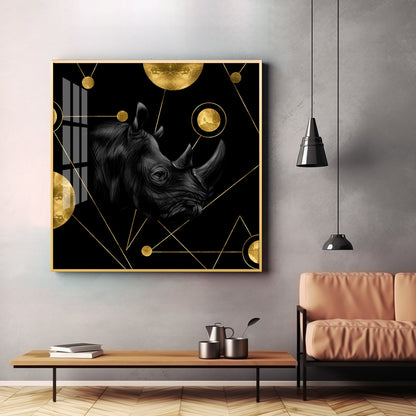 Golden Rhinoceros Luxury Art Premium Acrylic Square Wall Art