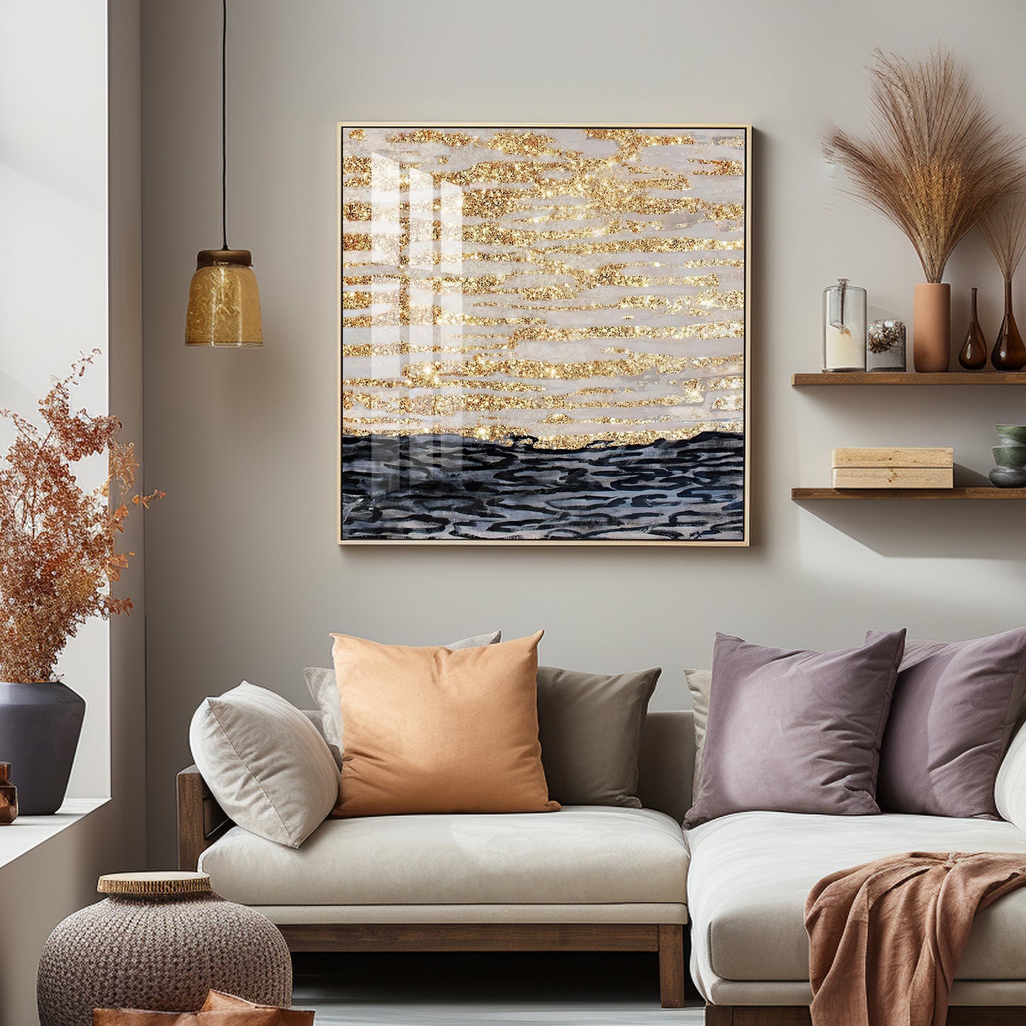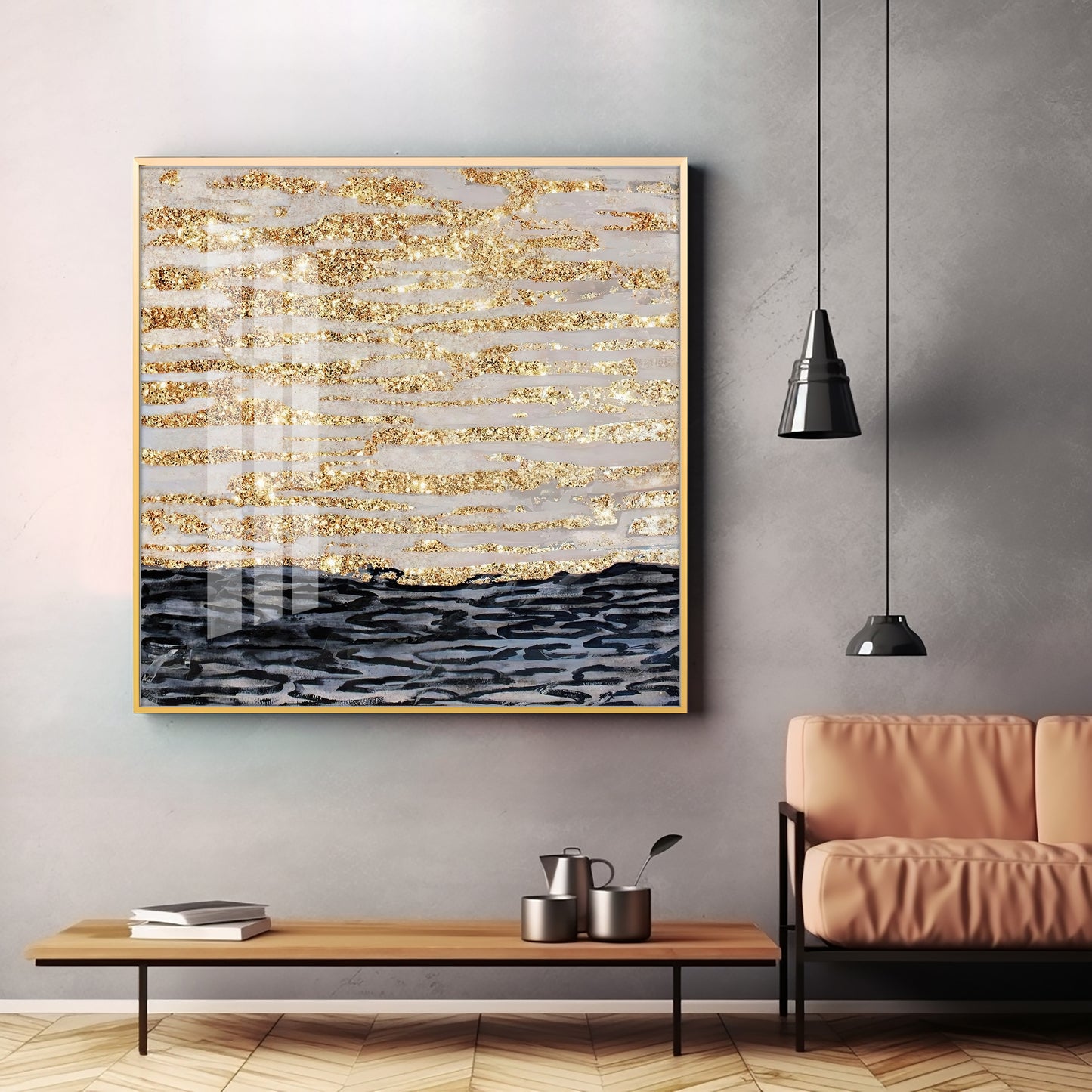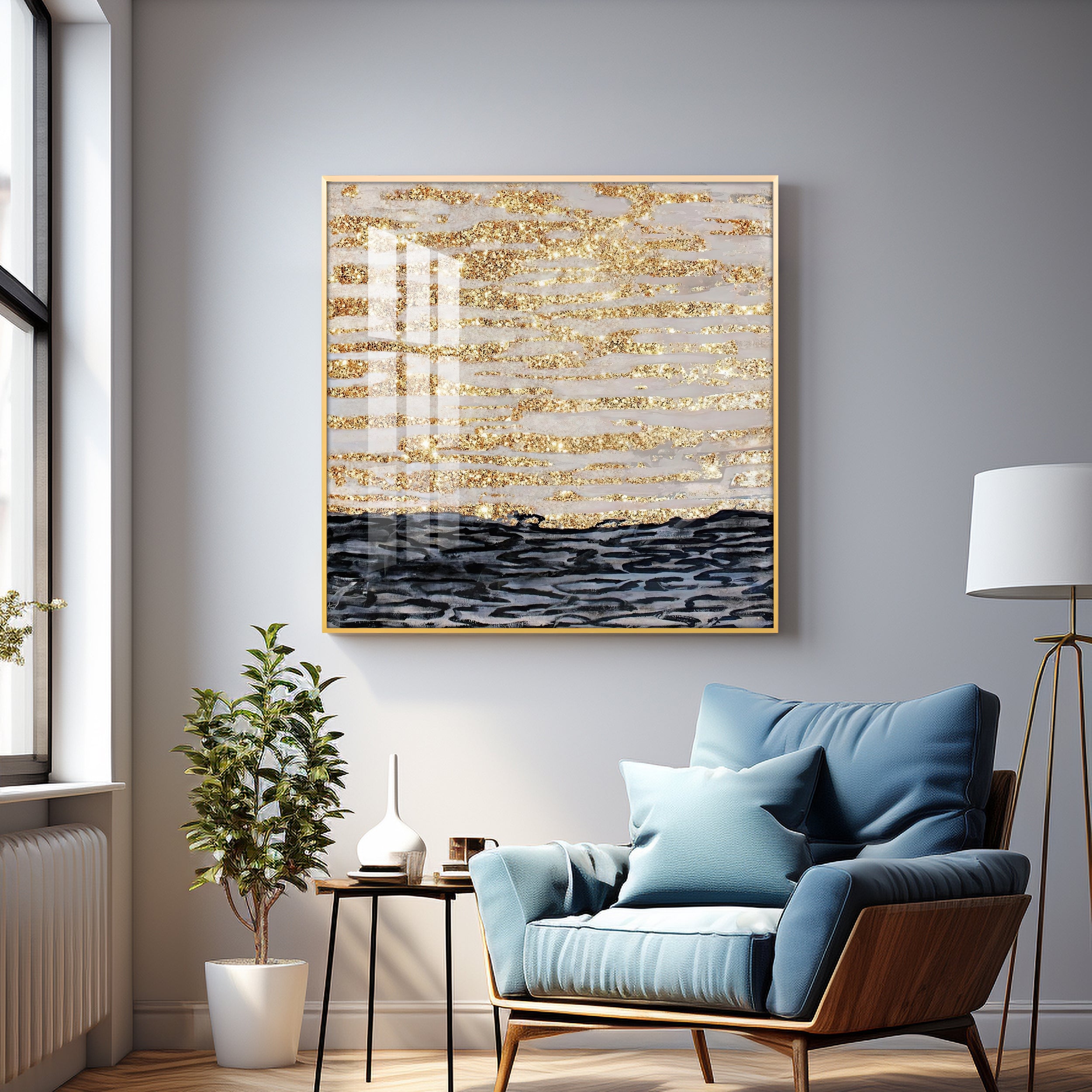 Golden Sea Premium Acrylic Square Wall Art