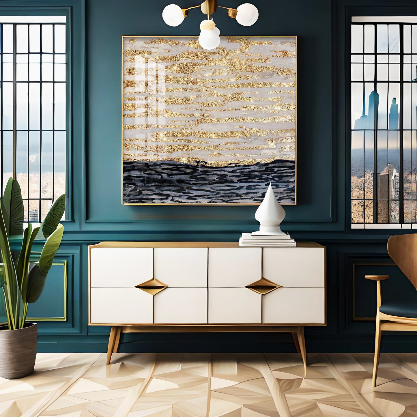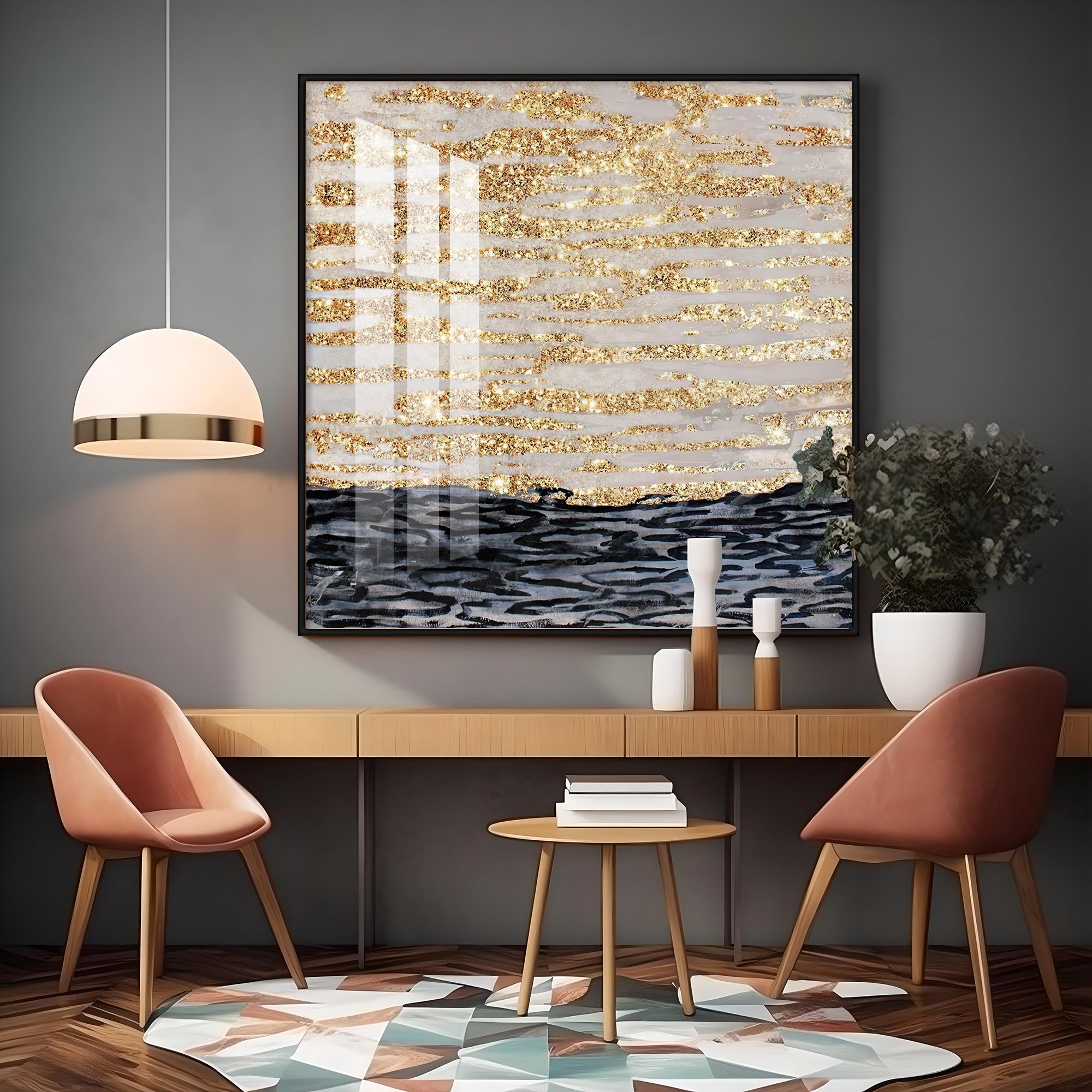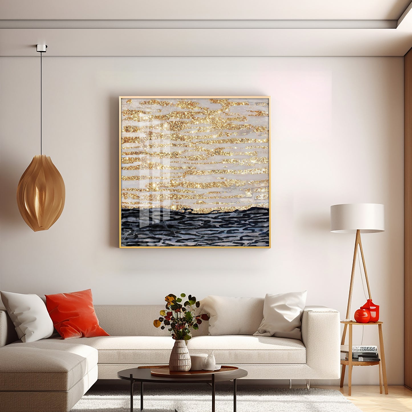 Golden Sea Premium Acrylic Square Wall Art