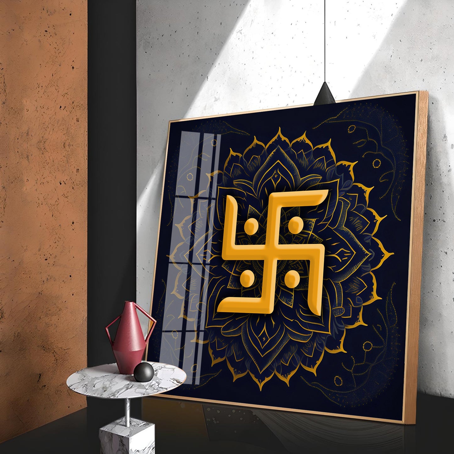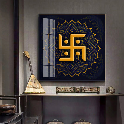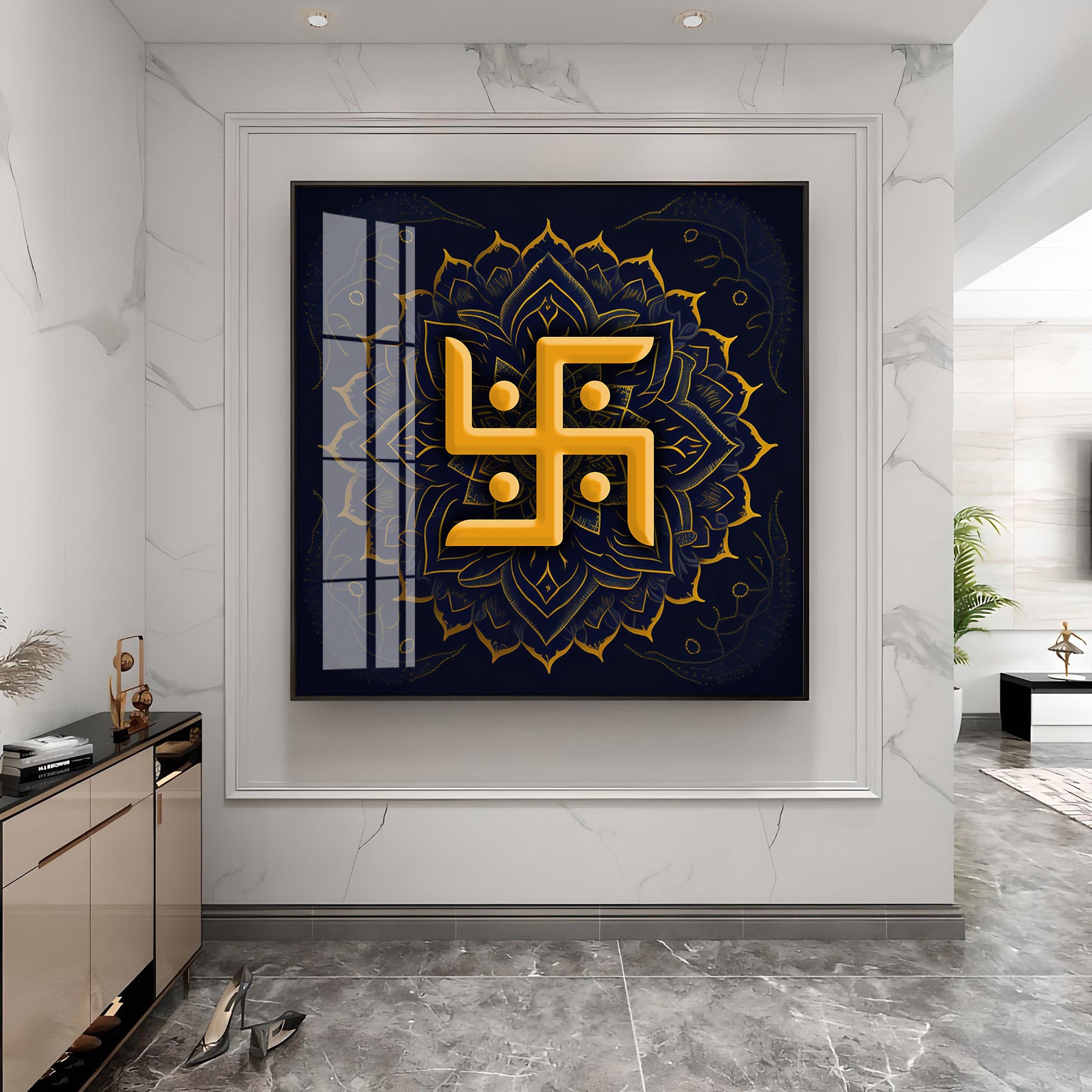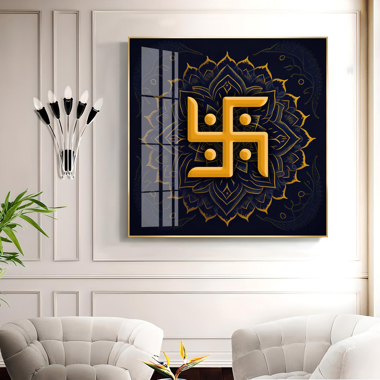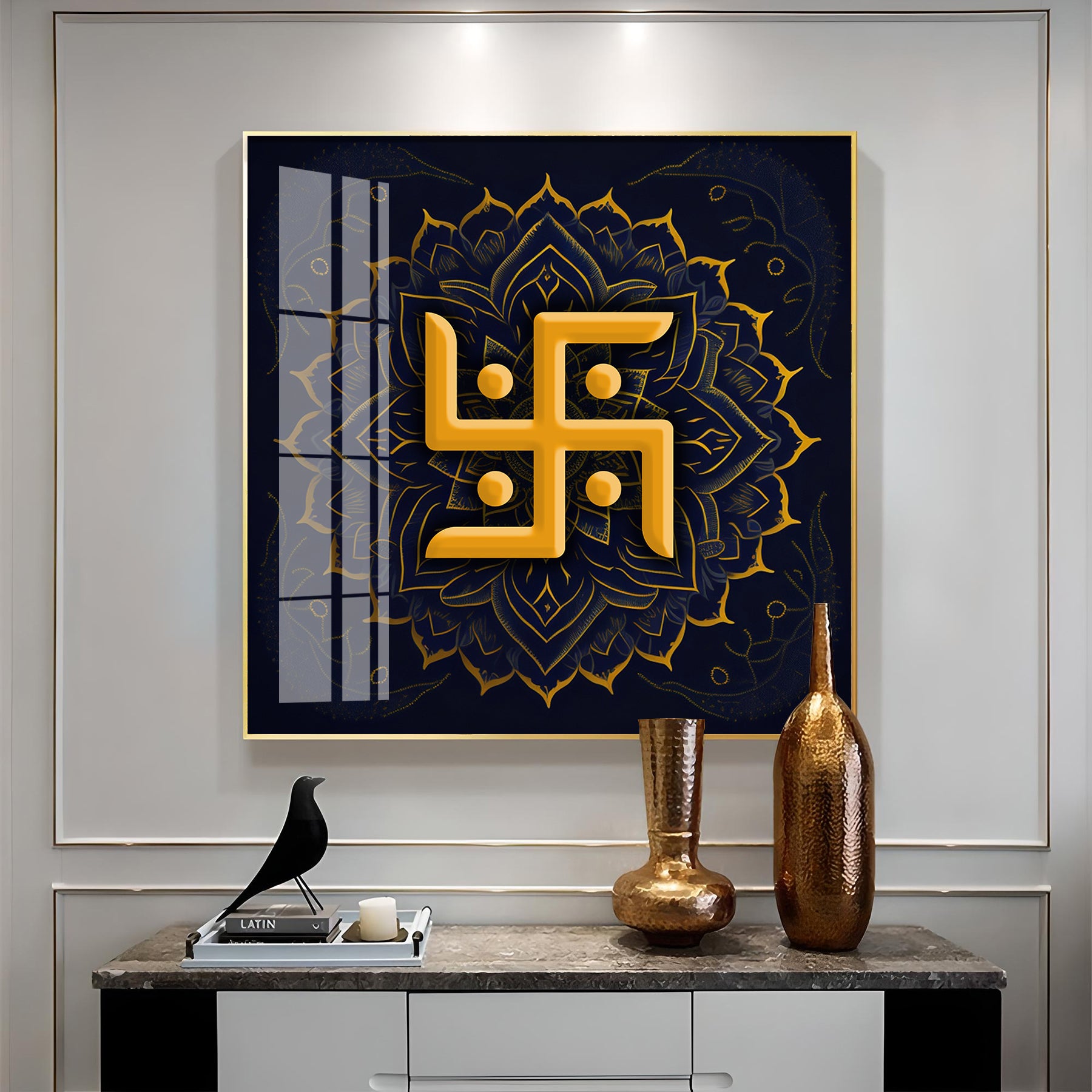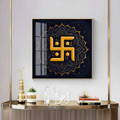 Golden Swastika Character Premium Acrylic Square Wall Art