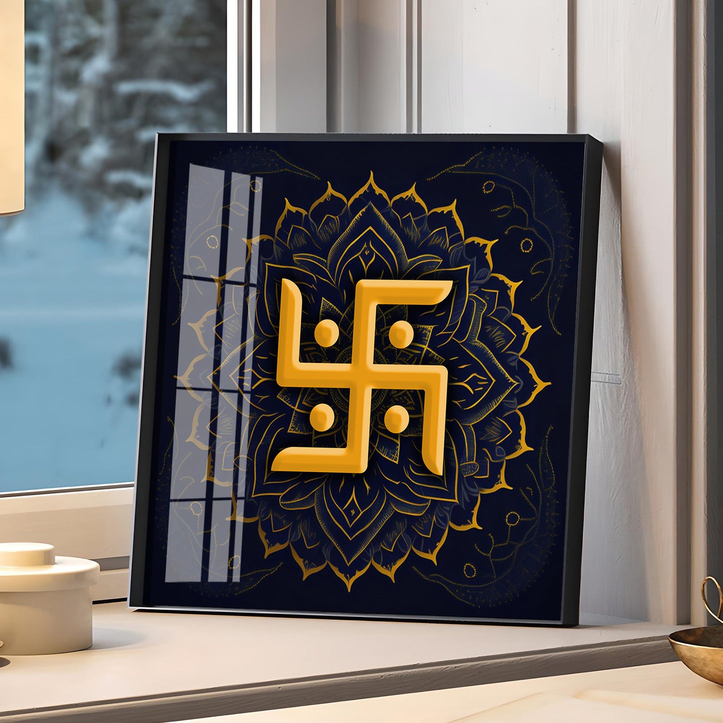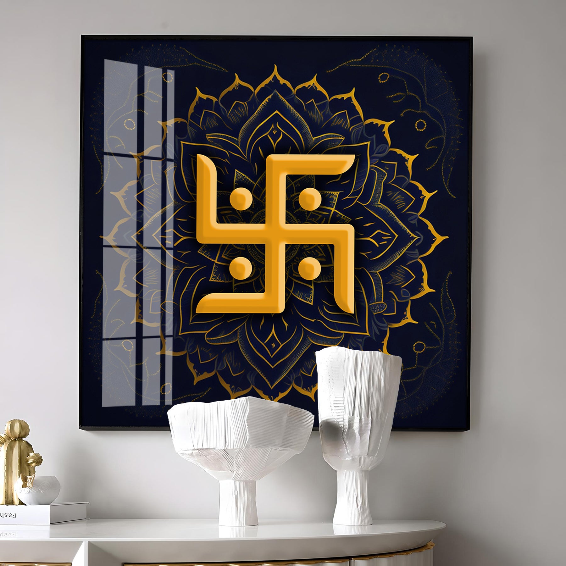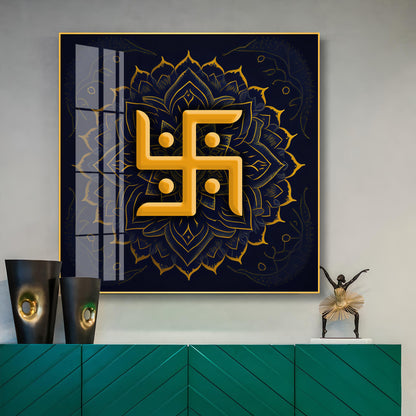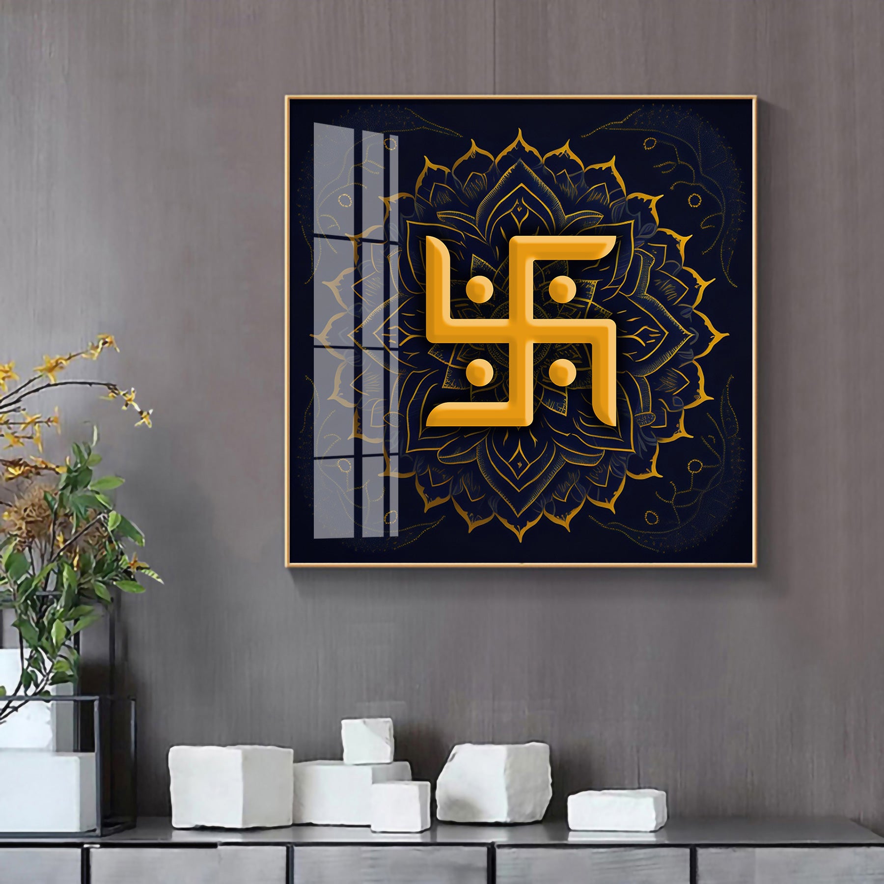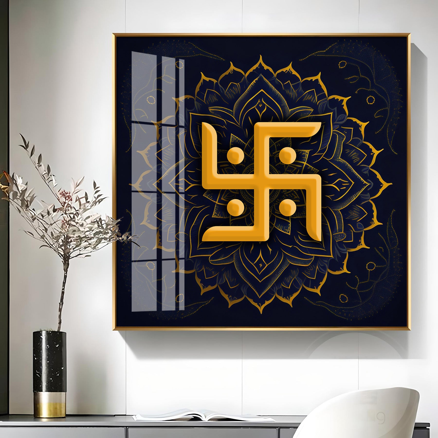 Golden Swastika Character Premium Acrylic Square Wall Art