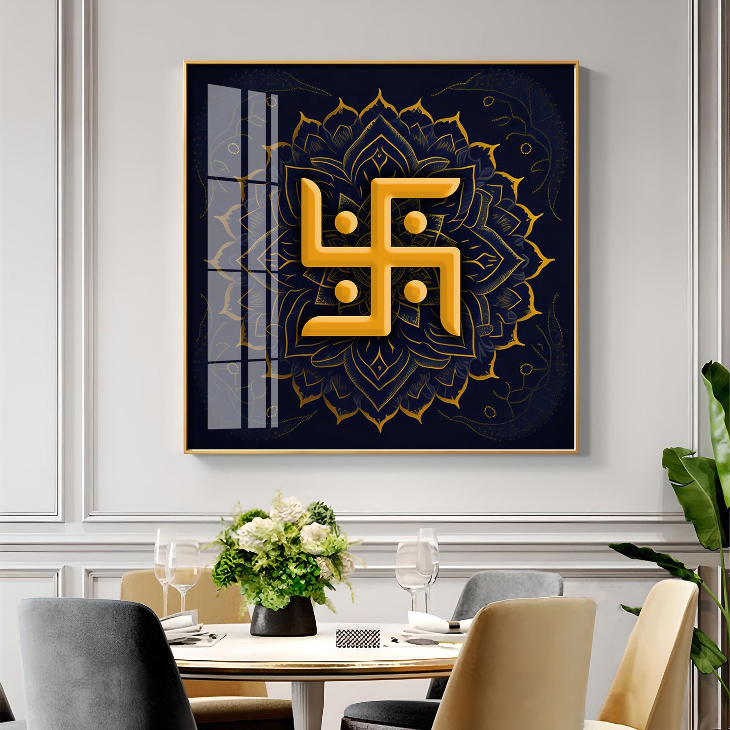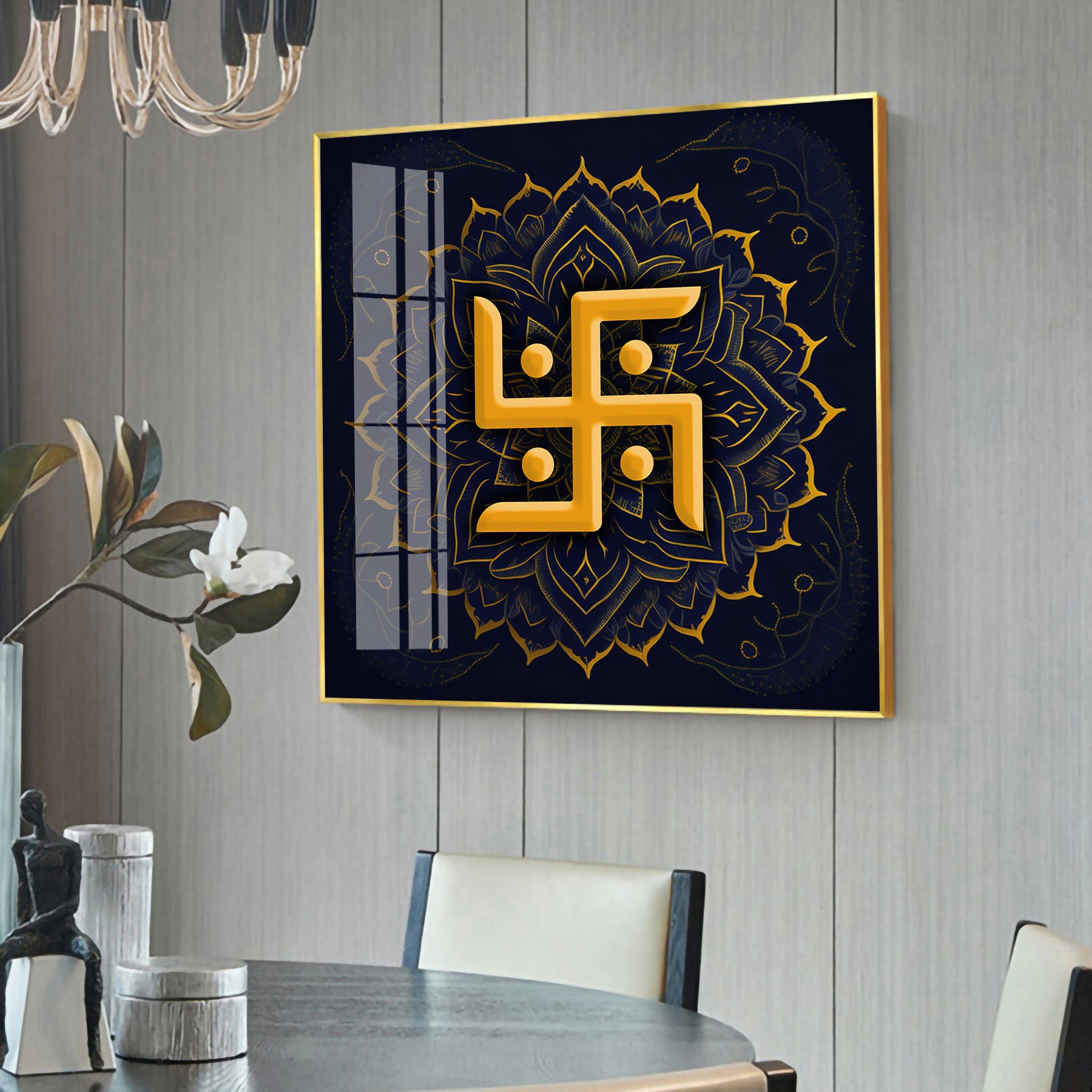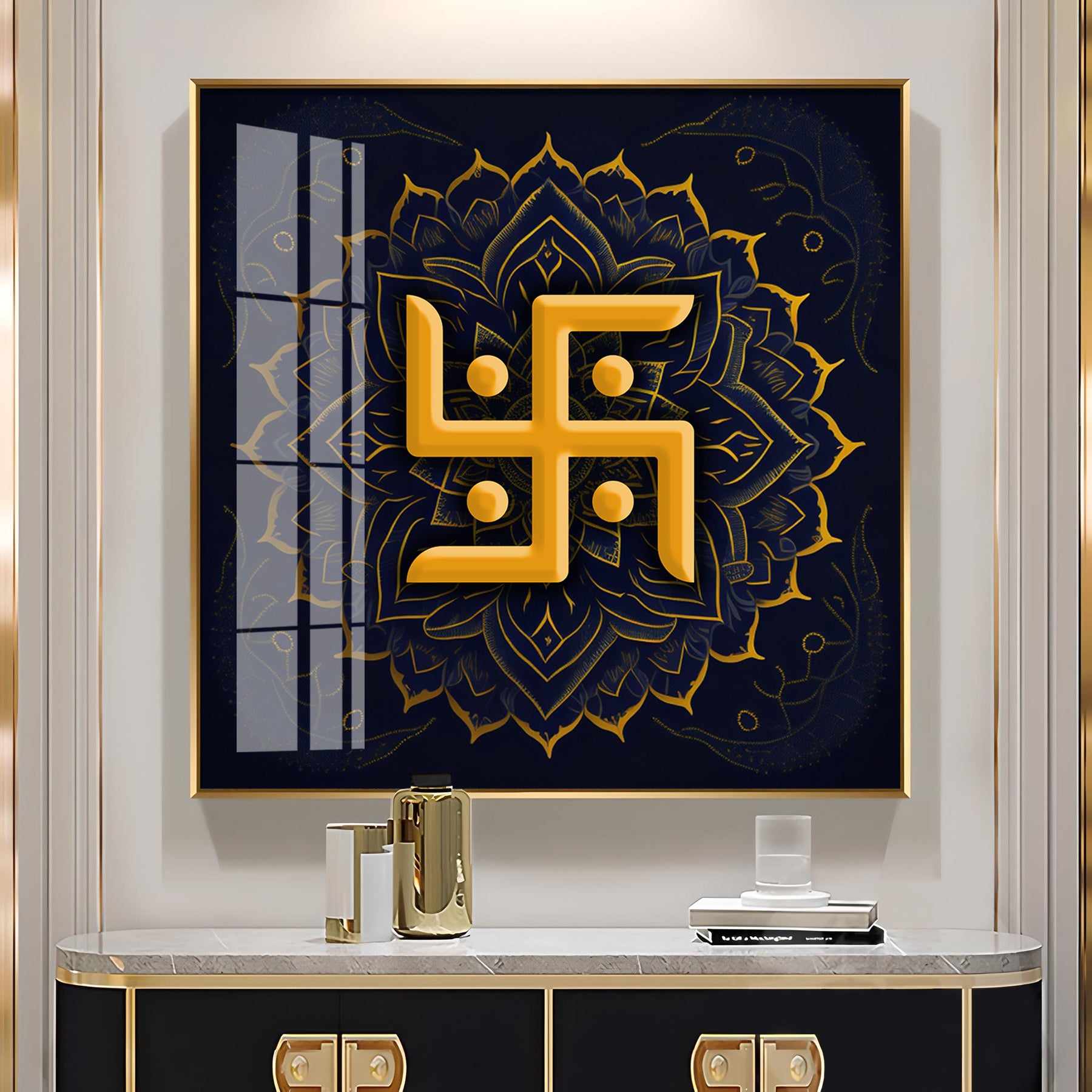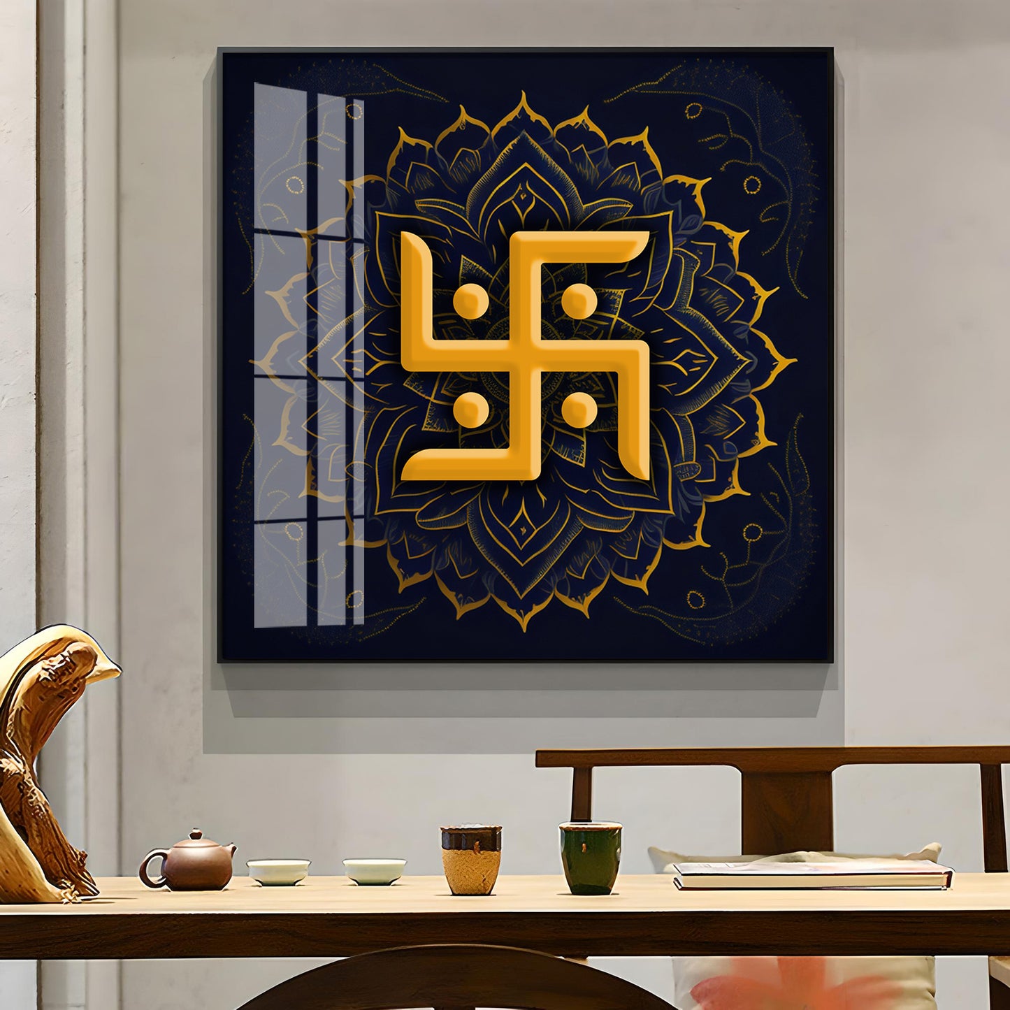 Golden Swastika Character Premium Acrylic Square Wall Art
