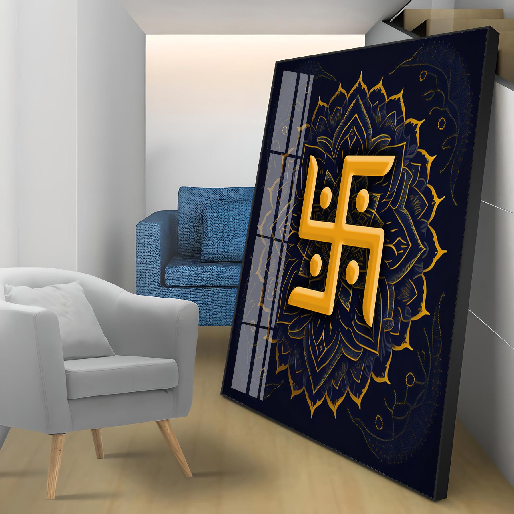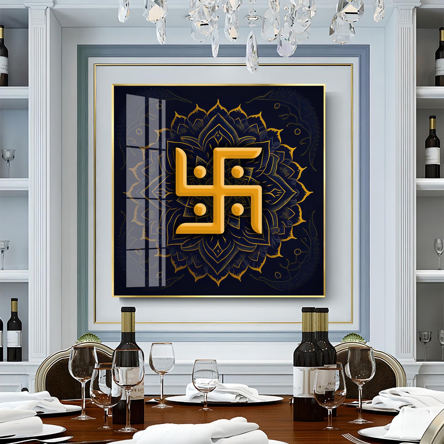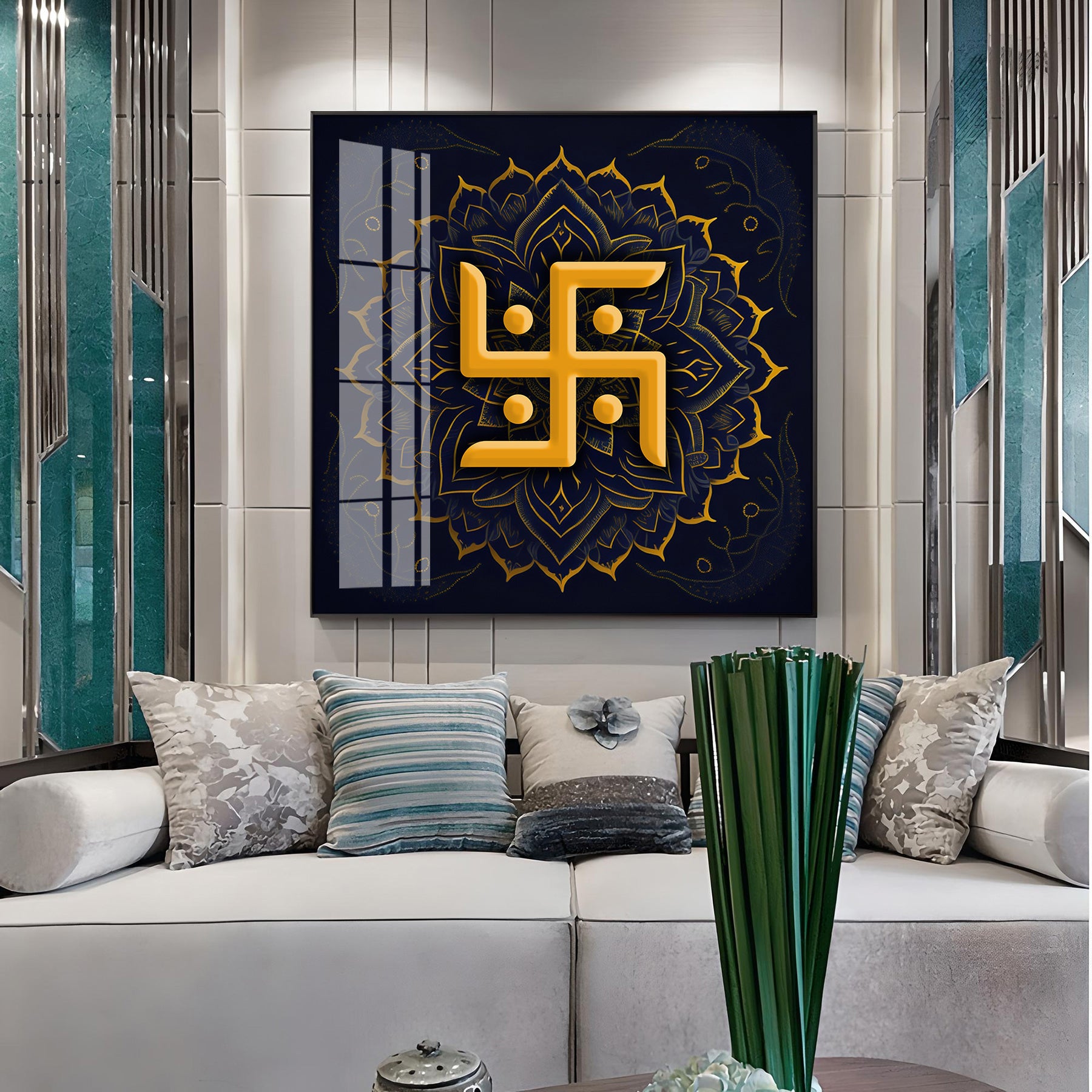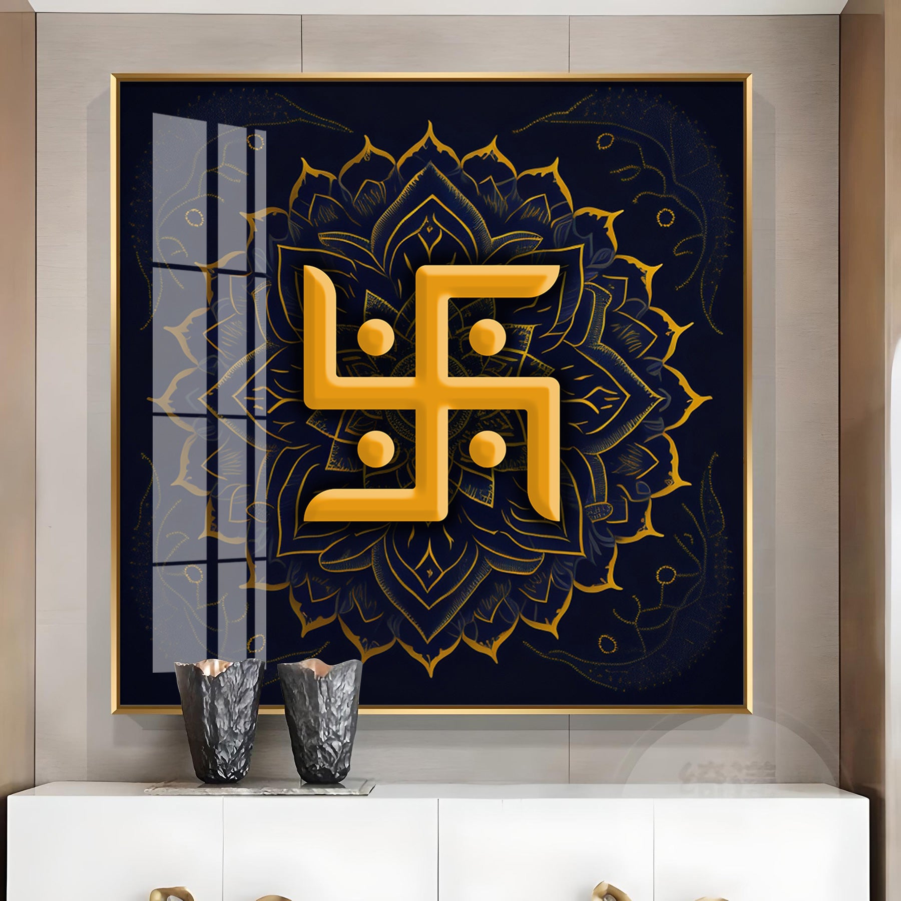 Golden Swastika Character Premium Acrylic Square Wall Art
