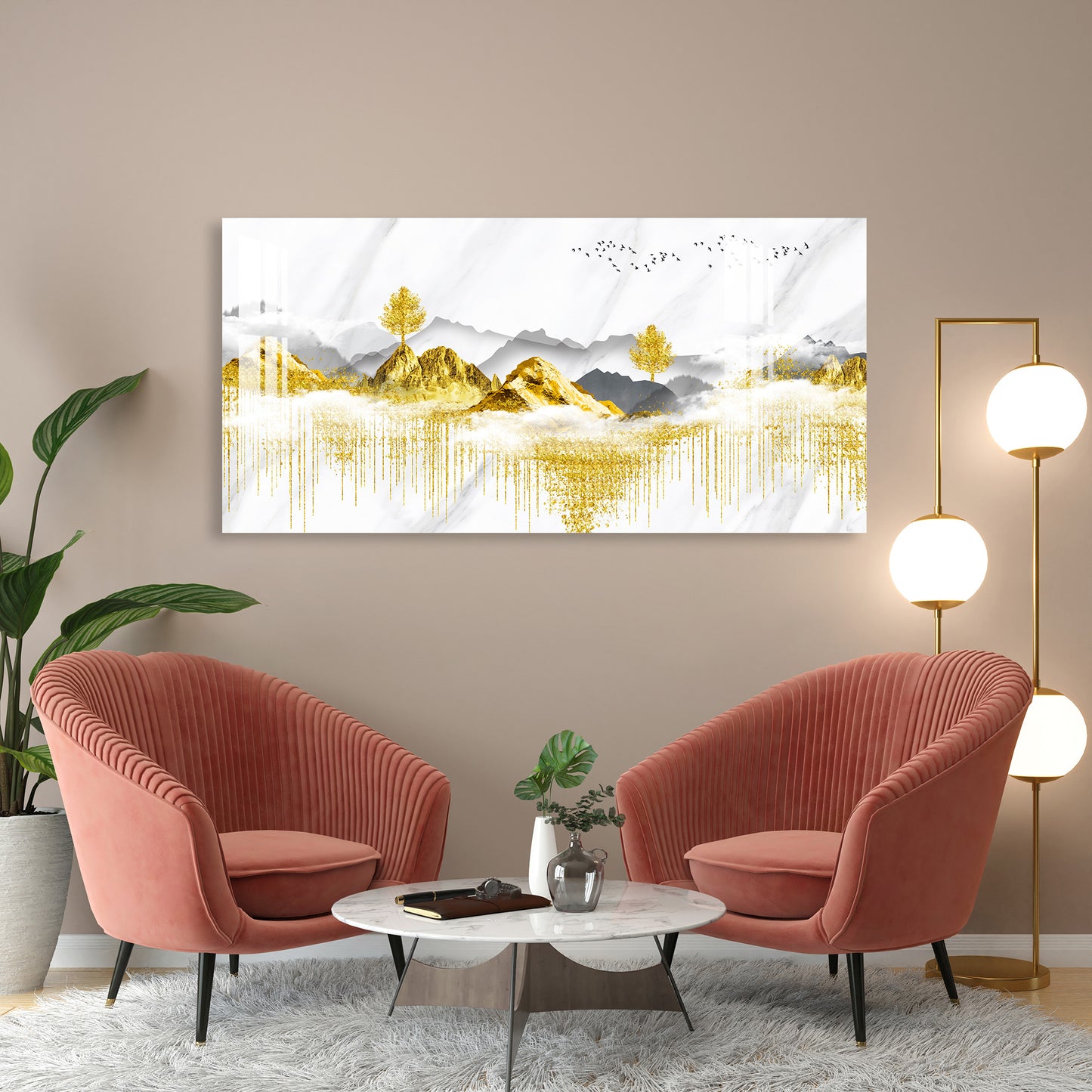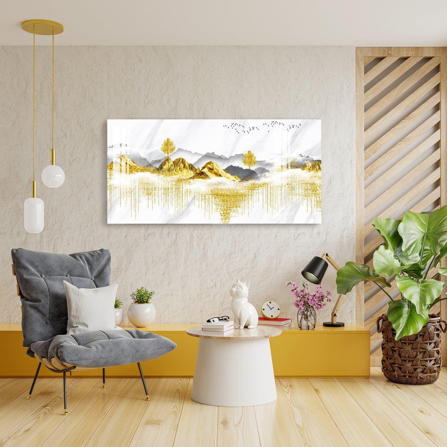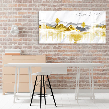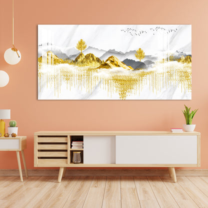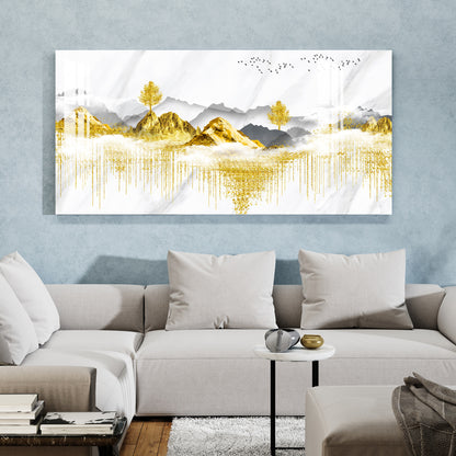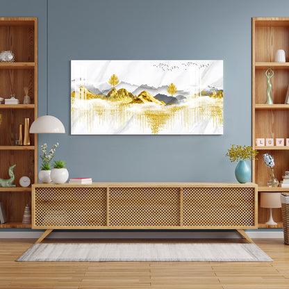 Golden Trees & Mountain Acrylic Wall Art