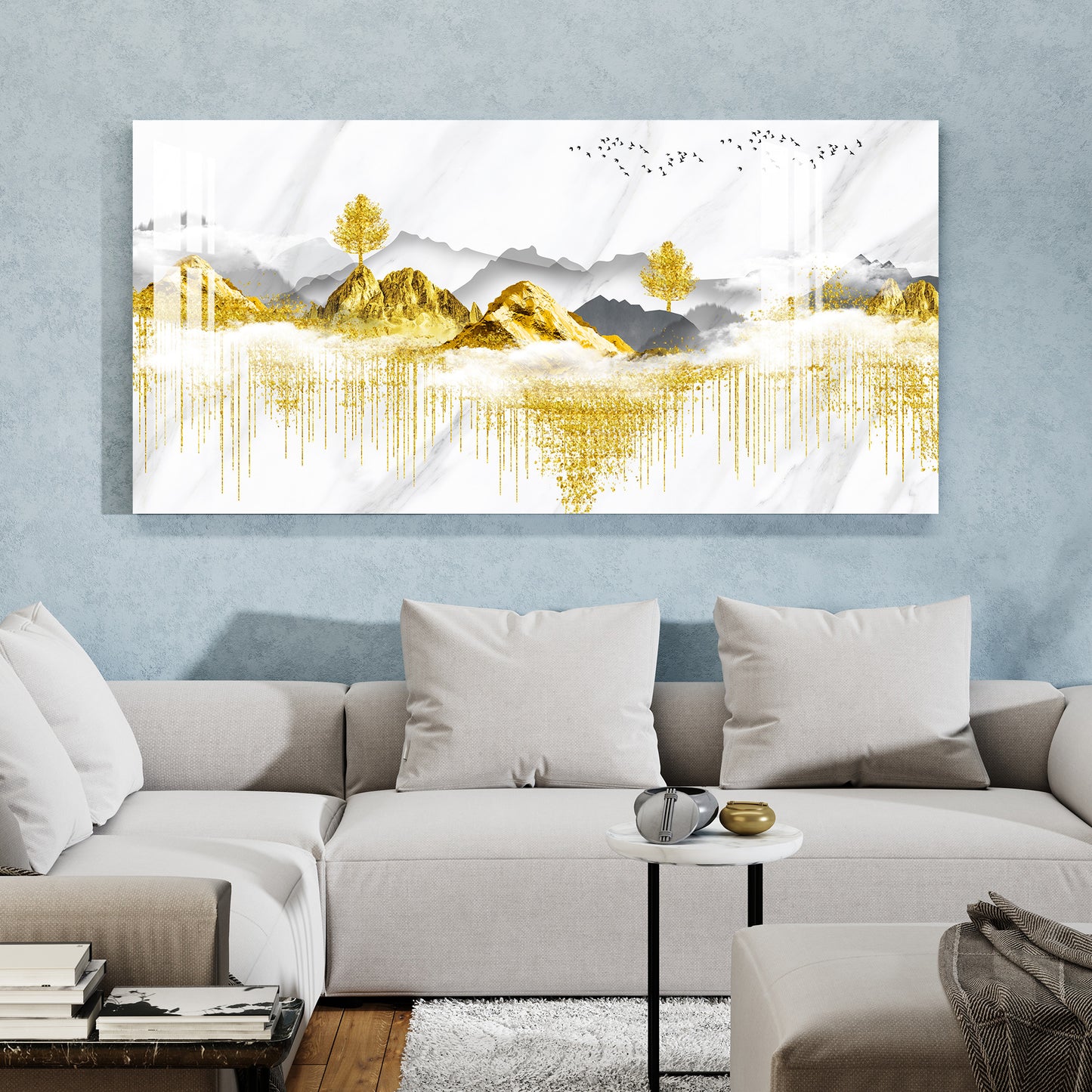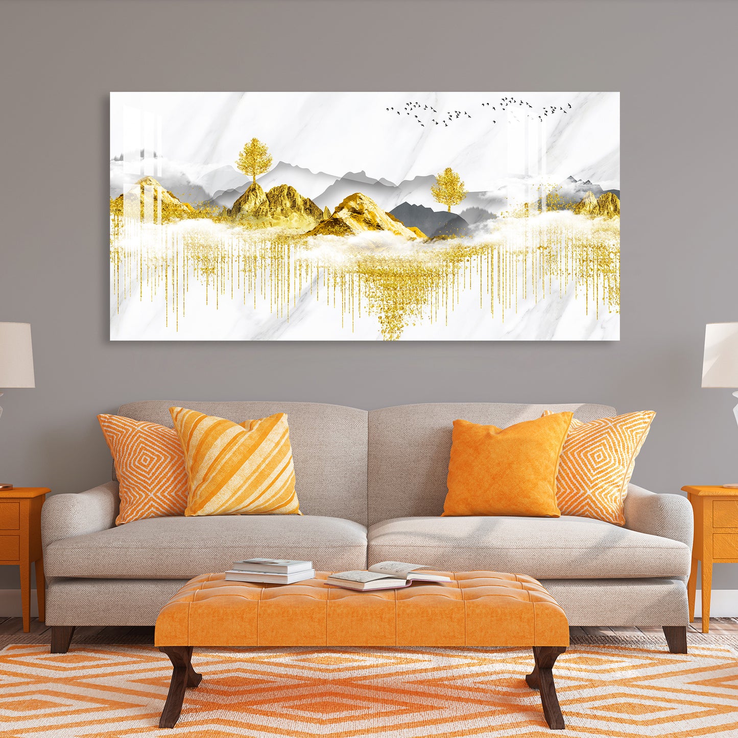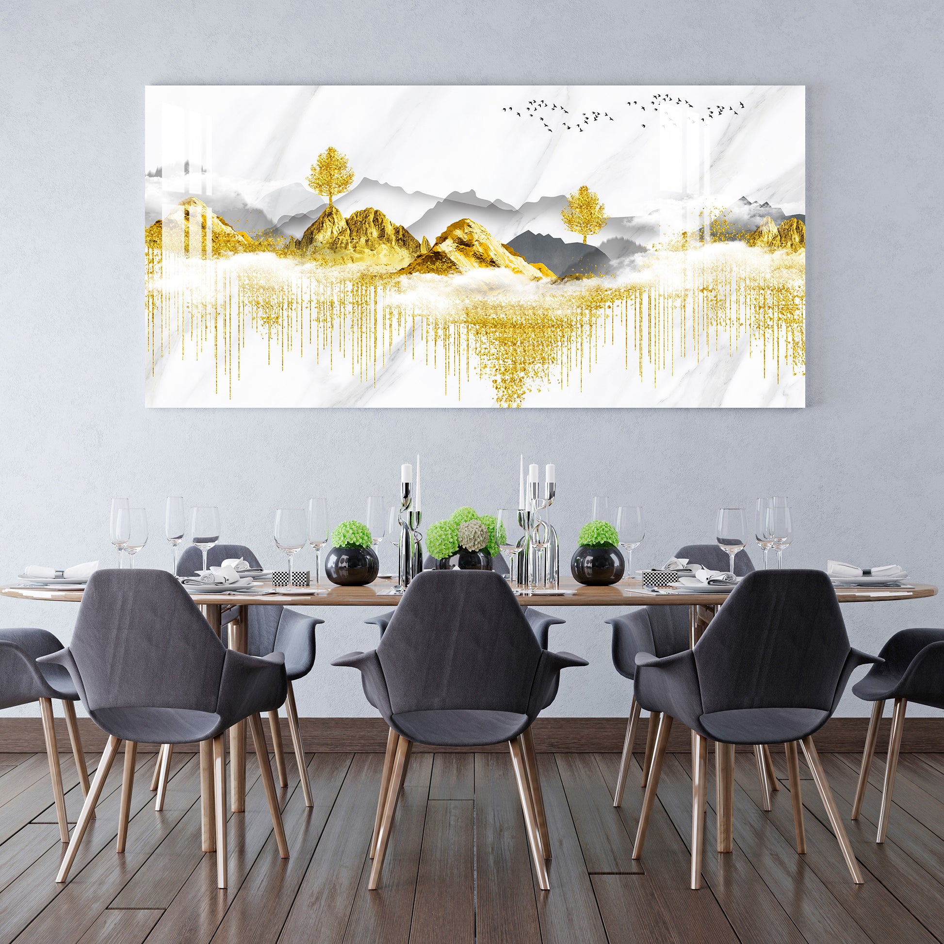 Golden Trees & Mountain Acrylic Wall Art