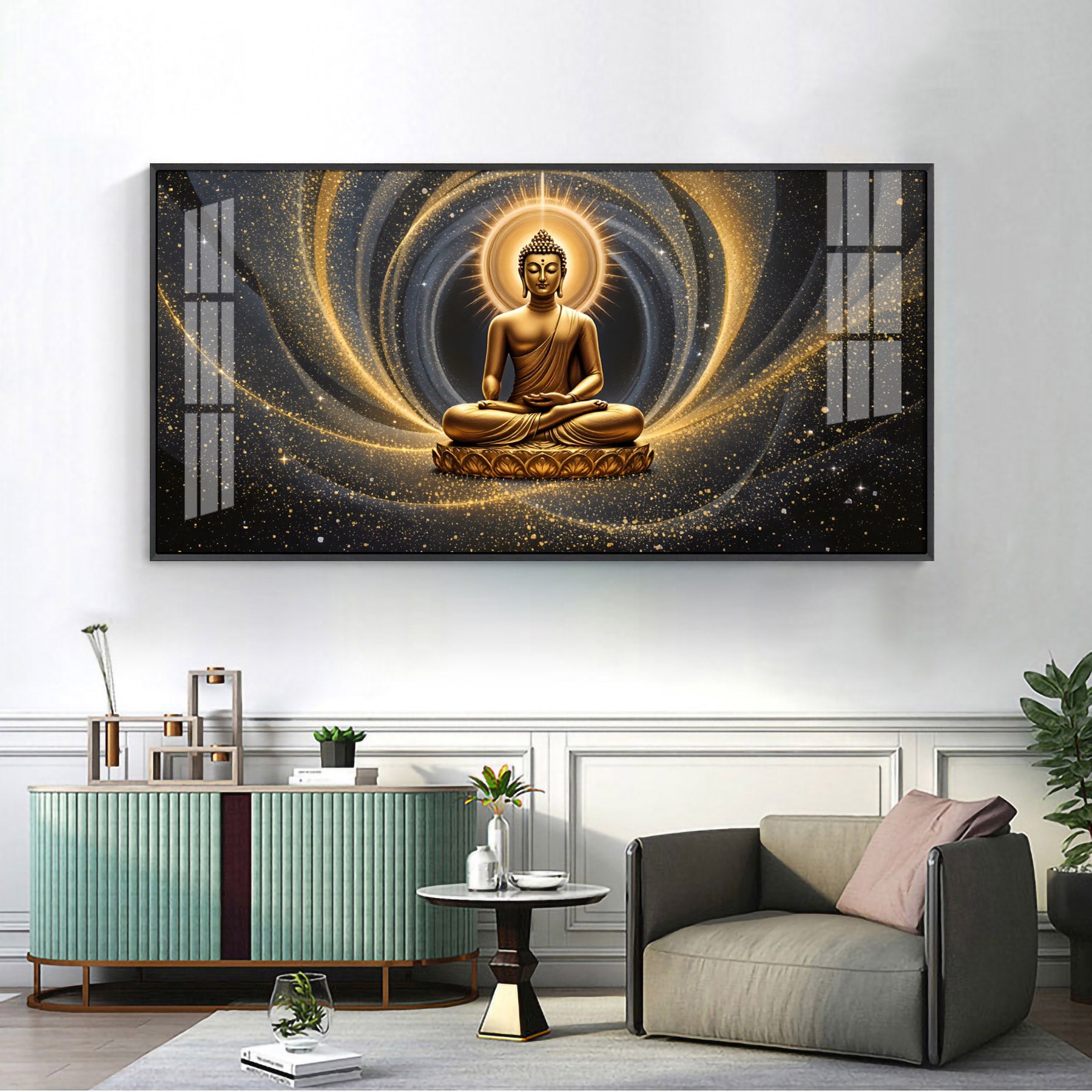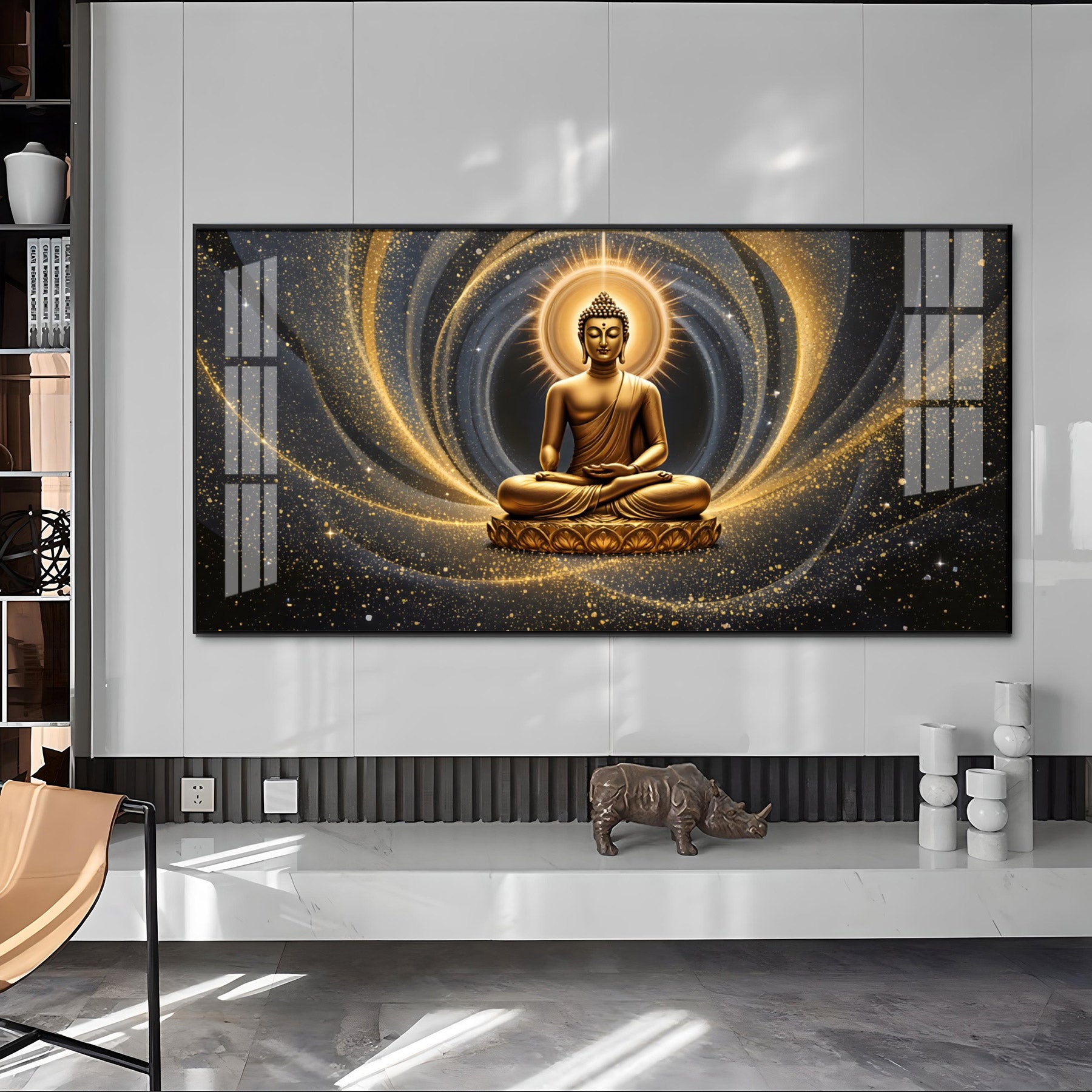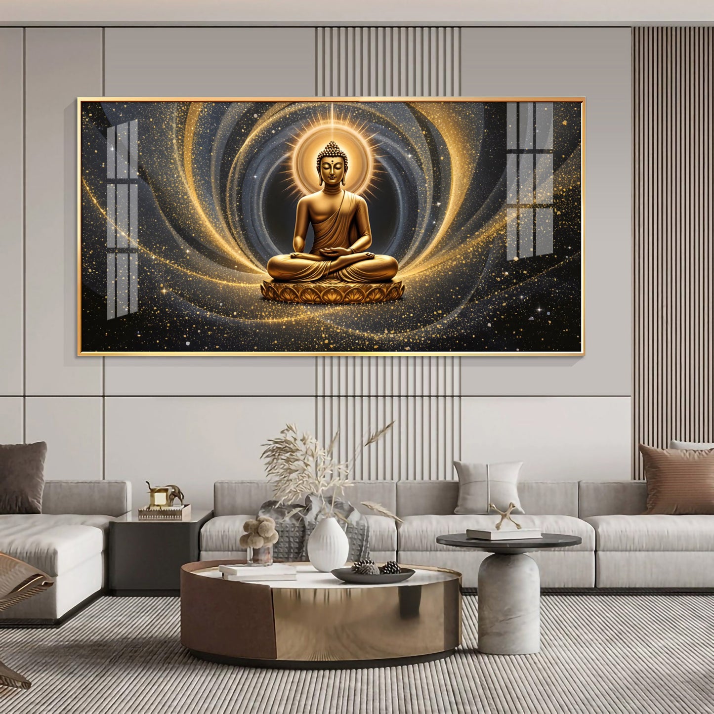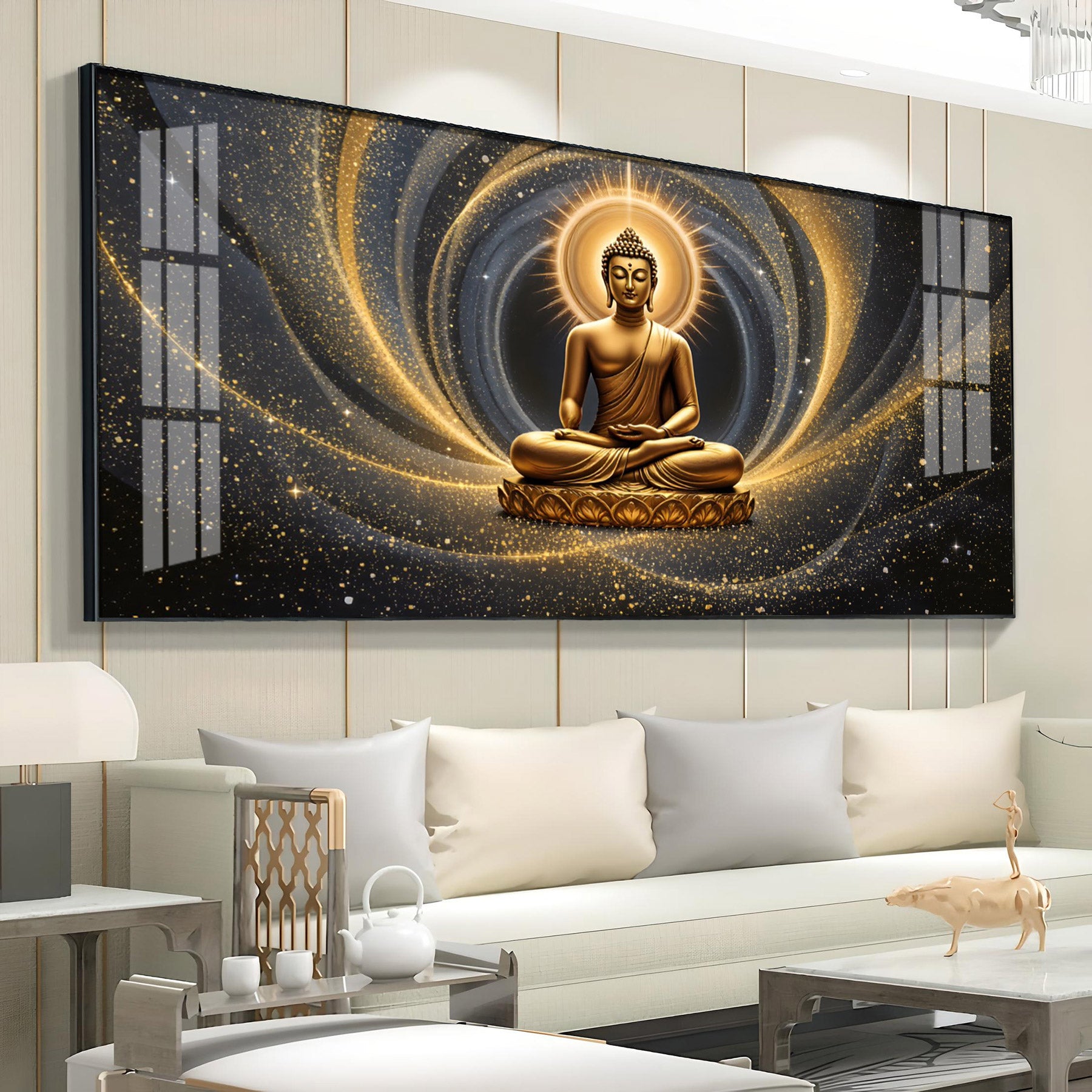 Golden Wave Buddha Reflection Premium Acrylic Horizontal Wall Art