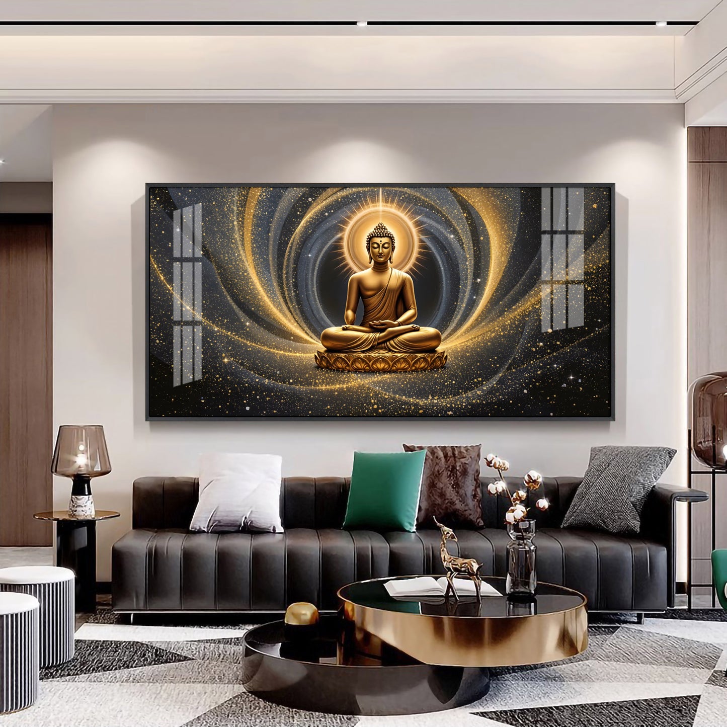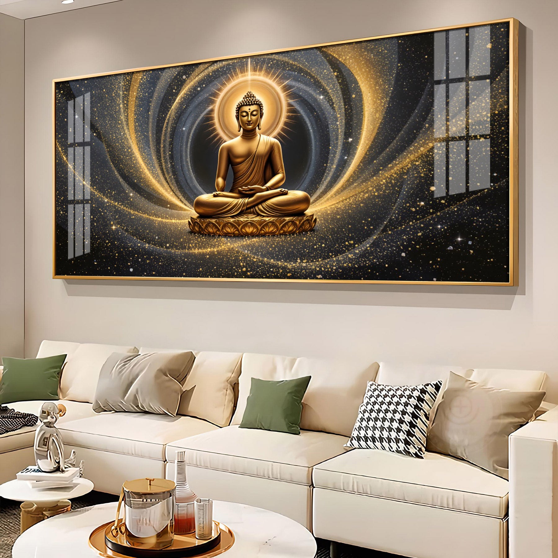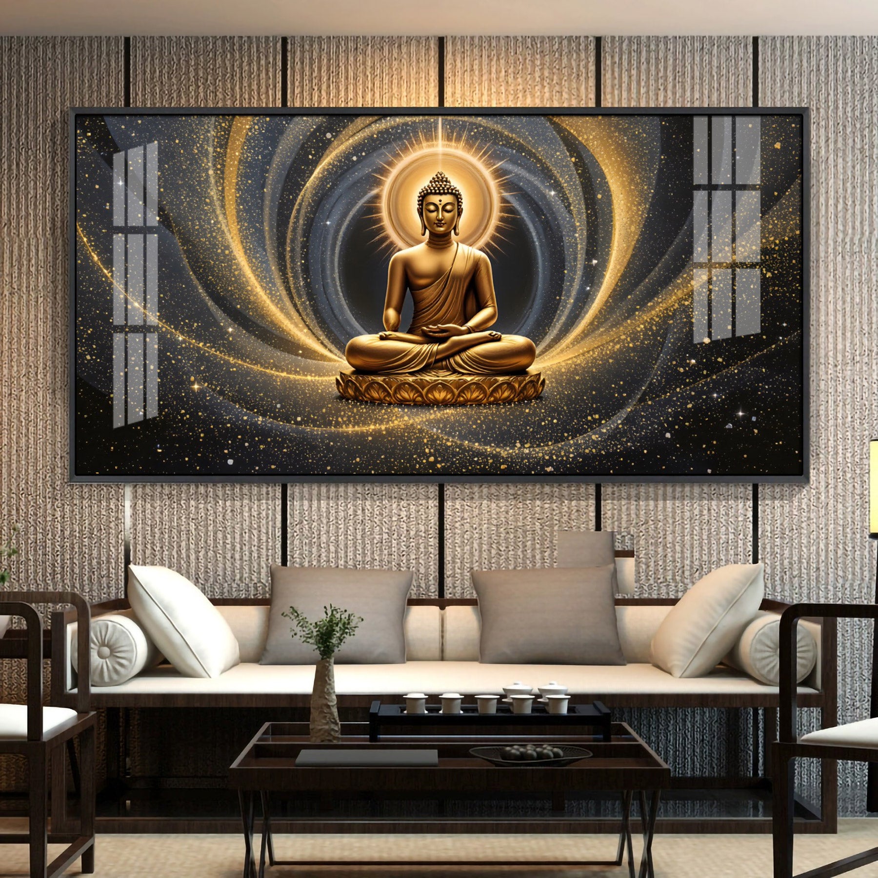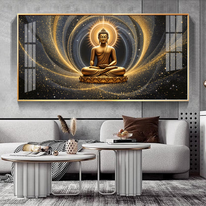 Golden Wave Buddha Reflection Premium Acrylic Horizontal Wall Art