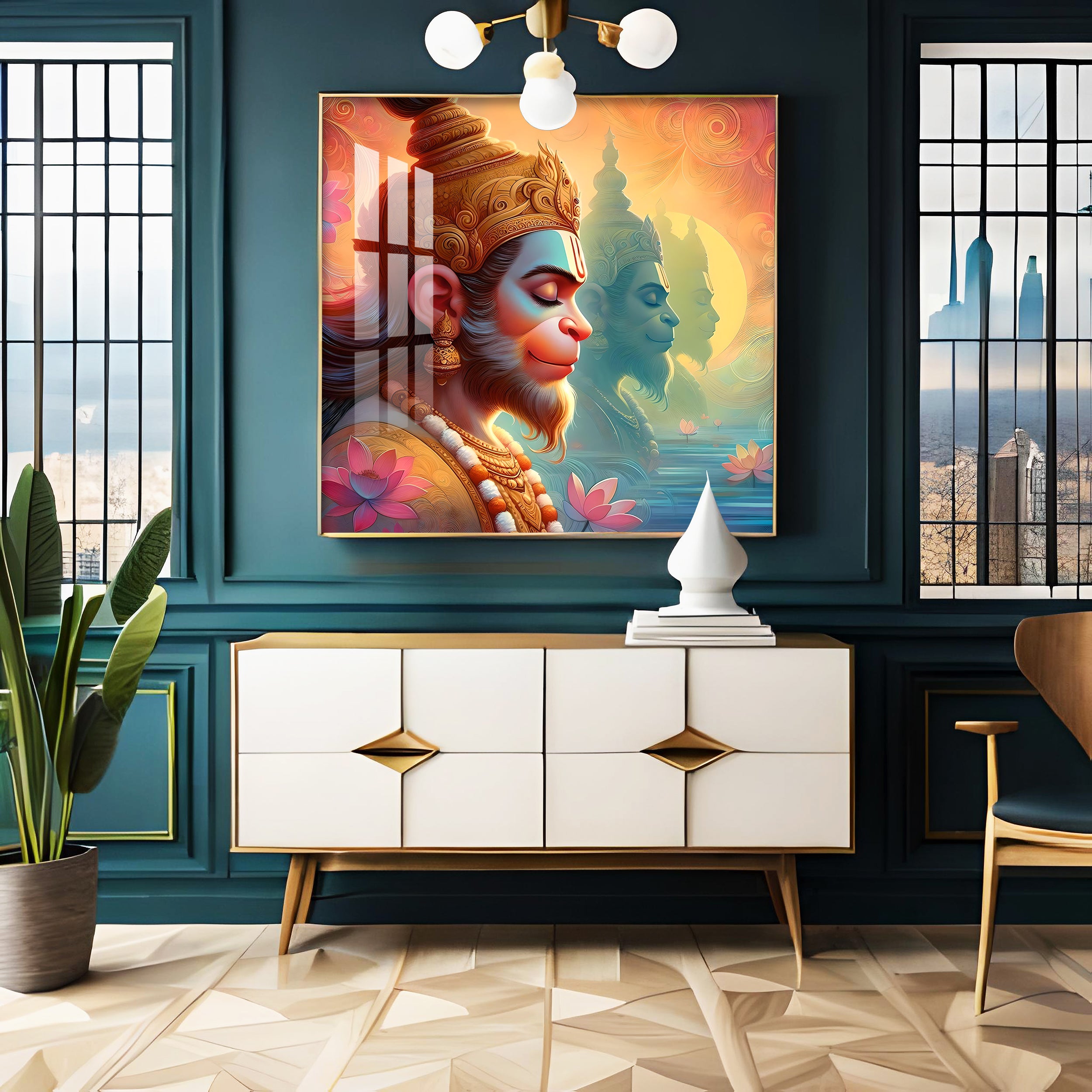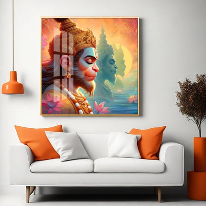 Hanuman ji Premium Acrylic Square Wall Art