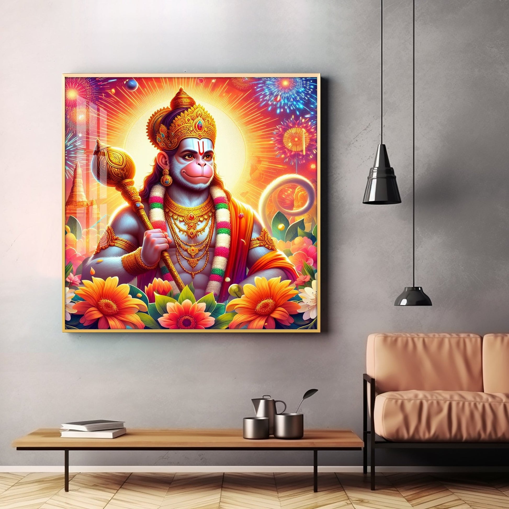 Jai Hanuman Premium Acrylic Square Wall Art