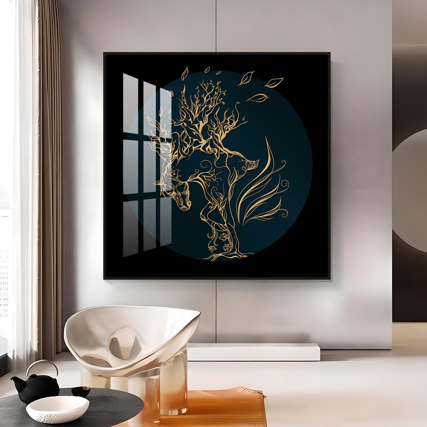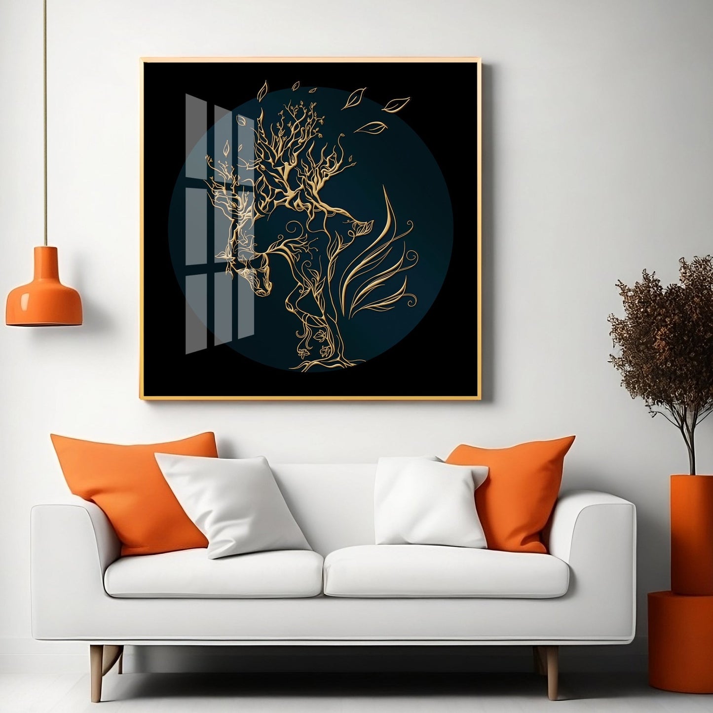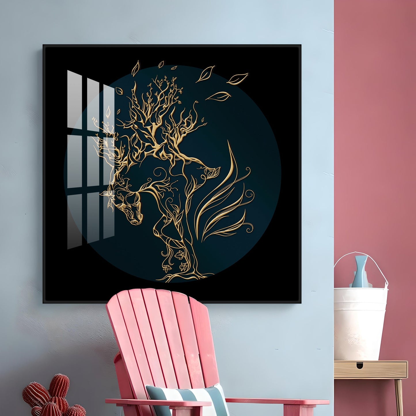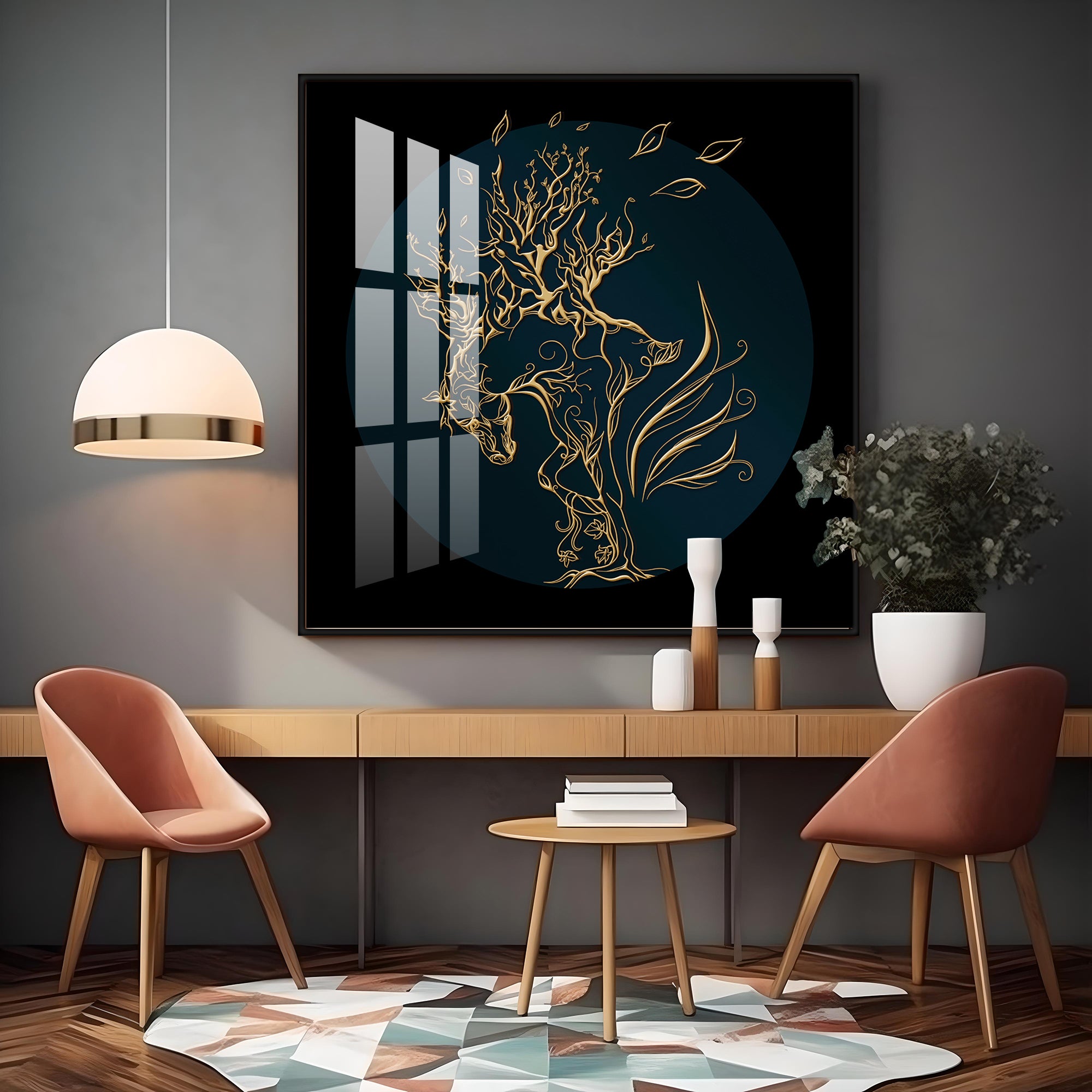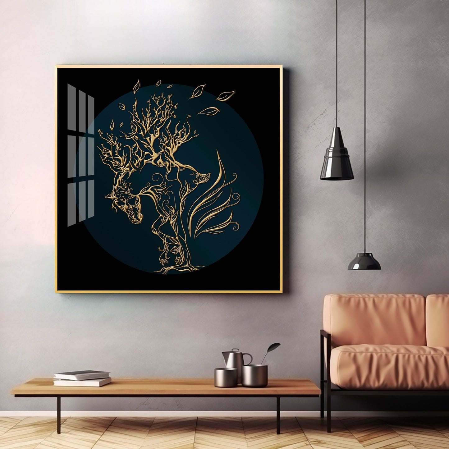 Golden Horse Lines Abstract Premium Acrylic Square Wall Art