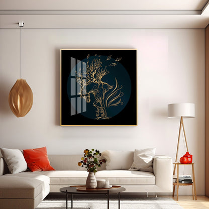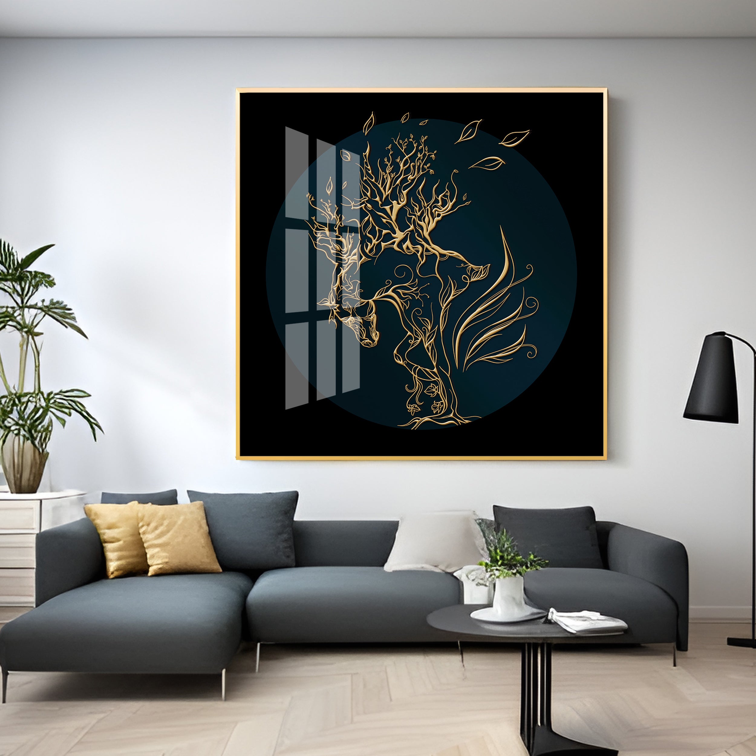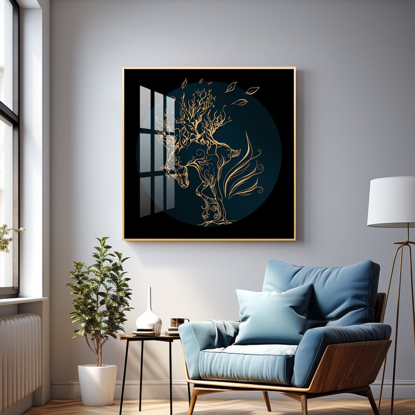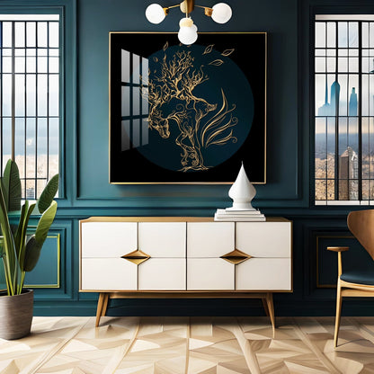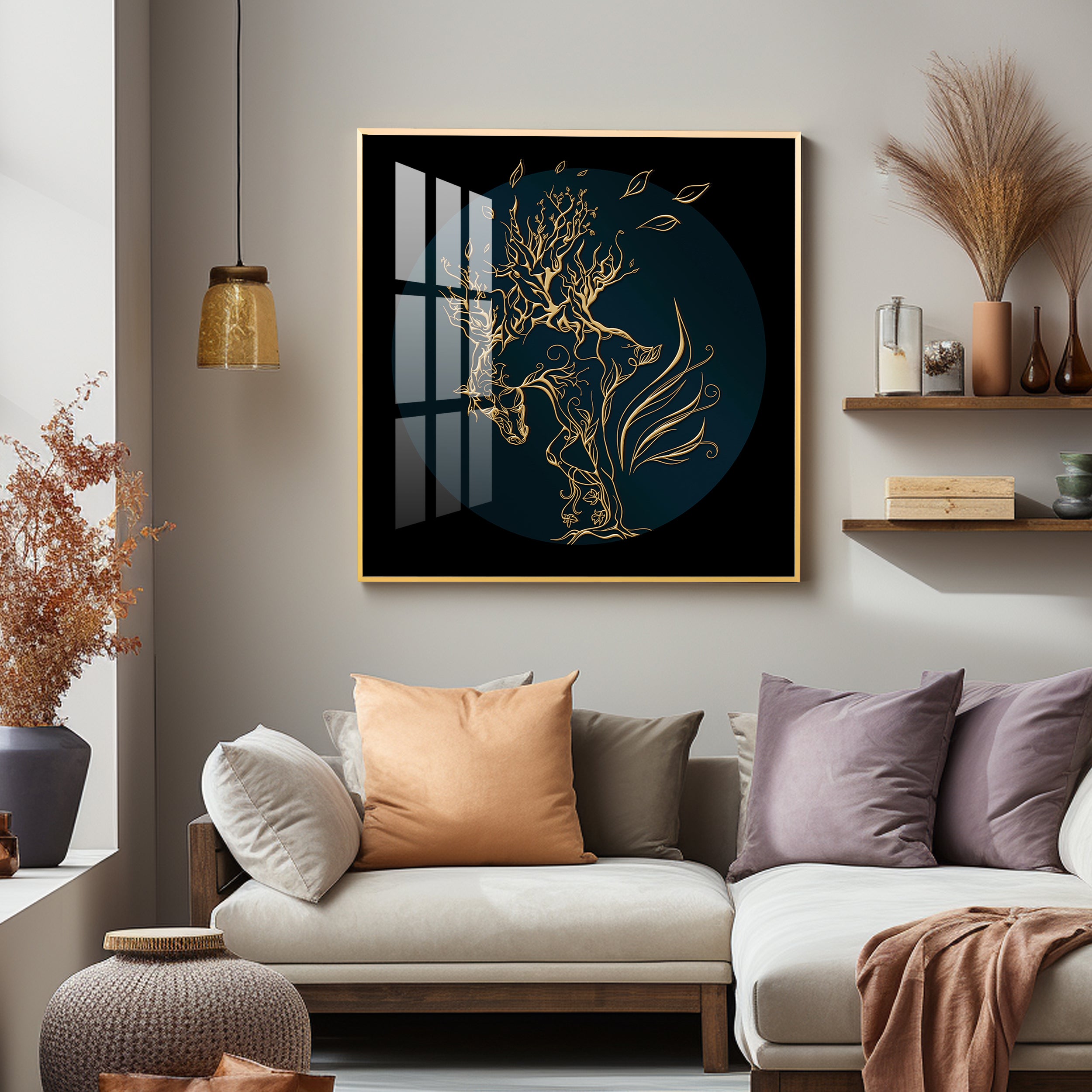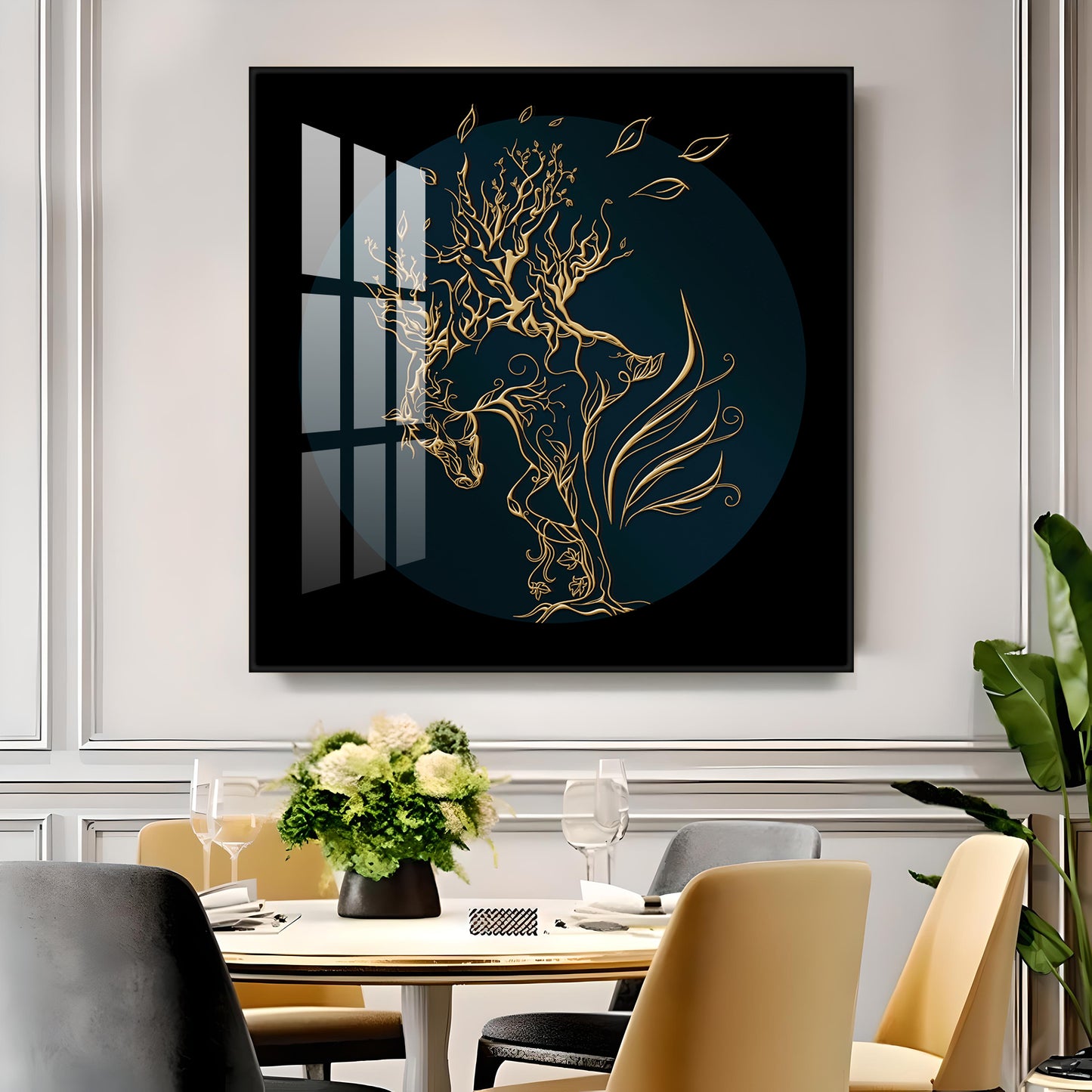 Golden Horse Lines Abstract Premium Acrylic Square Wall Art