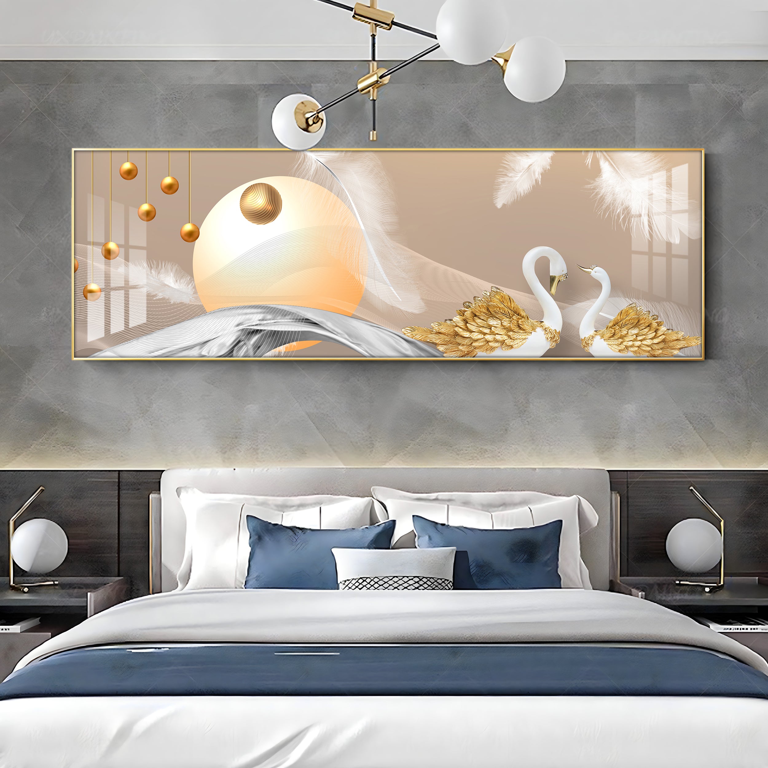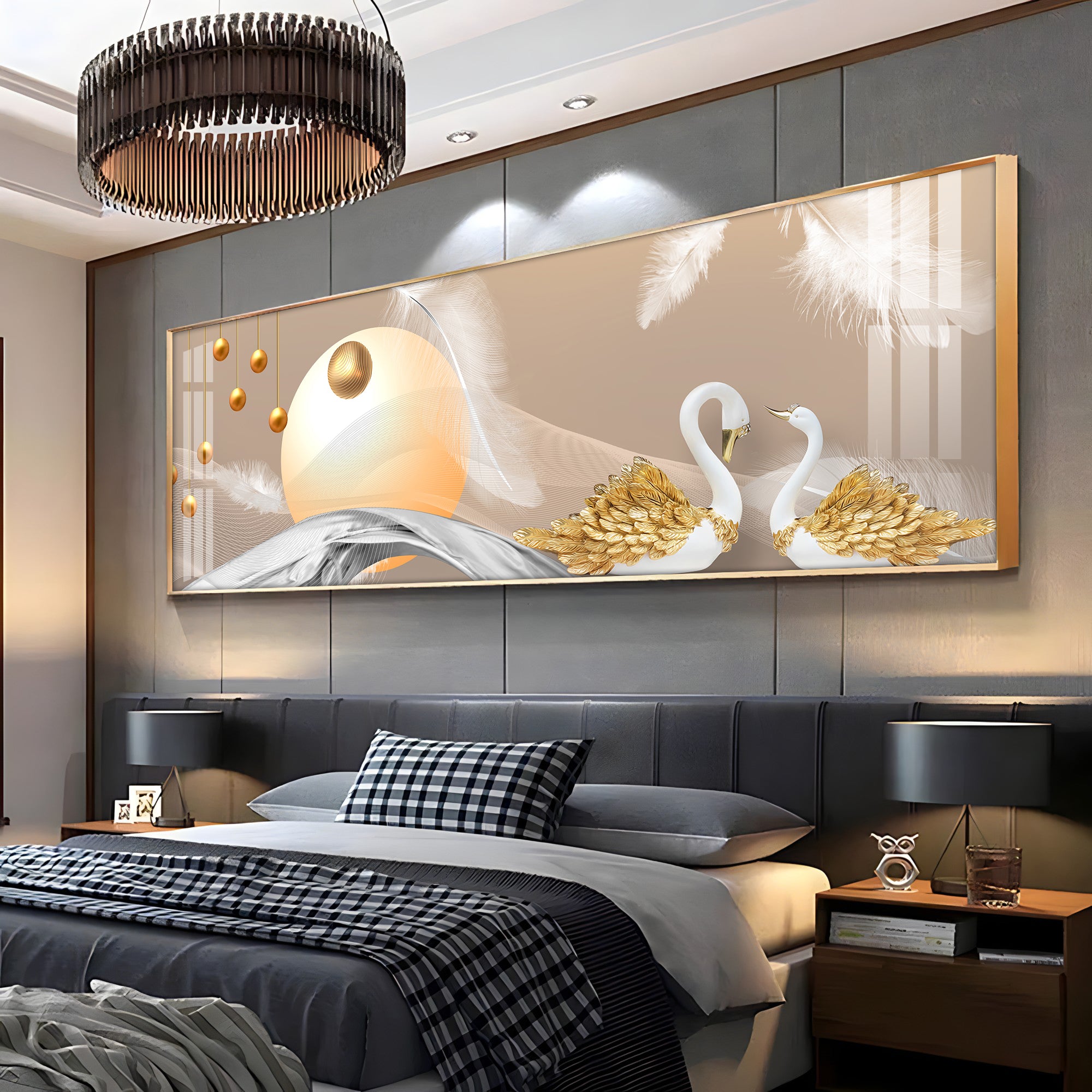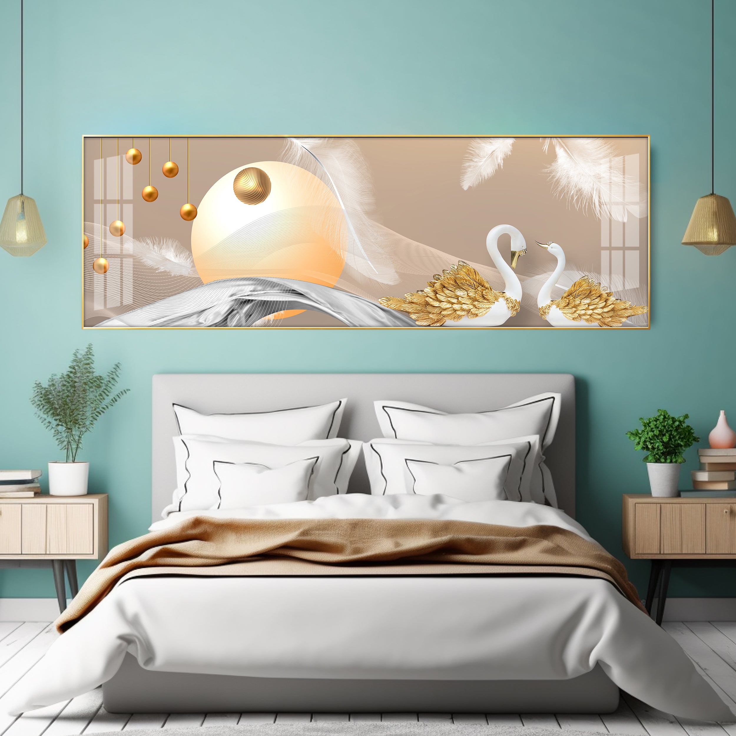 Jeweled Swan Luxury Crystal Horizontal Wall Art