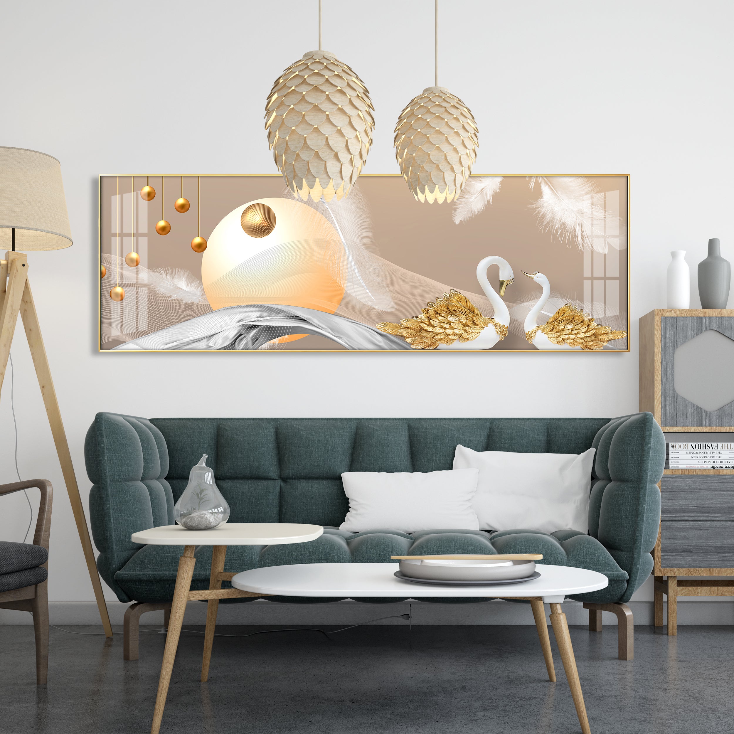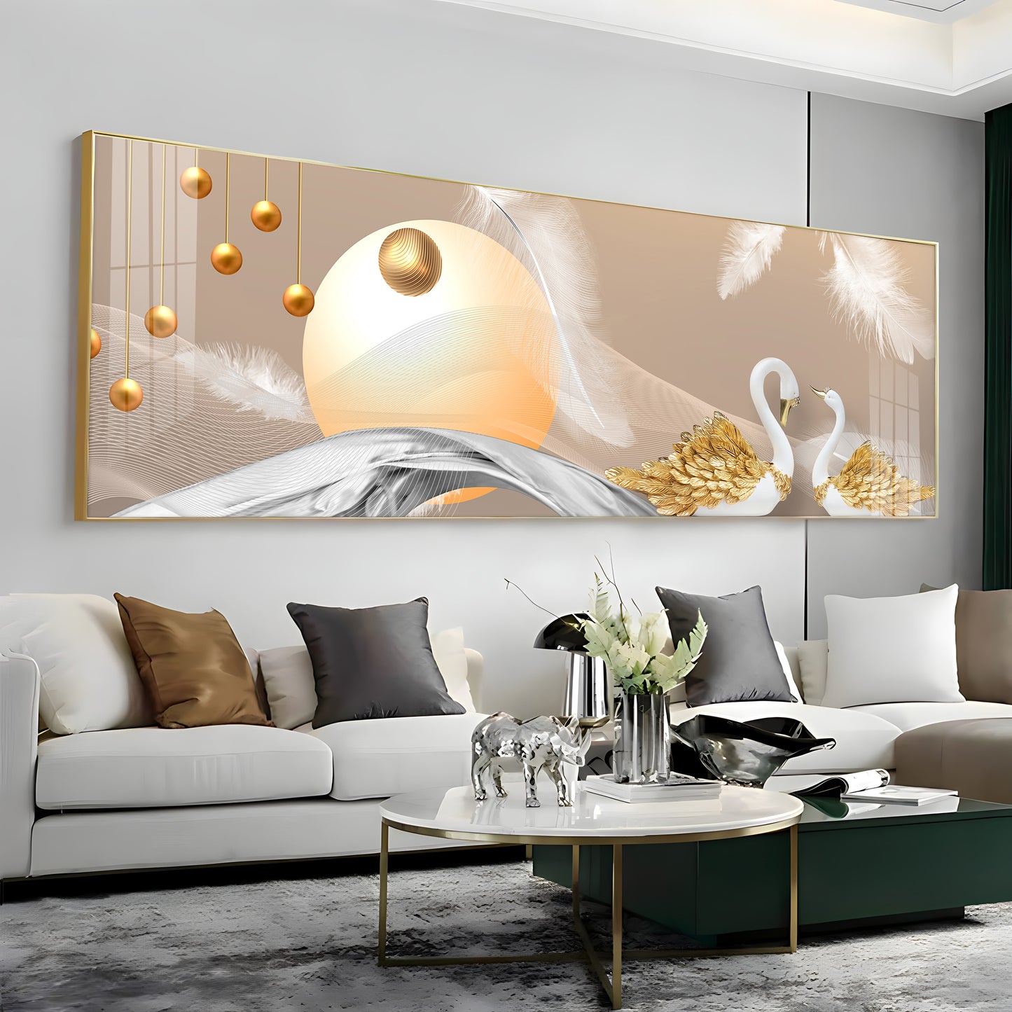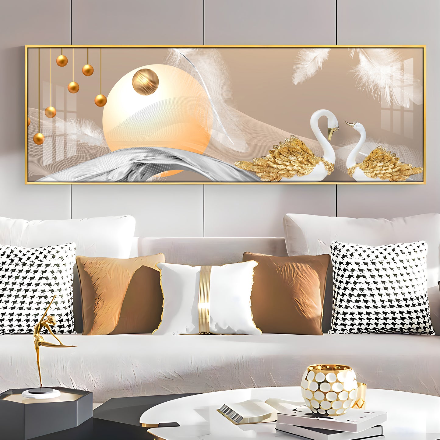 Jeweled Swan Luxury Crystal Horizontal Wall Art