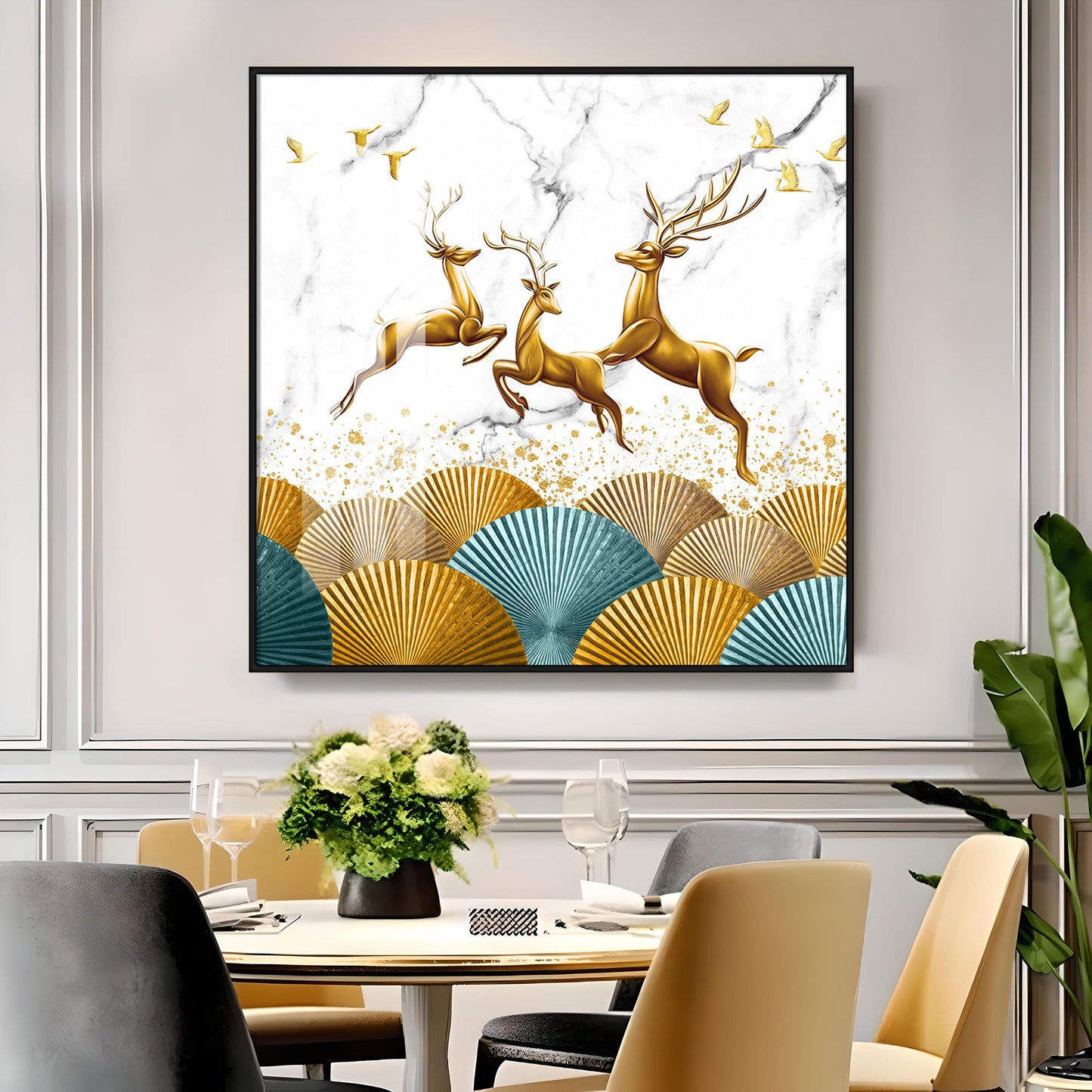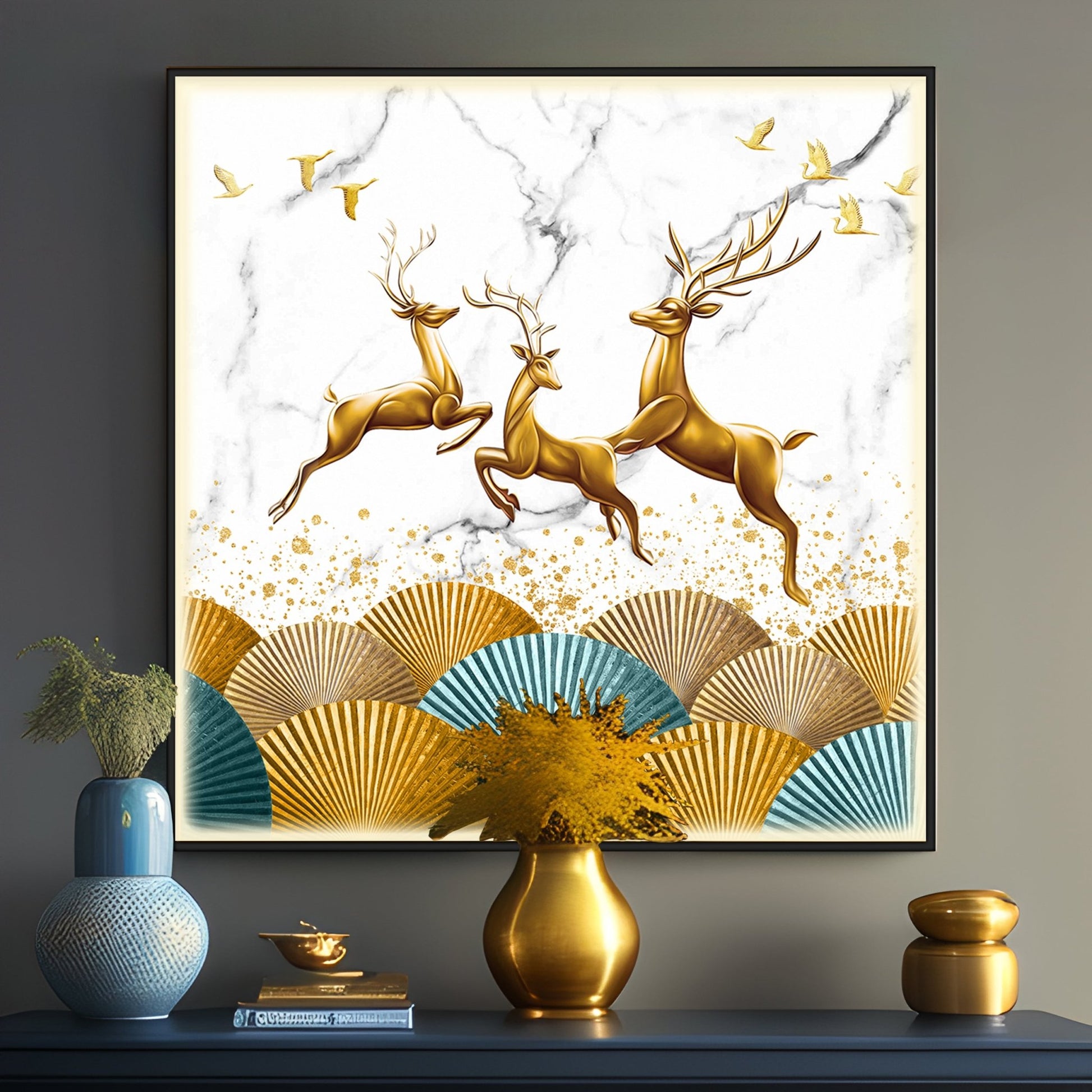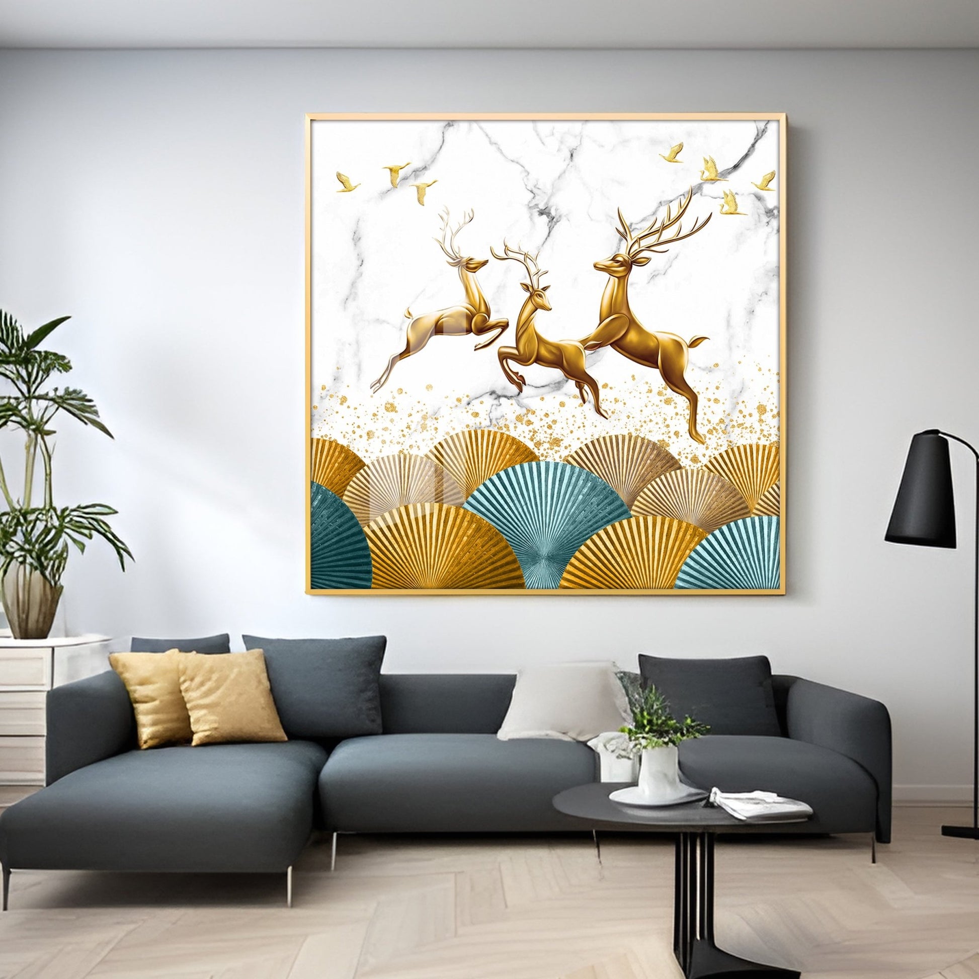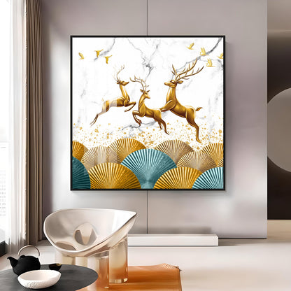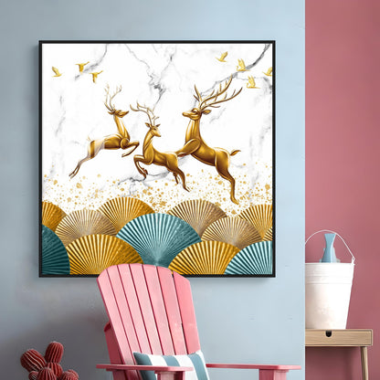 Jolly Golden Deers Luxury Crystal Square Wall Art