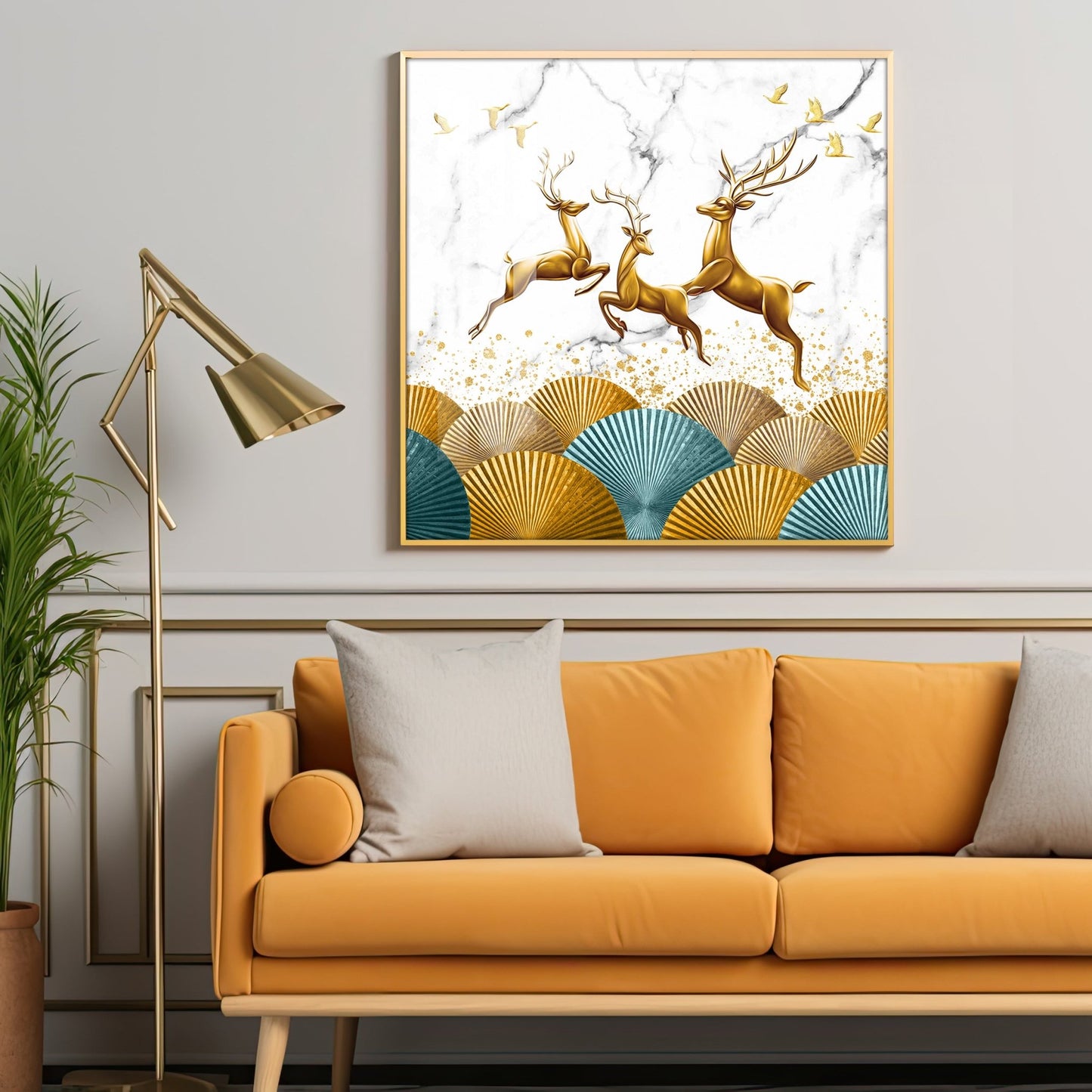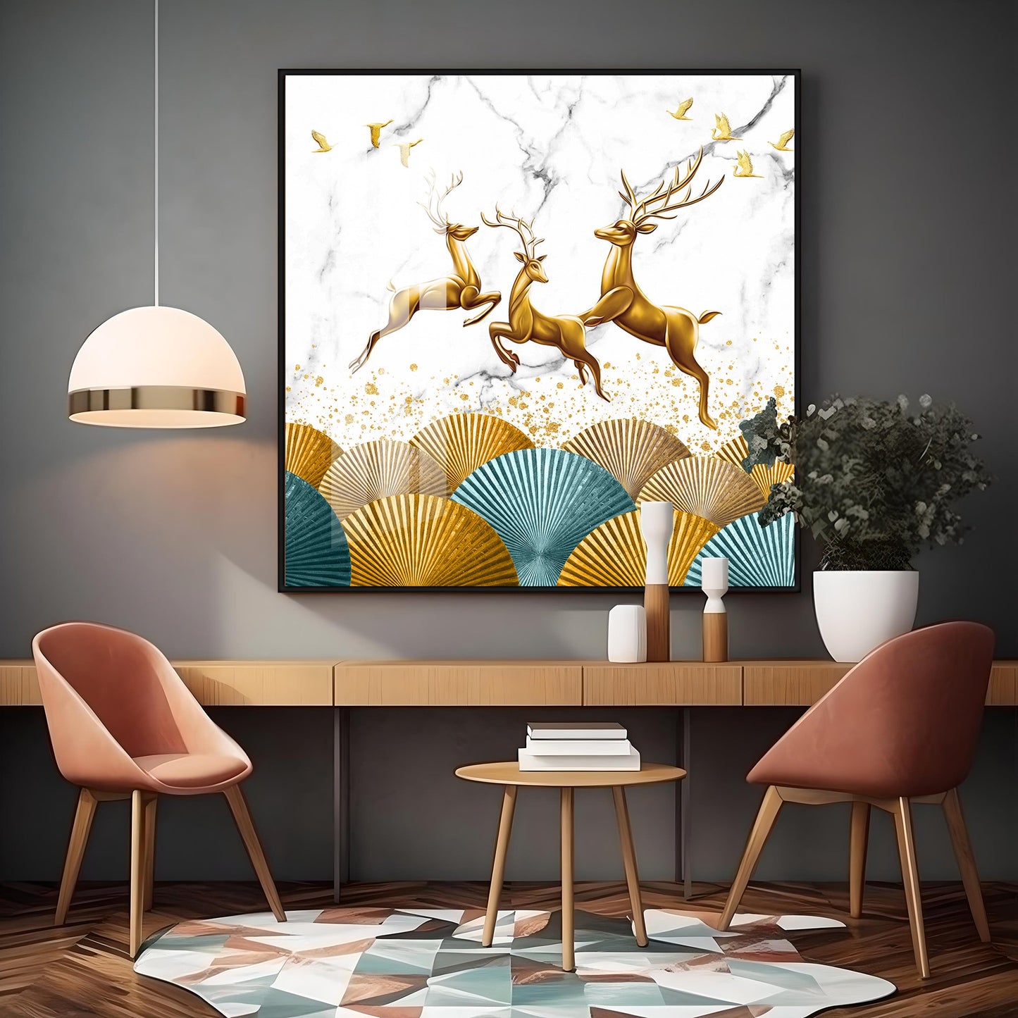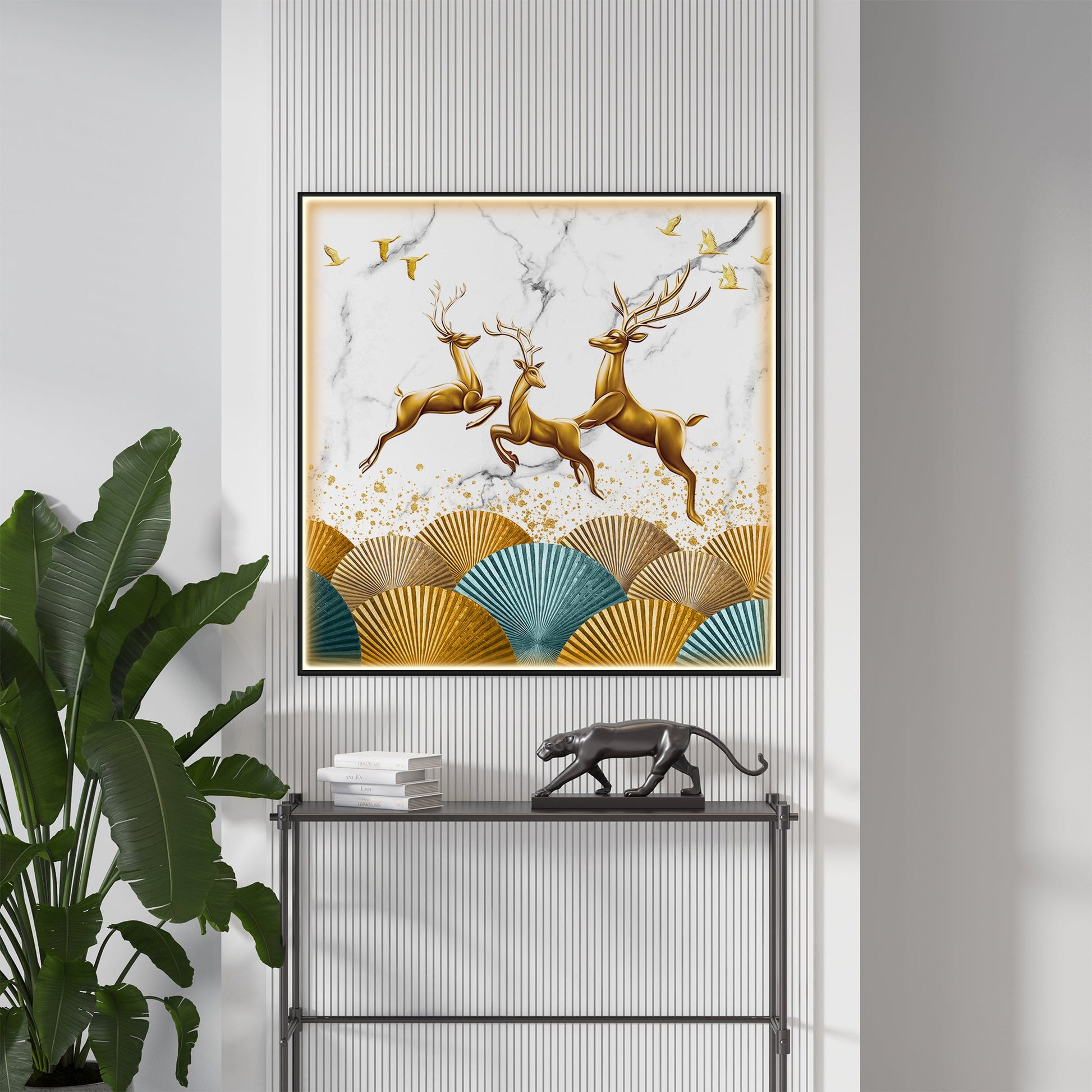 Jolly Golden Deers Luxury Crystal Square Wall Art