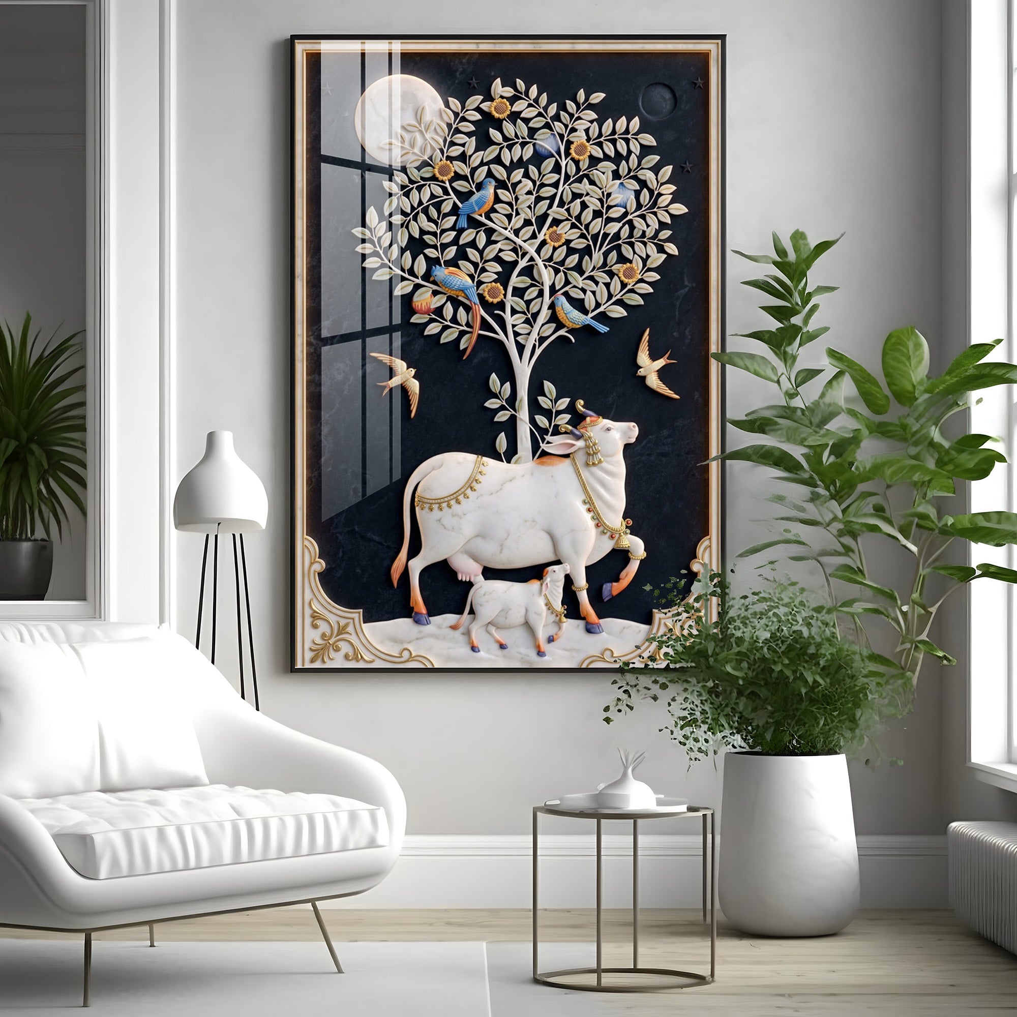 Kamdhenu Cow Premium Acrylic Vertical Wall Art