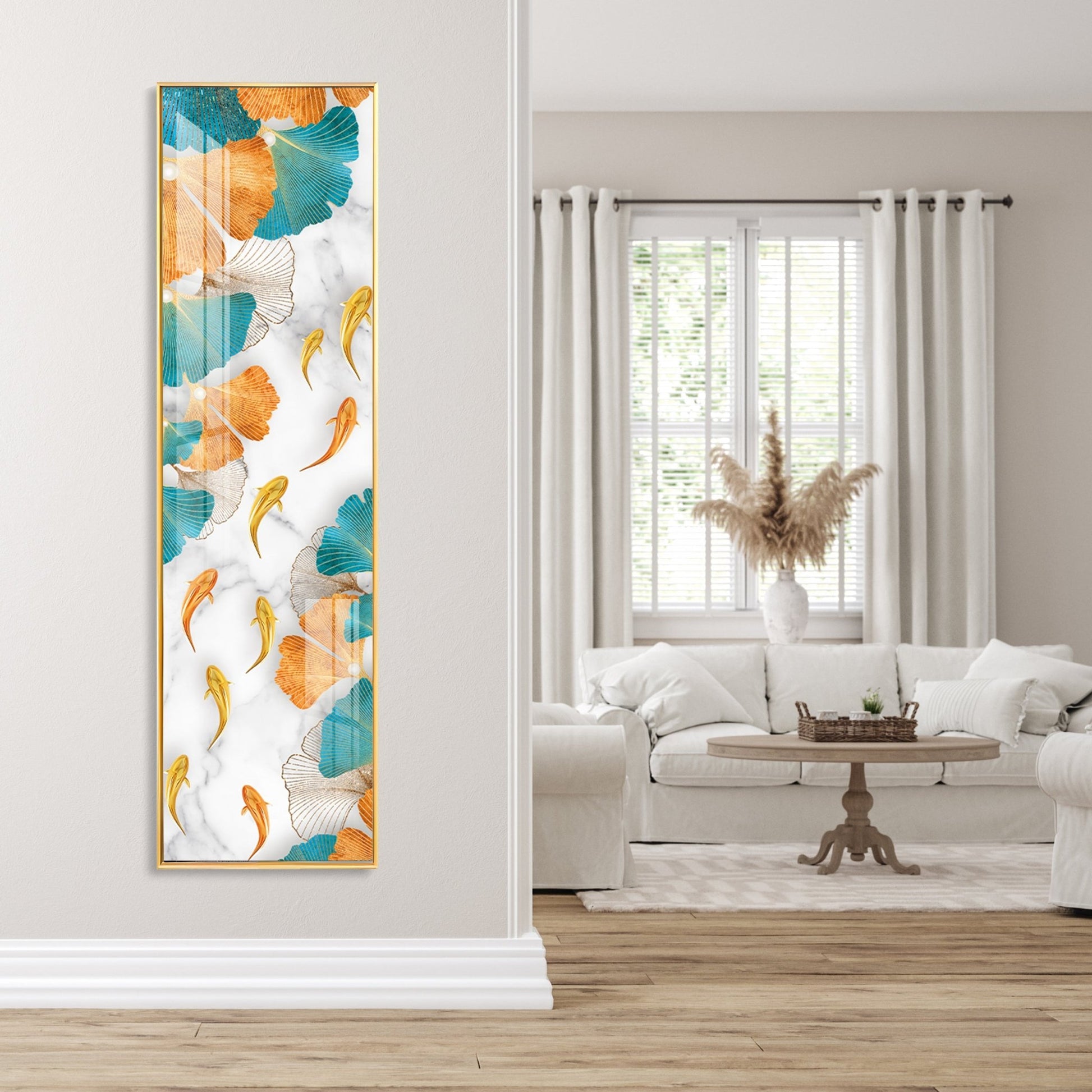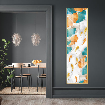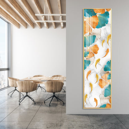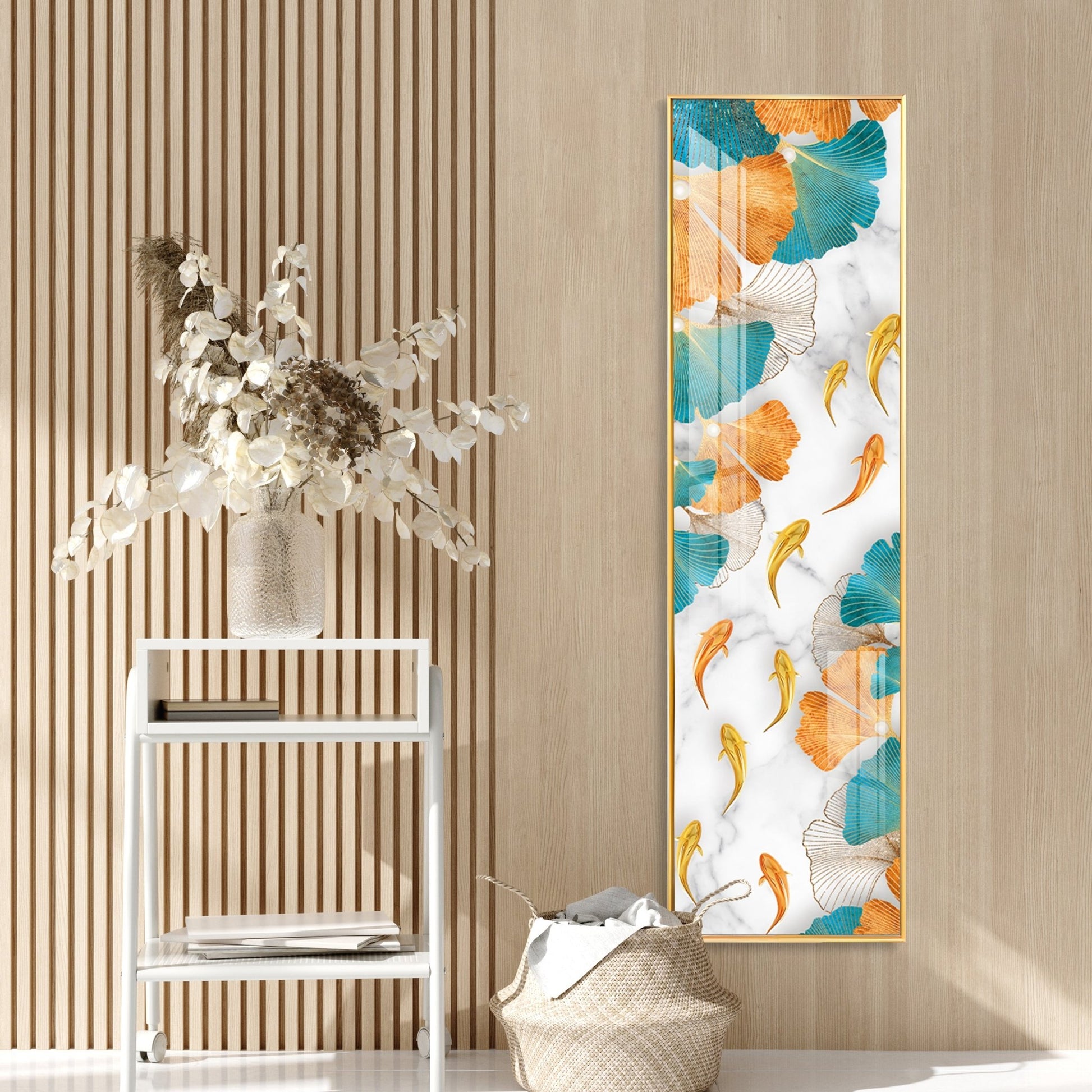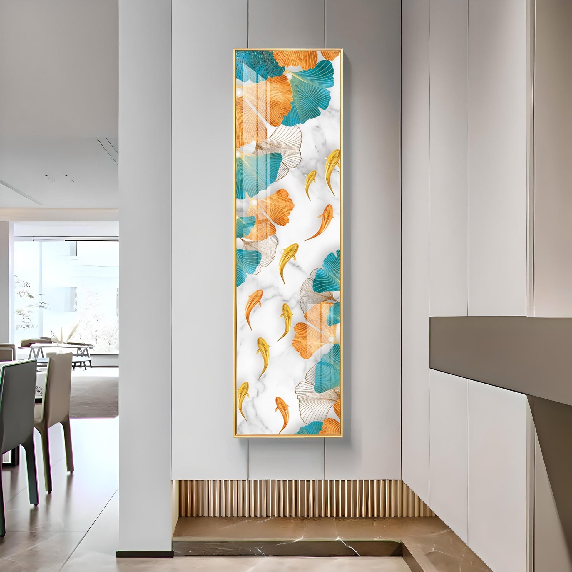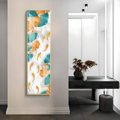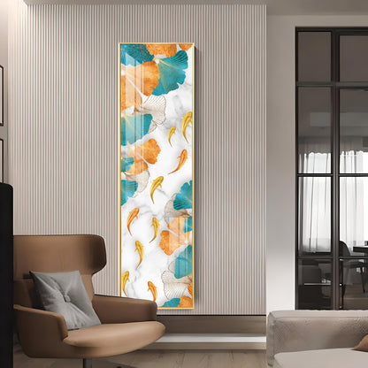 Koi Fish & Ginkgo Biloba Luxury Crystal Vertical Wall Art