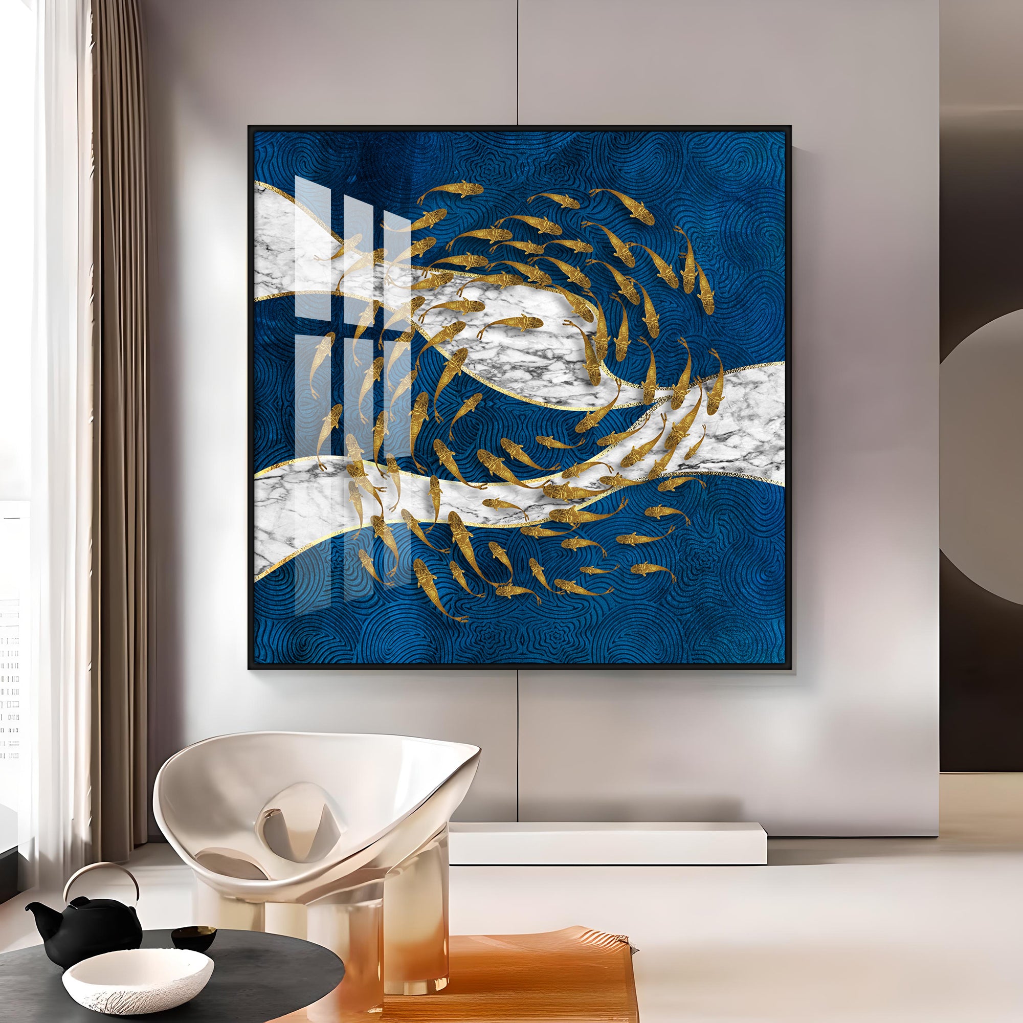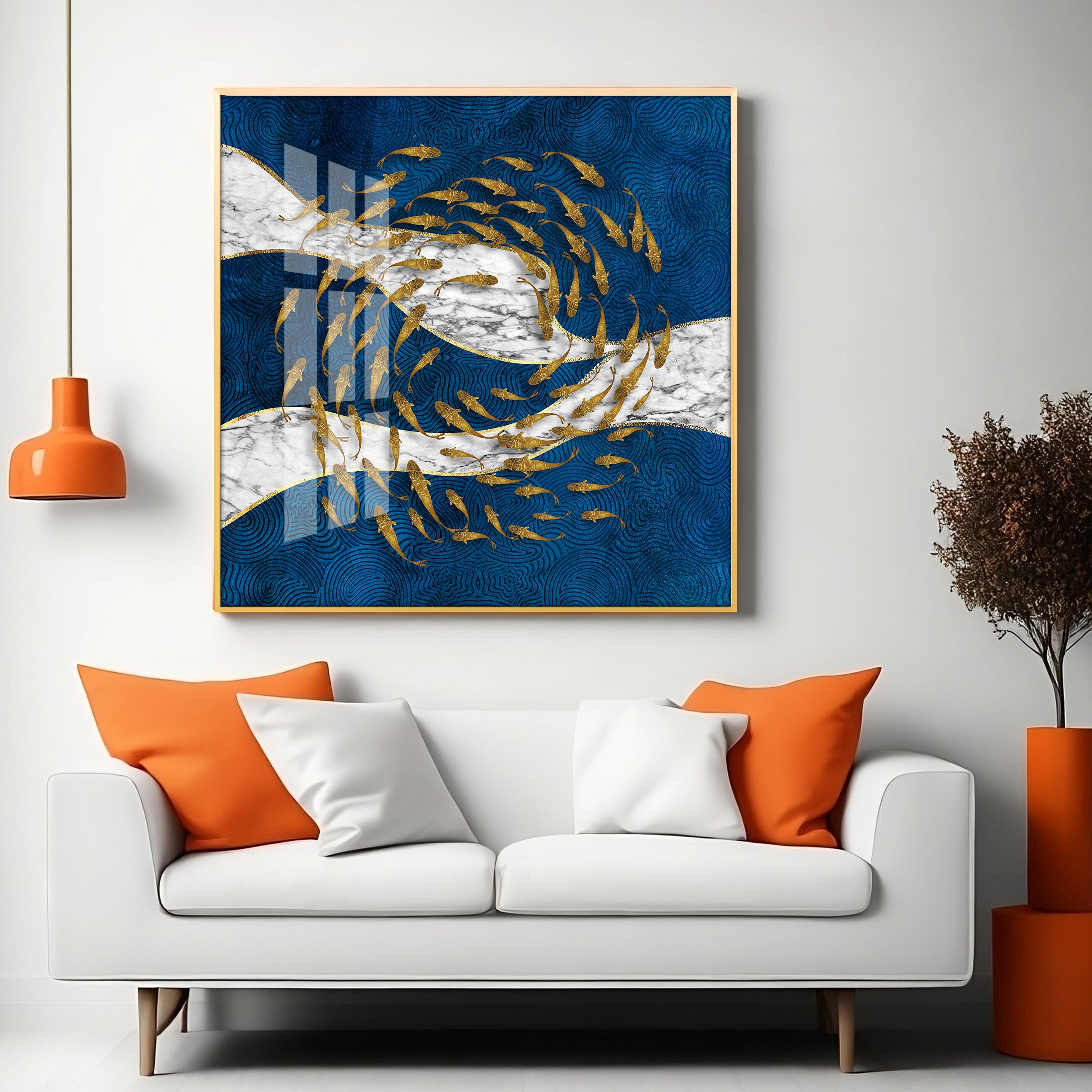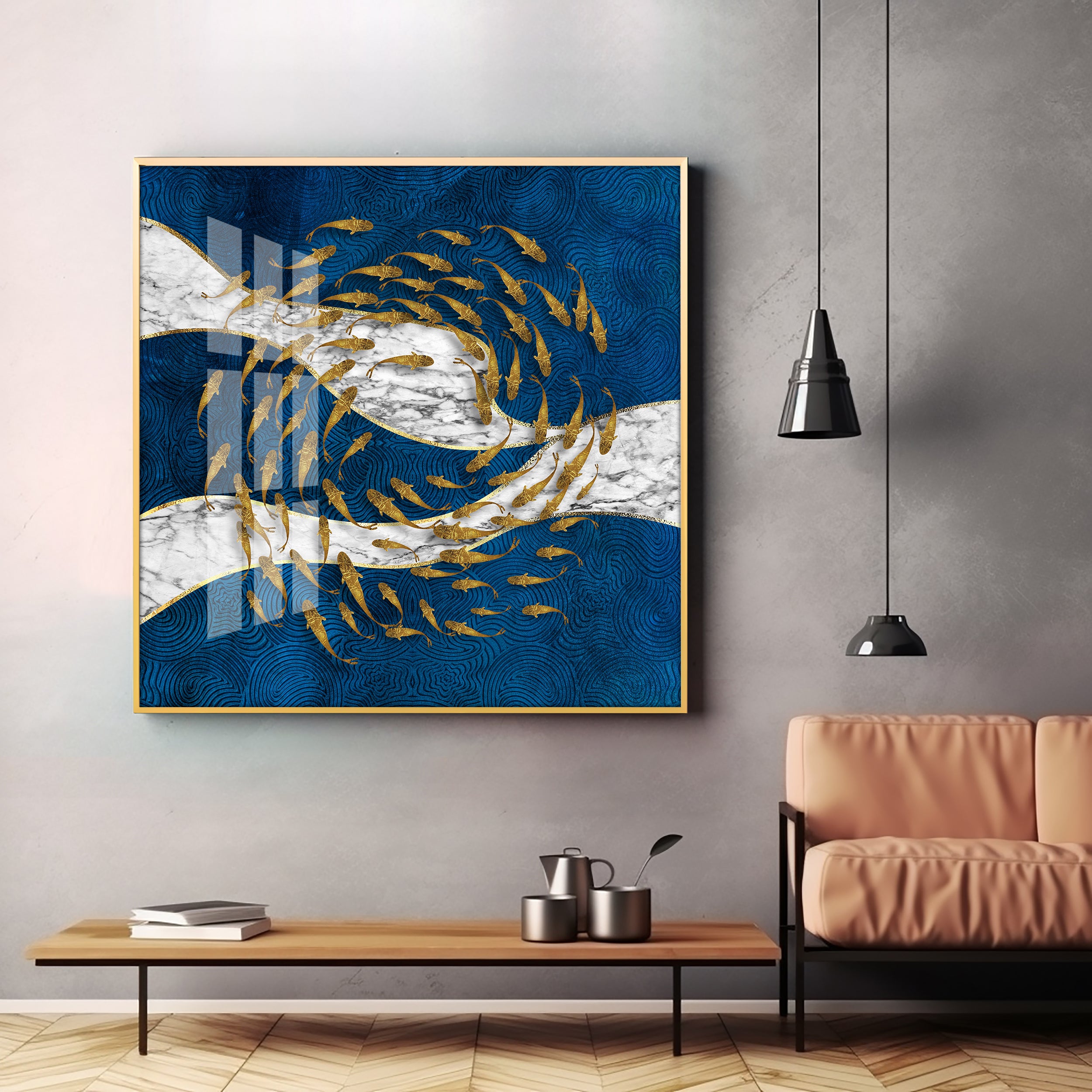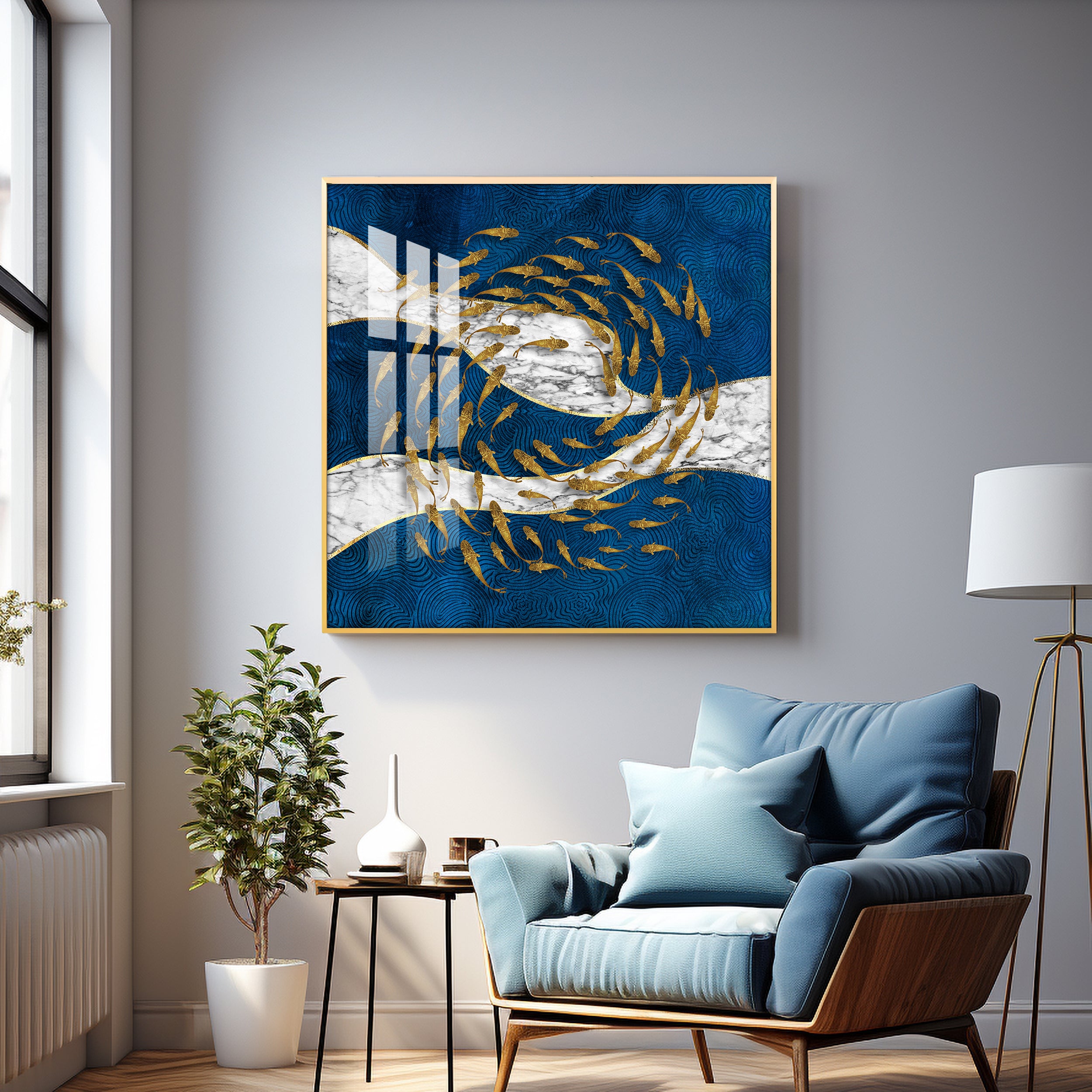Koi Fish In Circular Motion Premium Acrylic Square Wall Art