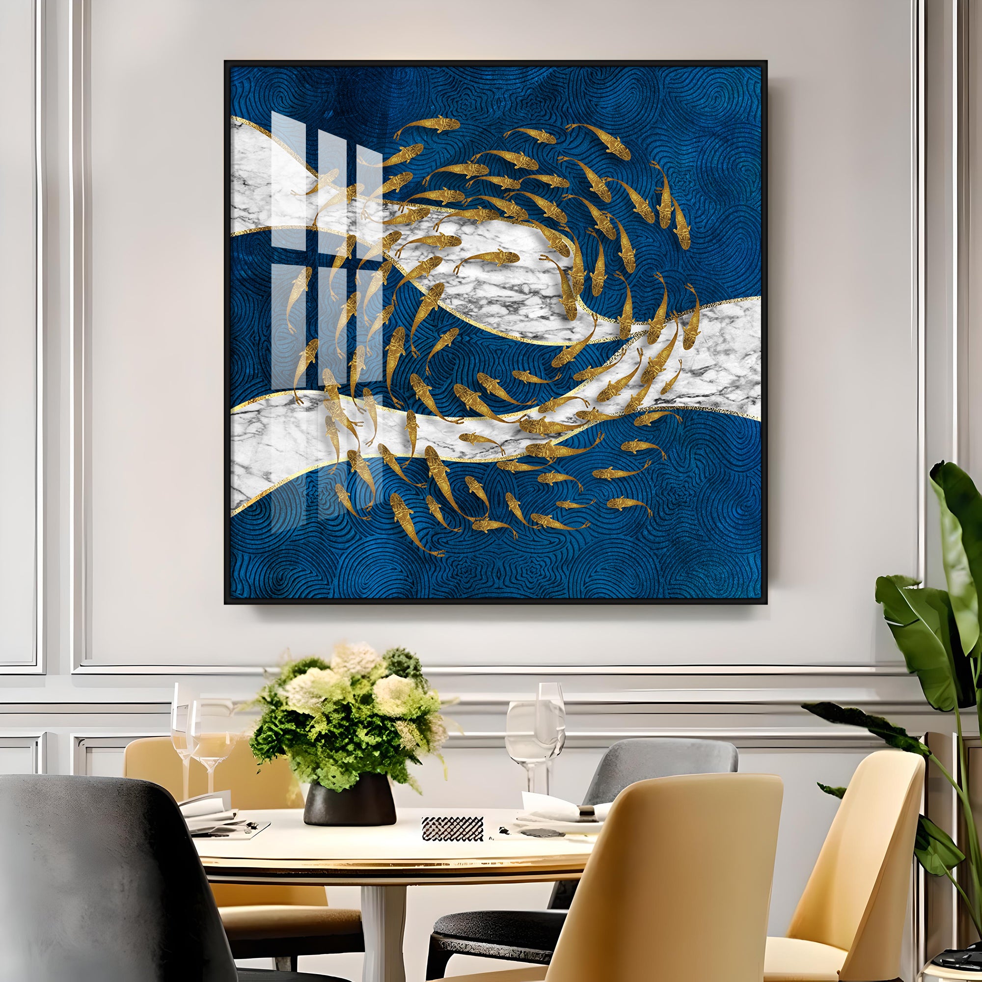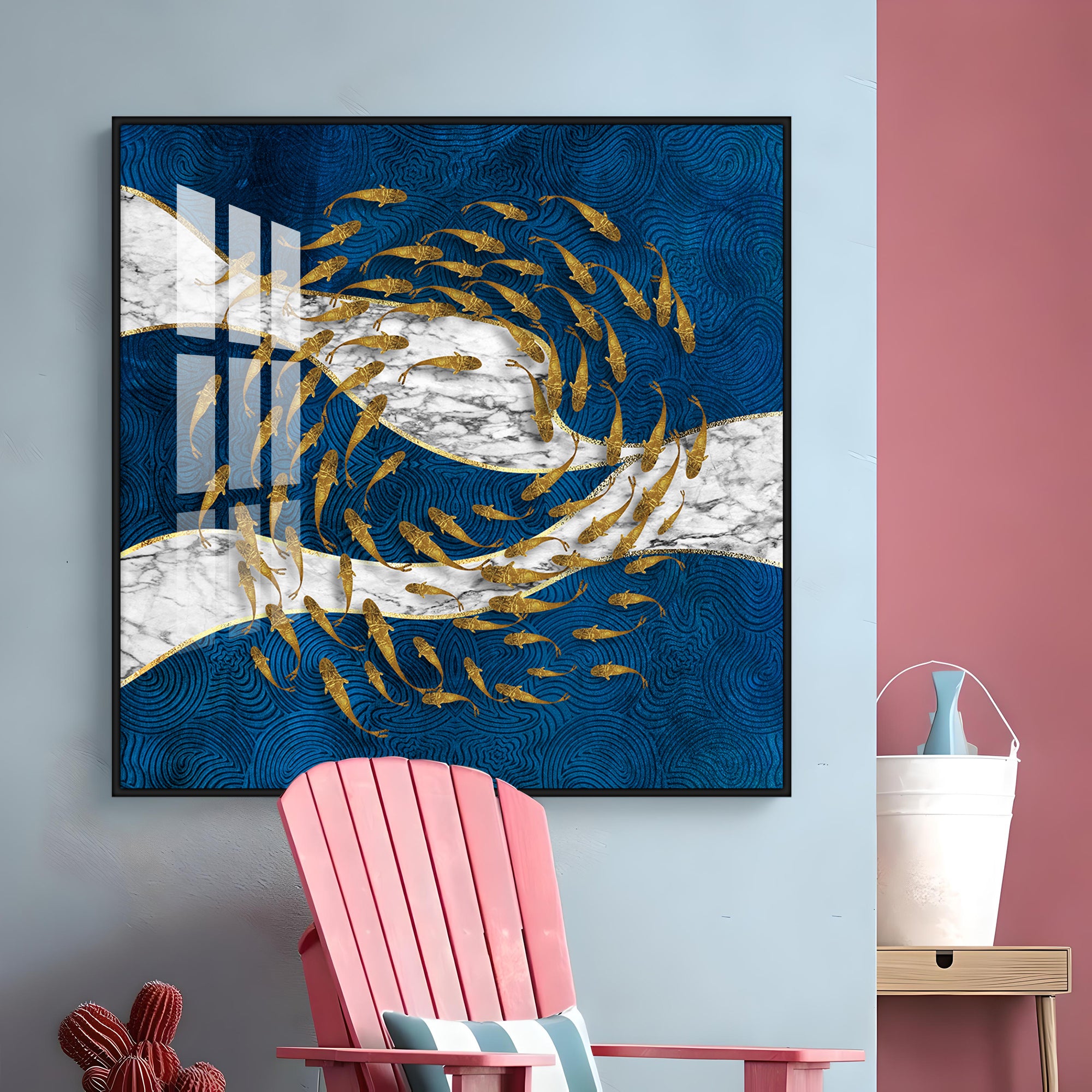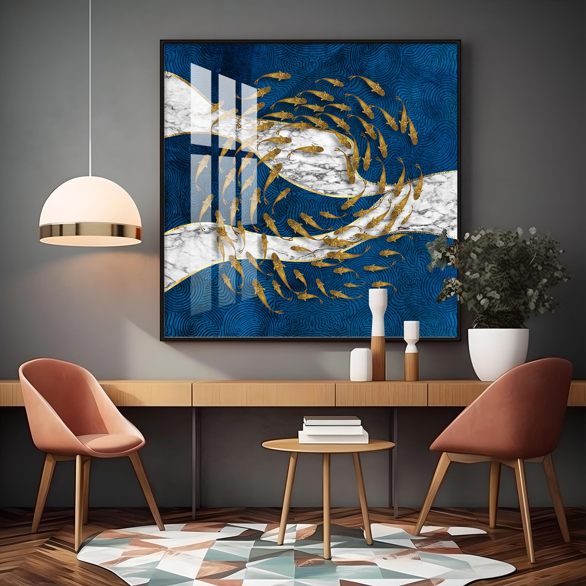 Koi Fish In Circular Motion Premium Acrylic Square Wall Art